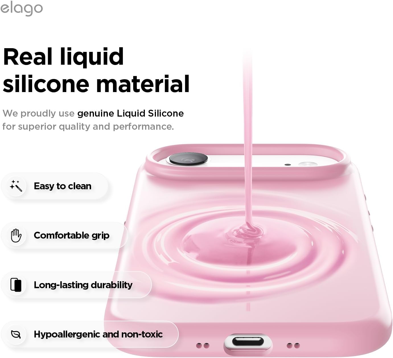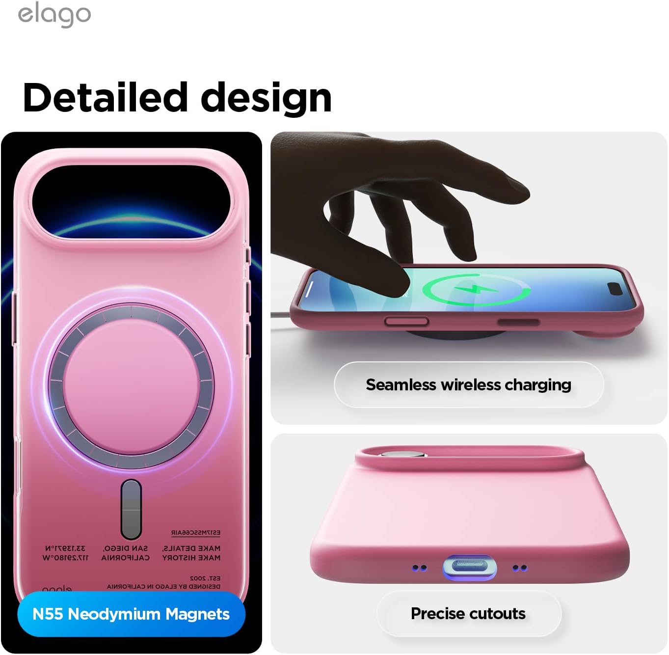 Силиконов калъф elago Magnet за iPhone Air - съвместим с MagSafe, първокласен течен силикон, удароустойчив, тънък защитен калъф (ярко розов)