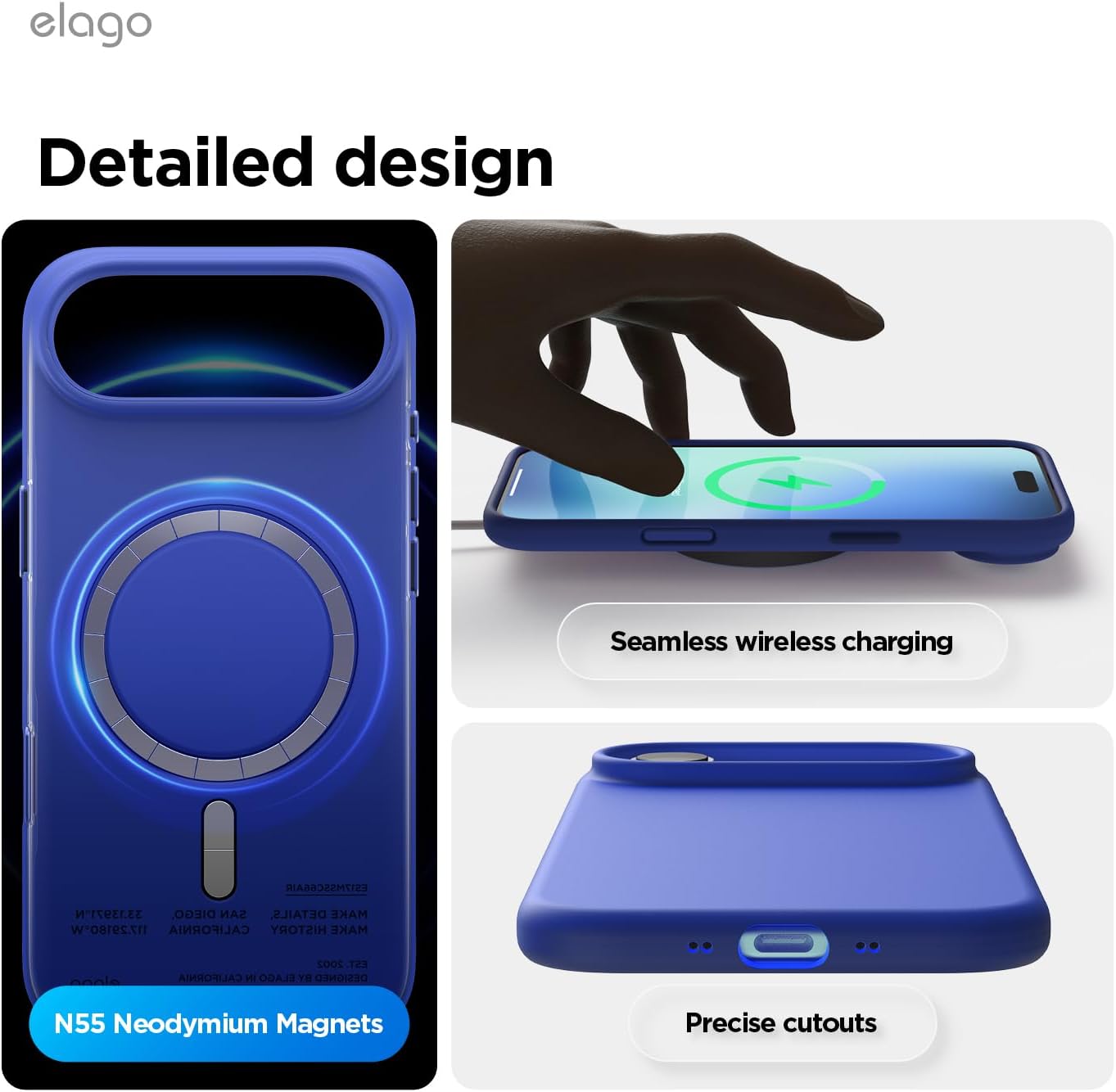 Силиконов калъф elago Magnet за iPhone Air - съвместим с MagSafe, първокласен течен силикон, удароустойчив, тънък защитен калъф (кобалтово синьо)