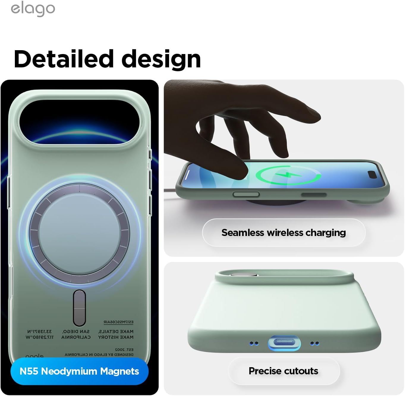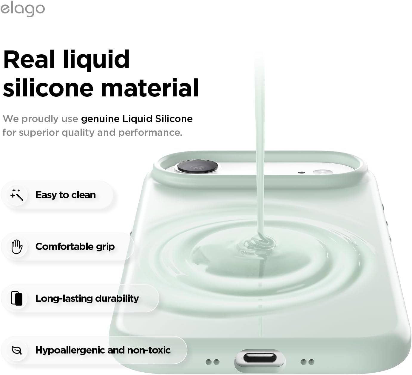 Силиконов калъф elago Magnet за iPhone Air - съвместим с MagSafe, първокласен течен силикон, удароустойчив, тънък защитен калъф (ментово зелен)