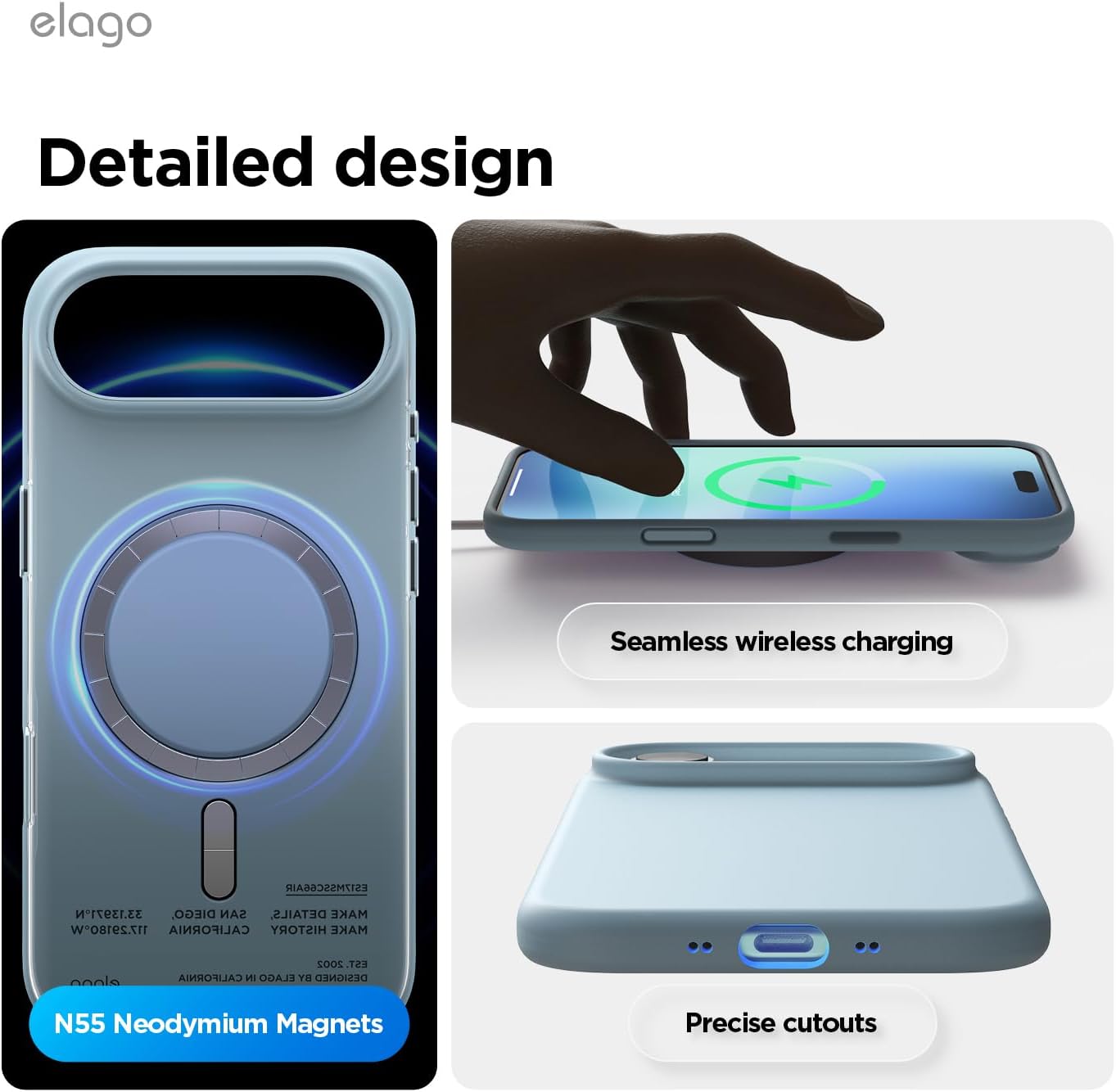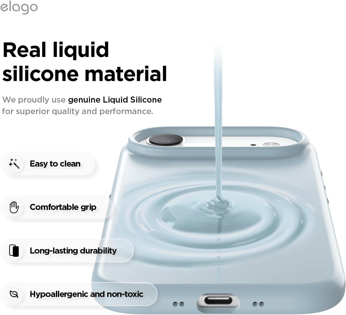 Силиконов калъф elago Magnet за iPhone Air - съвместим с MagSafe, първокласен течен силикон, удароустойчив, тънък защитен калъф (небесно син)