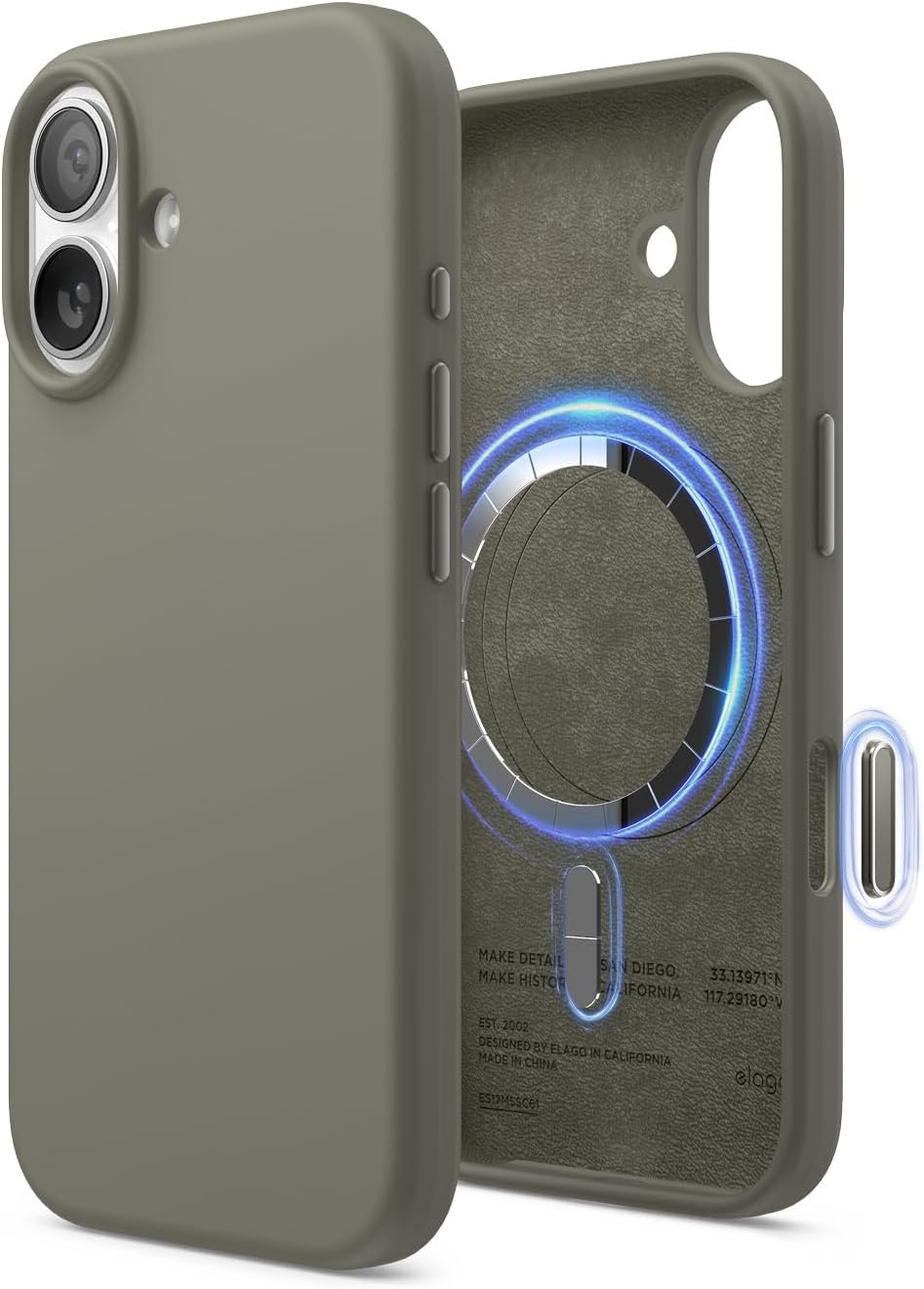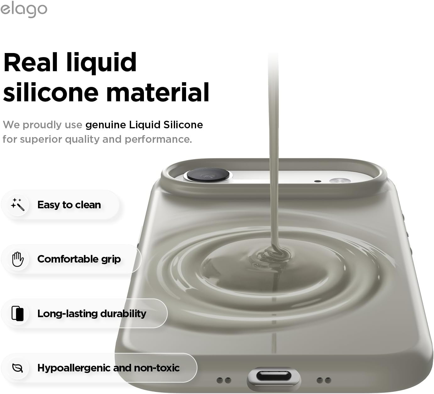 Силиконов калъф elago Magnet за iPhone Air - съвместим с MagSafe, първокласен течен силикон, удароустойчив, тънък защитен калъф (средно сив)