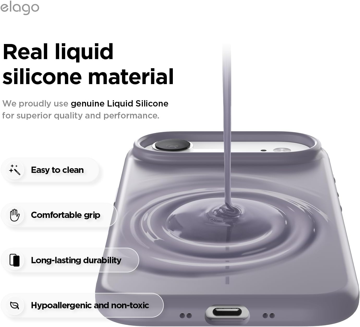 Силиконов калъф elago Magnet за iPhone Air - съвместим с MagSafe, първокласен течен силикон, удароустойчив, тънък защитен калъф (тъмно лавандулов)