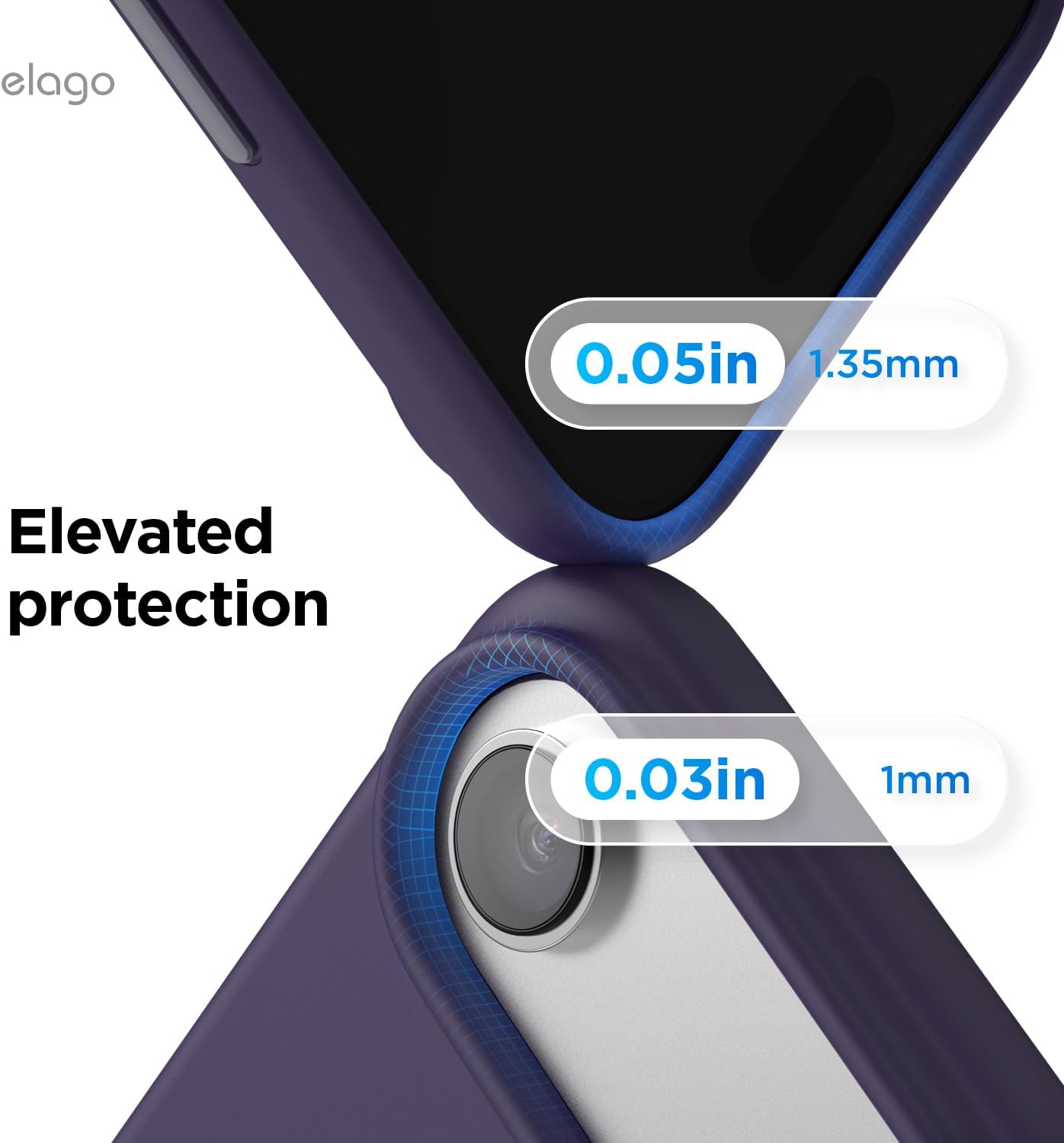 • Повдигнати ръбове за защита: дизайнът с пълно покритие на ръбовете защитава всички страни, портове и бутони; ръбовете около дисплея и камерата са повдигнати с 1 мм, за да предпазят от надраскване на повърхностите. Тънкият дизайн позволява безжично зареждане.