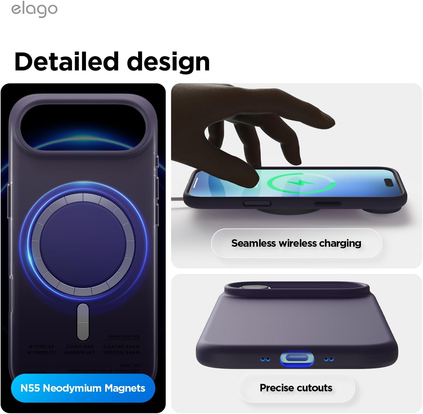 • Вътрешен дизайн за iPhone 17 Pro: това не е стандартен калъф. Дизайнерският екип на elagos проектира, тества и оптимизира всяка извивка за персонализирано прилягане, стилен външен вид и ежедневна защита от падане – всичко от един източник.