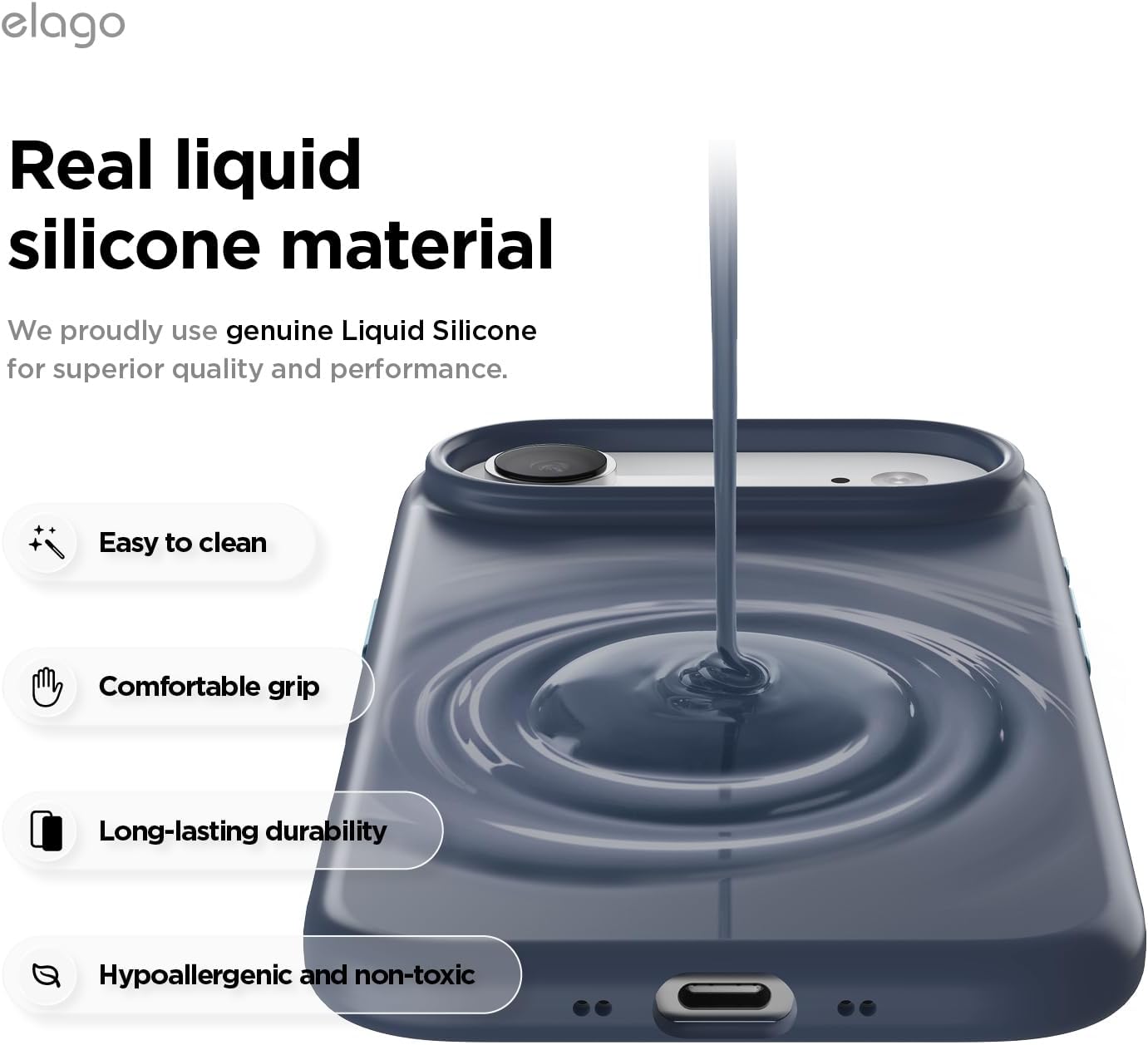 Силиконов калъф elago Magnet за iPhone Air - съвместим с MagSafe, първокласен течен силикон, удароустойчив, тънък защитен калъф (тъмносин)