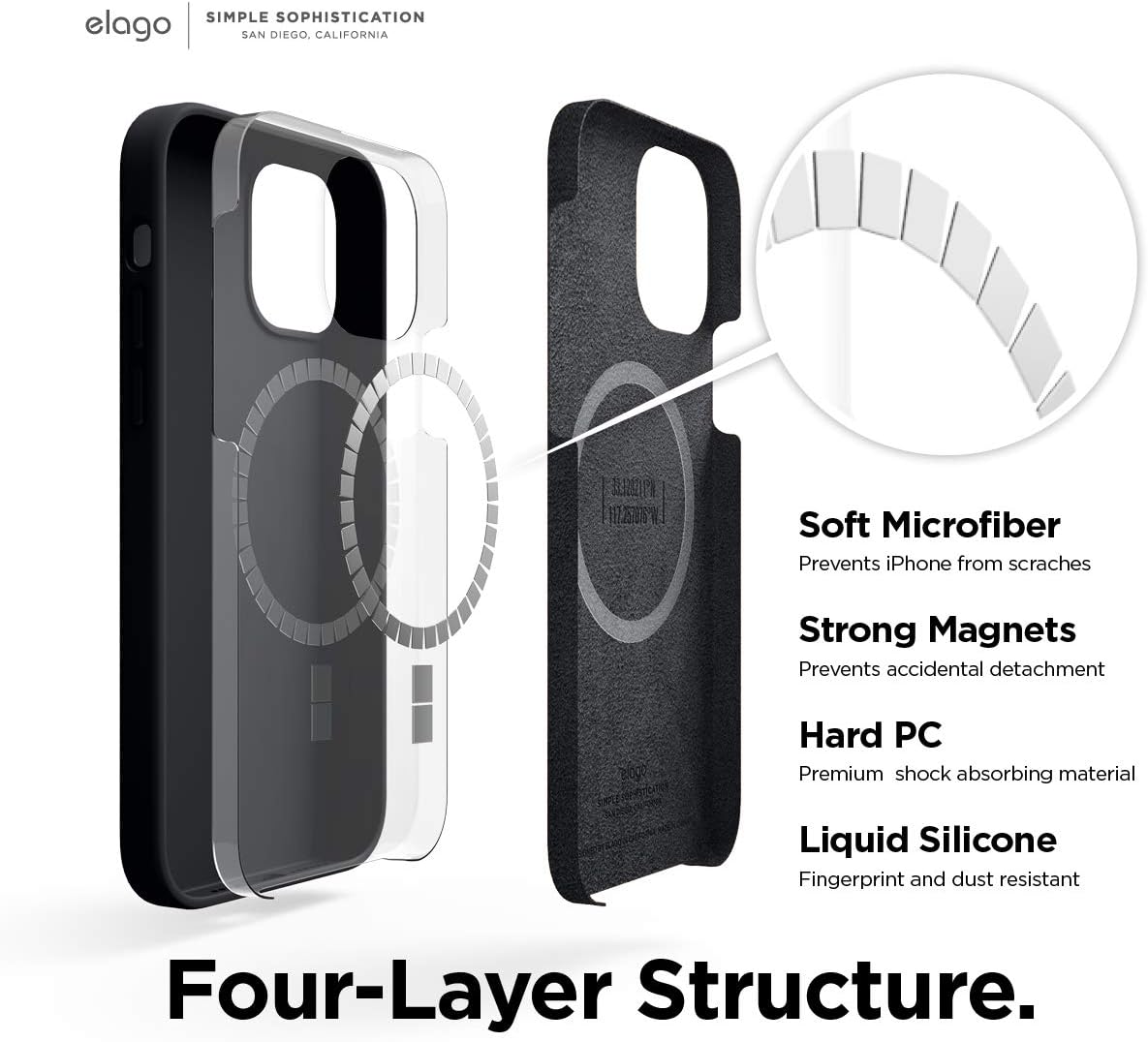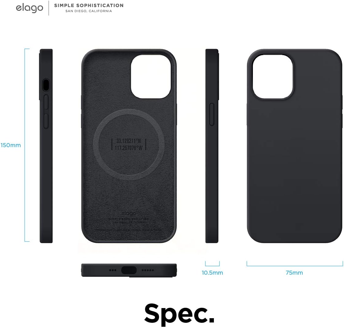 Силиконов калъф elago Magnetic, съвместим с iPhone 12 и iPhone 12 Pro 6.1 инча - вградени магнити, съвместим с аксесоари MagSafe (черен)
