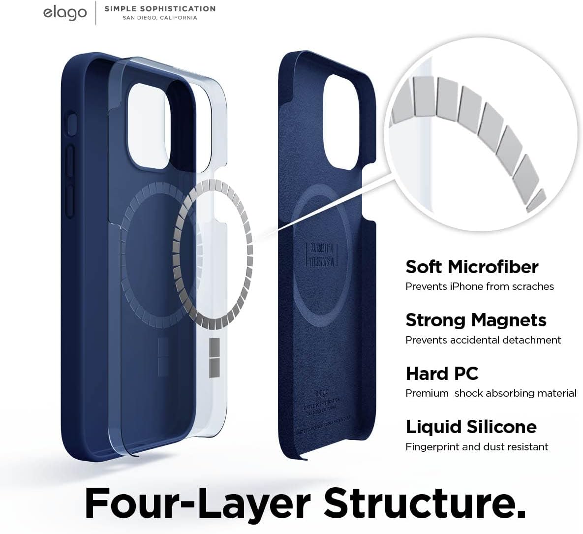 Силиконов калъф elago Magnetic, съвместим с iPhone 12 и iPhone 12 Pro 6.1 инча - вградени магнити, съвместим с аксесоари MagSafe (тъмносин)