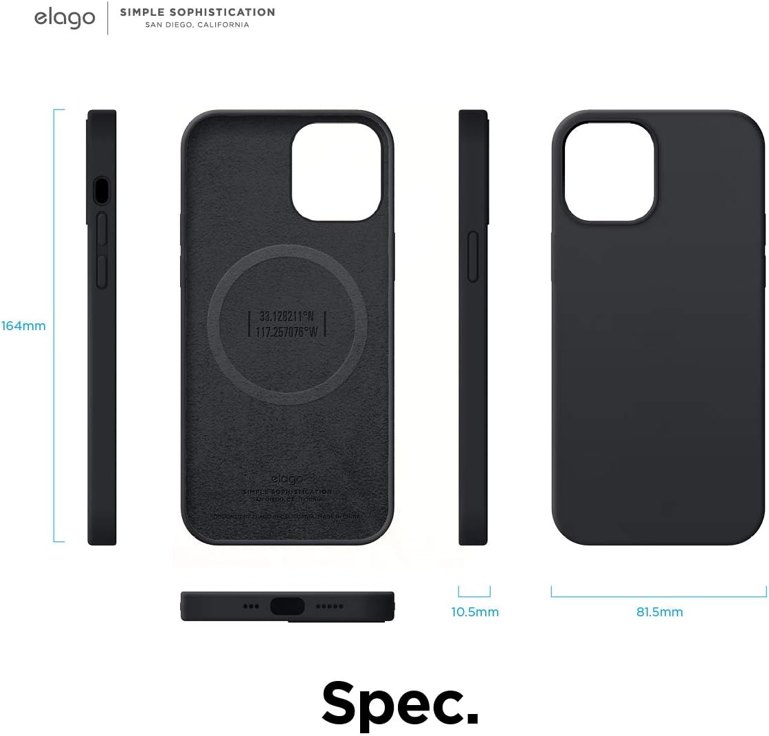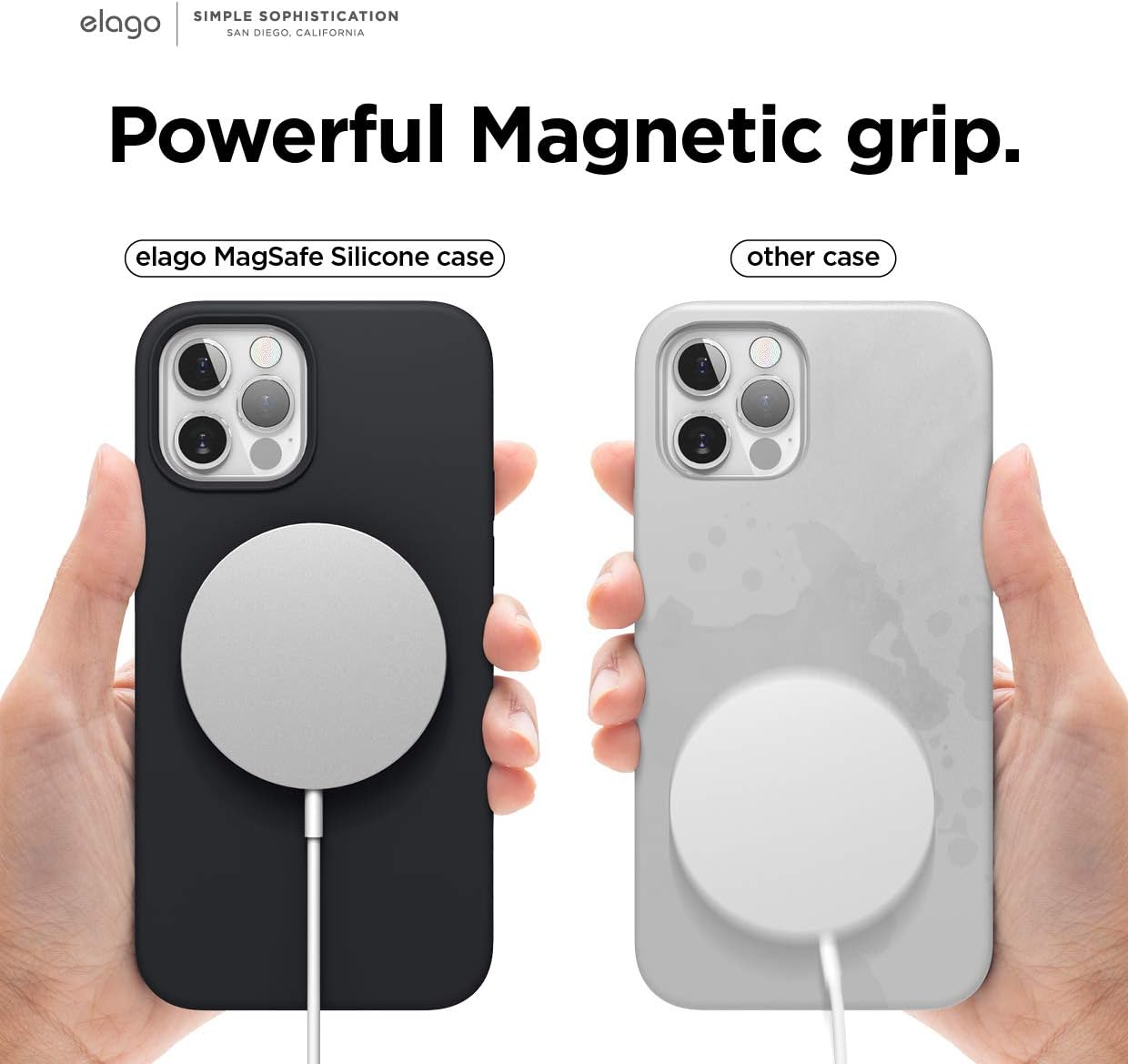 Силиконов калъф elago Magnetic, съвместим с iPhone 12 Pro Max 6.7 инча - Вградени магнити, Съвместим с аксесоари MagSafe (Черен)