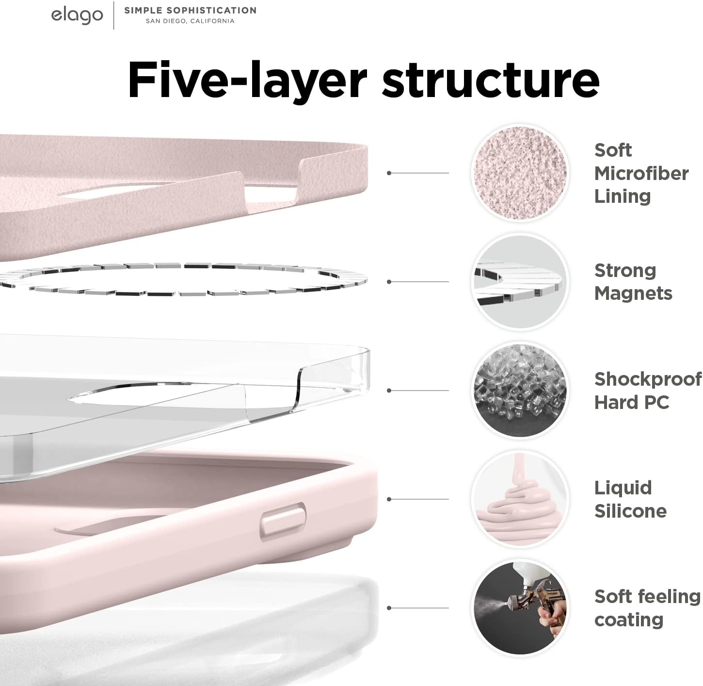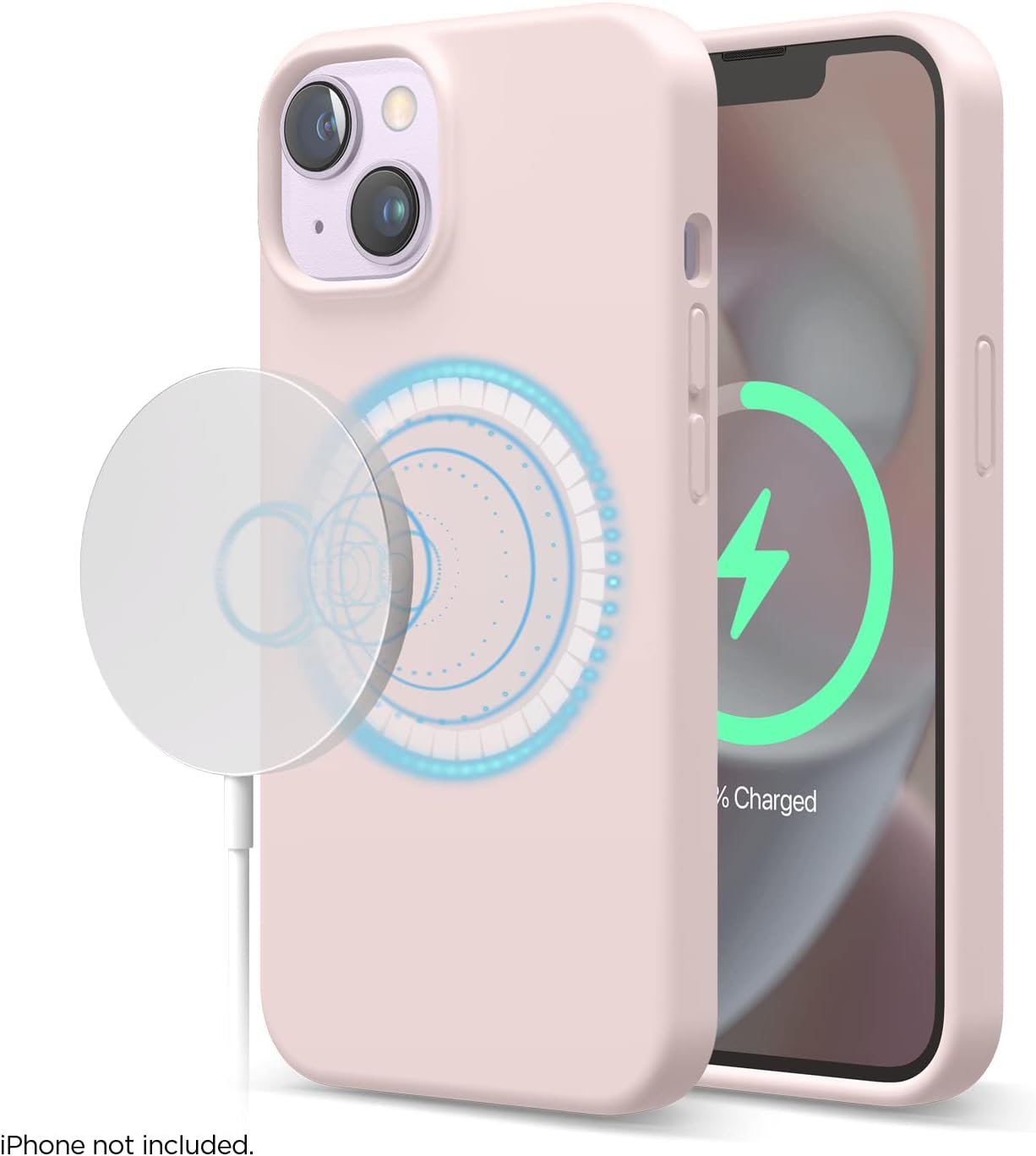 Силиконов калъф elago Magnetic, съвместим с iPhone 14 (6,1 инча), съвместим с MagSafe всички аксесоари, вградени магнити, първокласен течен силикон, защитен калъф (розов)