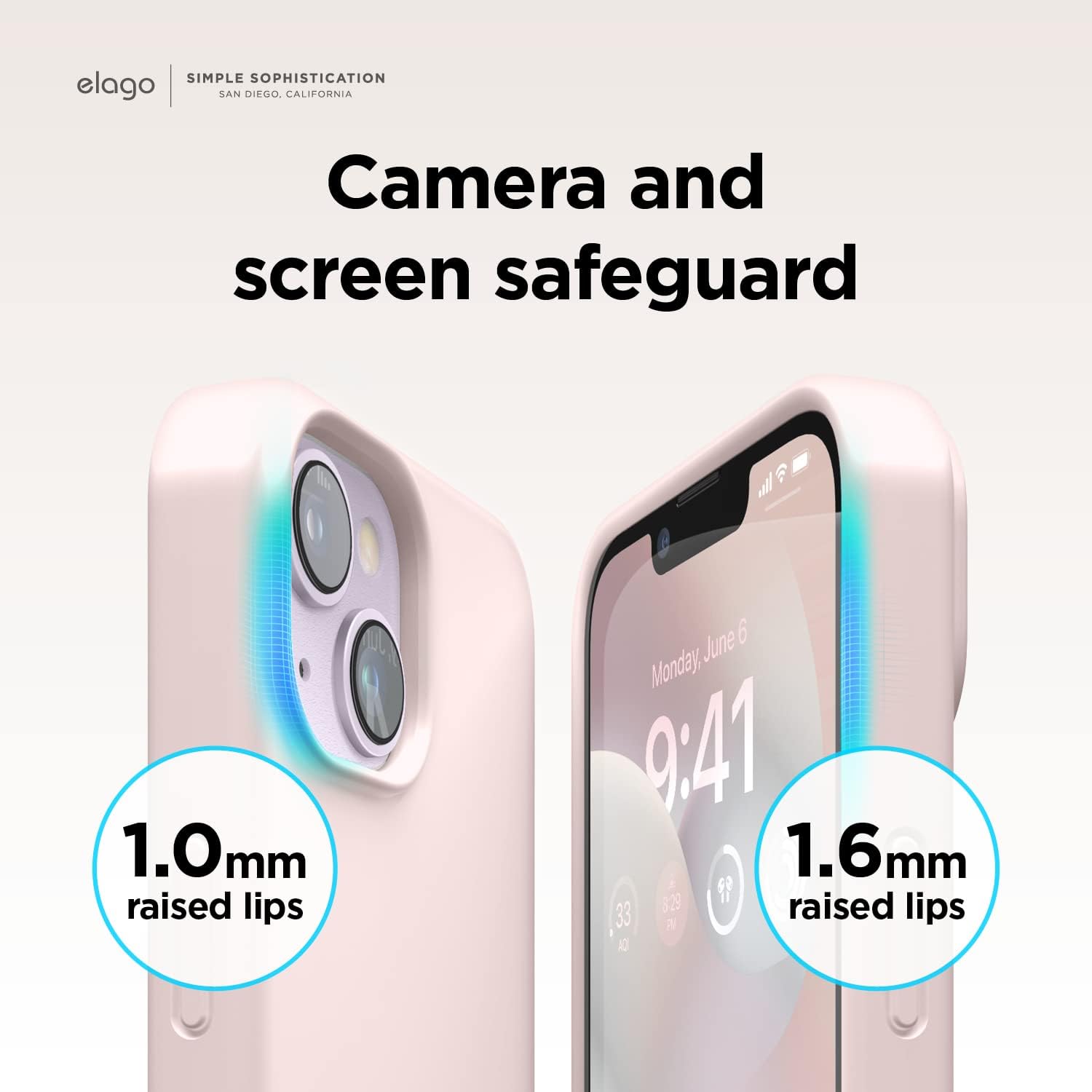 • Повдигнати ръбове за защита: дизайнът с пълно покритие на ръбовете защитава всички страни, портове и бутони; ръбовете около дисплея и камерата са повдигнати с 1 мм, за да предпазят от надраскване на повърхностите. Тънкият дизайн позволява безжично зареждане.