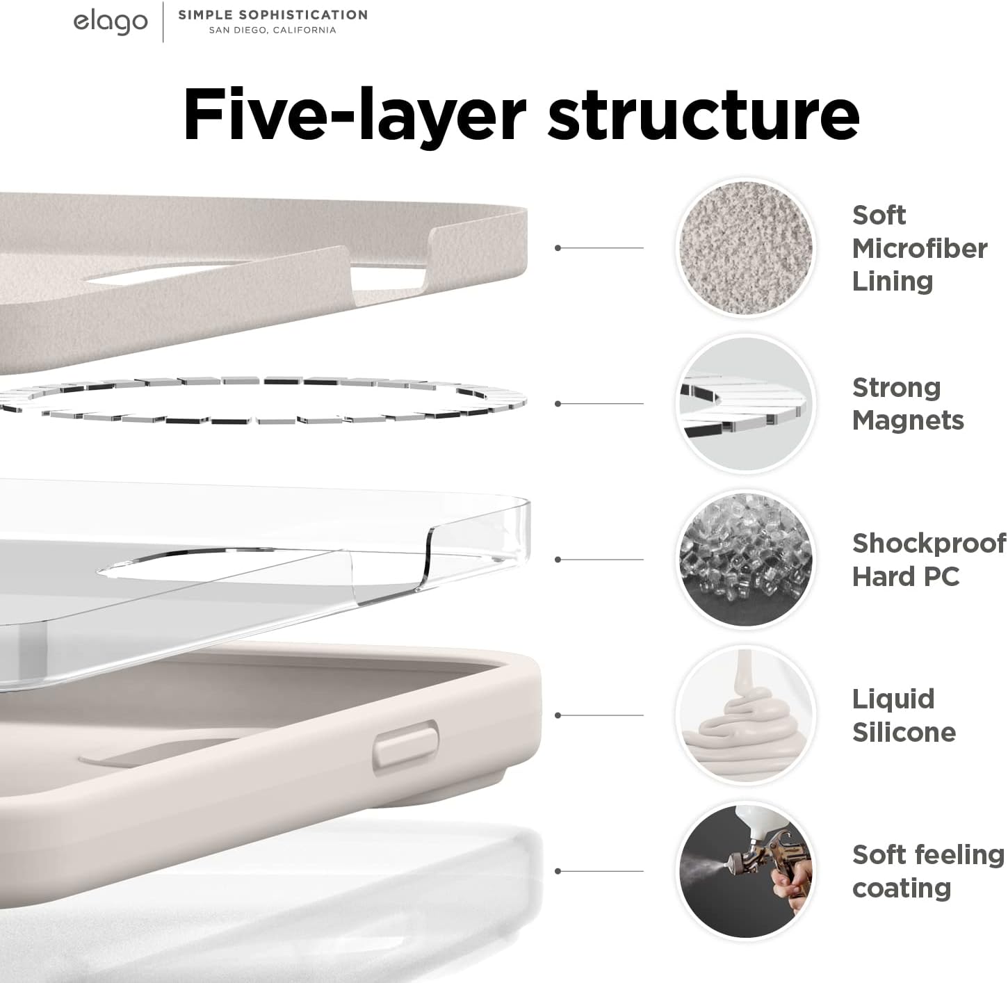 • Вътрешен дизайн за iPhone 17 Pro: това не е стандартен калъф. Дизайнерският екип на elagos проектира, тества и оптимизира всяка извивка за персонализирано прилягане, стилен външен вид и ежедневна защита от падане – всичко от един източник.