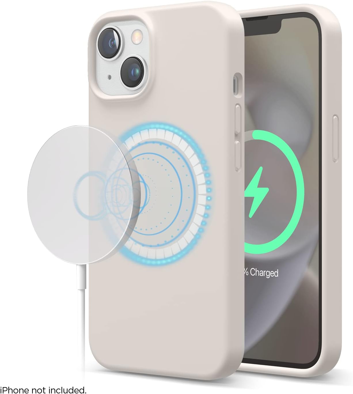 Силиконов калъф elago Magnetic, съвместим с iPhone 14 (6,1 инча), съвместим с всички аксесоари MagSafe, вградени магнити, първокласен течен силикон, защитен калъф (бежов)