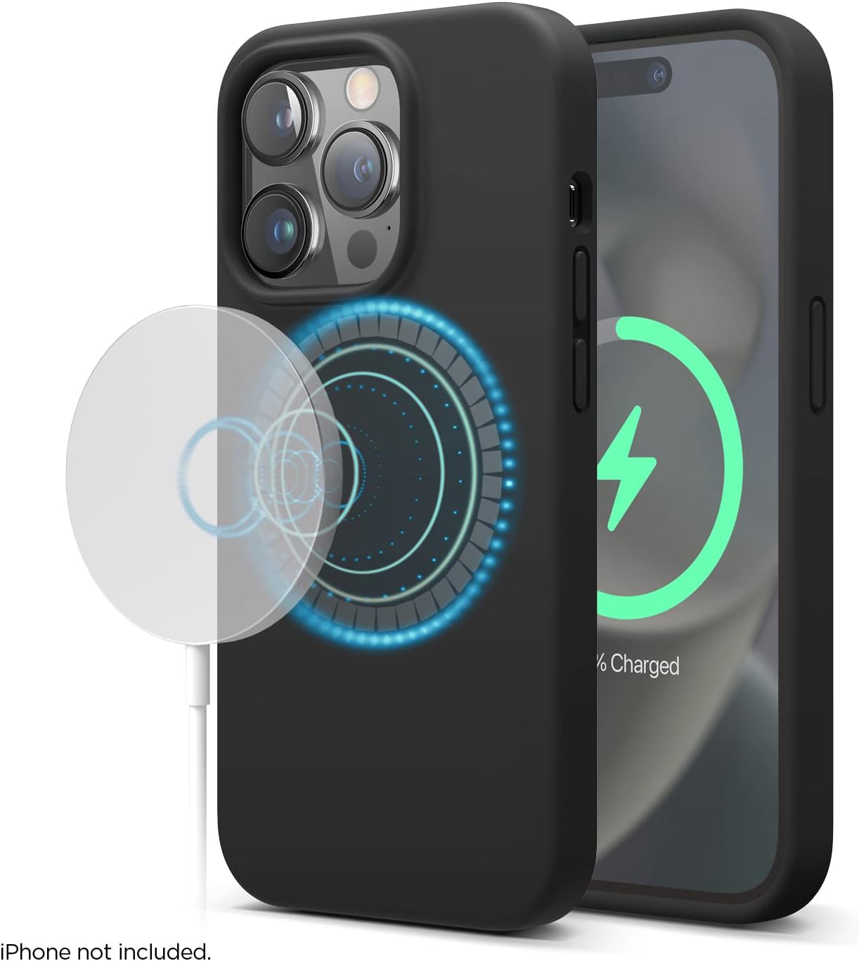 Силиконов калъф elago Magnetic, съвместим с iPhone 14 Pro (6.1 инча), съвместим с MagSafe всички аксесоари, вградени магнити, първокласен течен силикон, защитен калъф (черен)