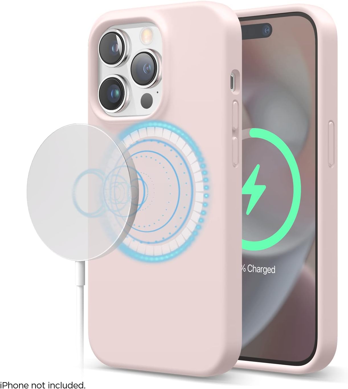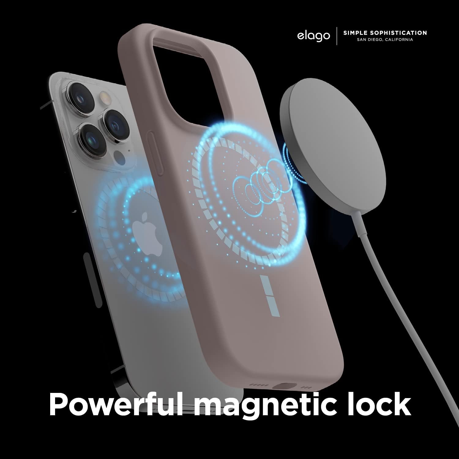 Силиконов калъф elago Magnetic, съвместим с iPhone 14 Pro (6,1 инча), съвместим с MagSafe всички аксесоари, вградени магнити, първокласен течен силикон, защитен калъф (розов)