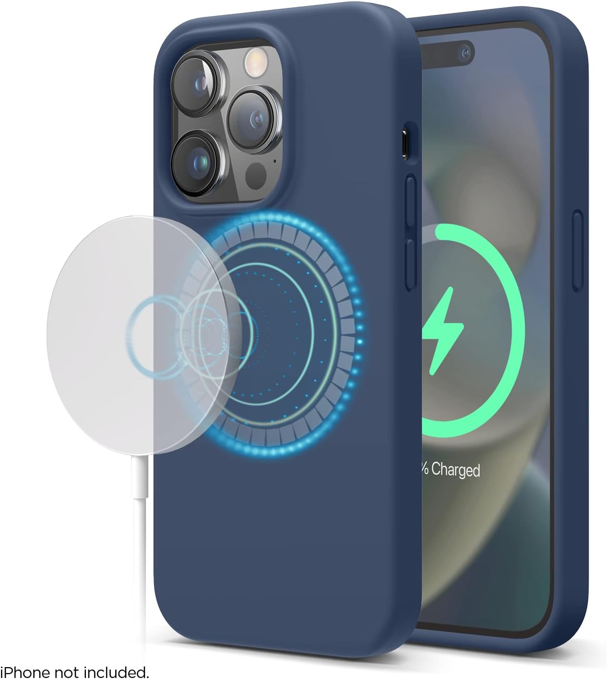 Силиконов калъф elago Magnetic, съвместим с iPhone 14 Pro (6.1 инча), съвместим с всички аксесоари MagSafe, вградени магнити, първокласен течен силикон, защитен калъф (тъмносин)