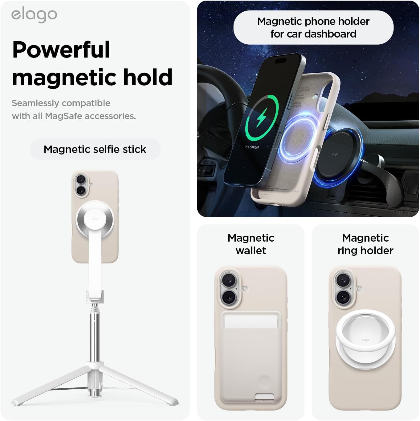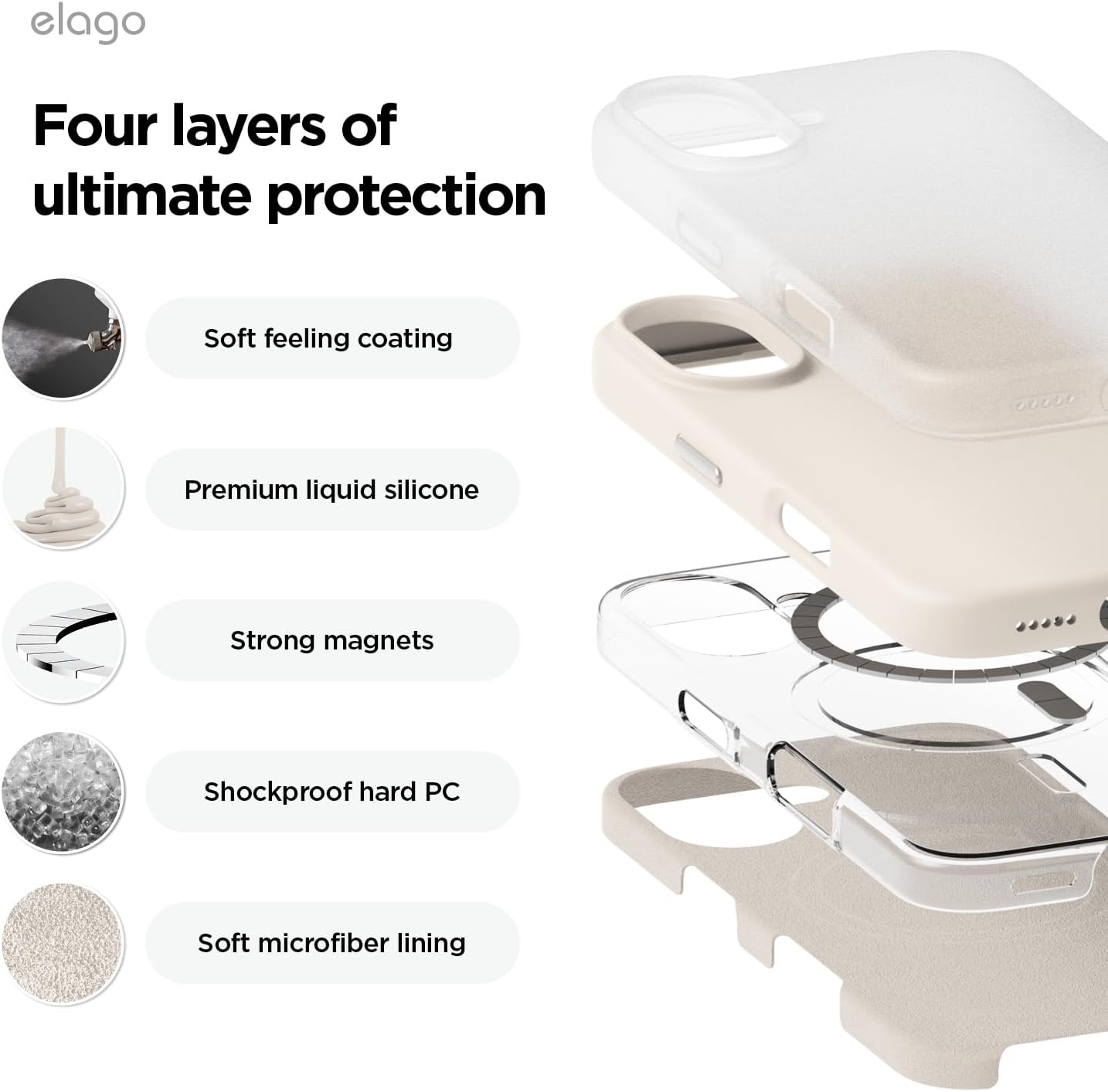 Силиконов калъф elago Magnetic, съвместим с iPhone 16 6.1 инча, съвместим с всички аксесоари MagSafe - вградени магнити, мек силиконов захват, удароустойчив (бежов)