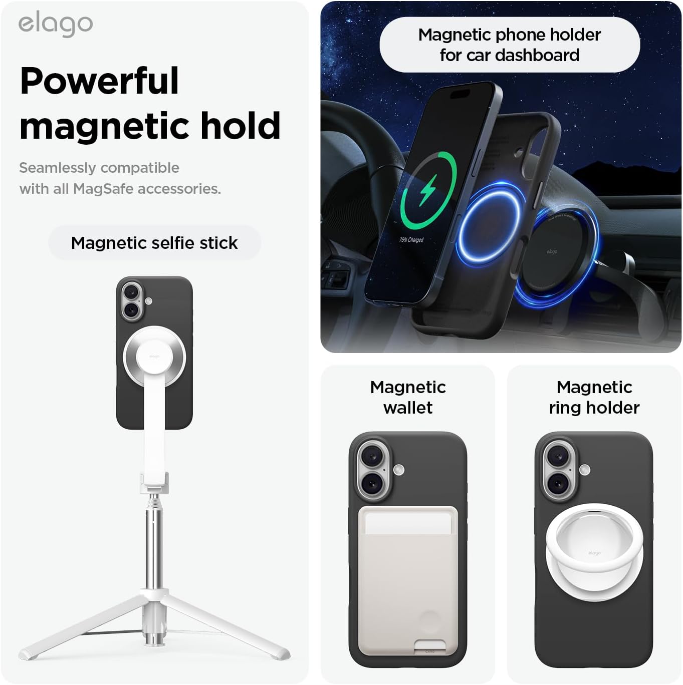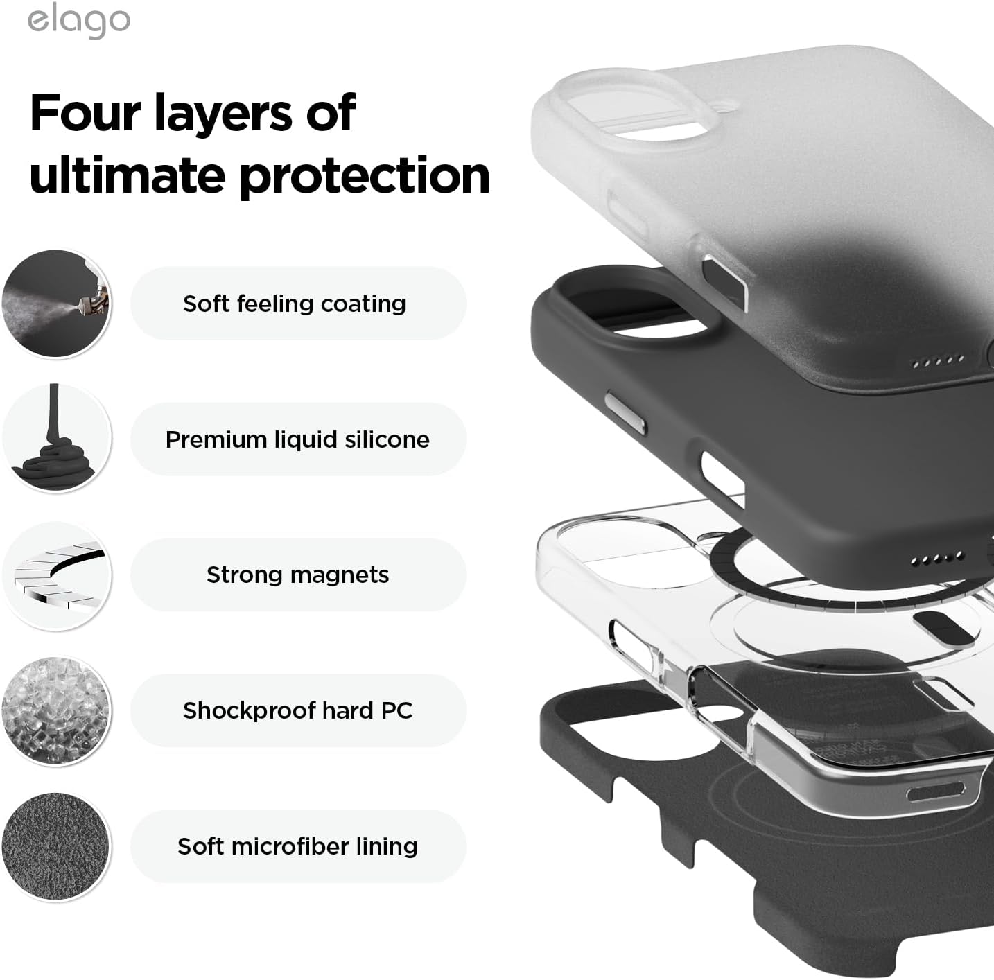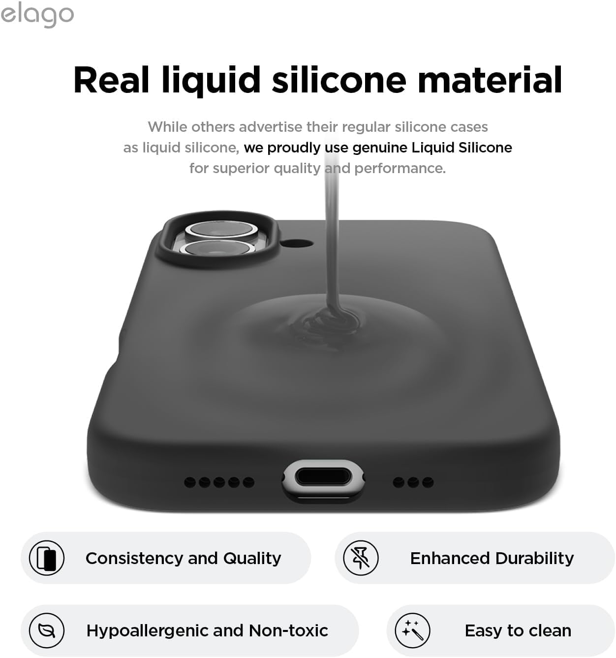 Силиконов калъф elago Magnetic, съвместим с iPhone 16 6.1 инча, съвместим с всички аксесоари MagSafe - вградени магнити, мек силиконов захват, удароустойчив (черен)