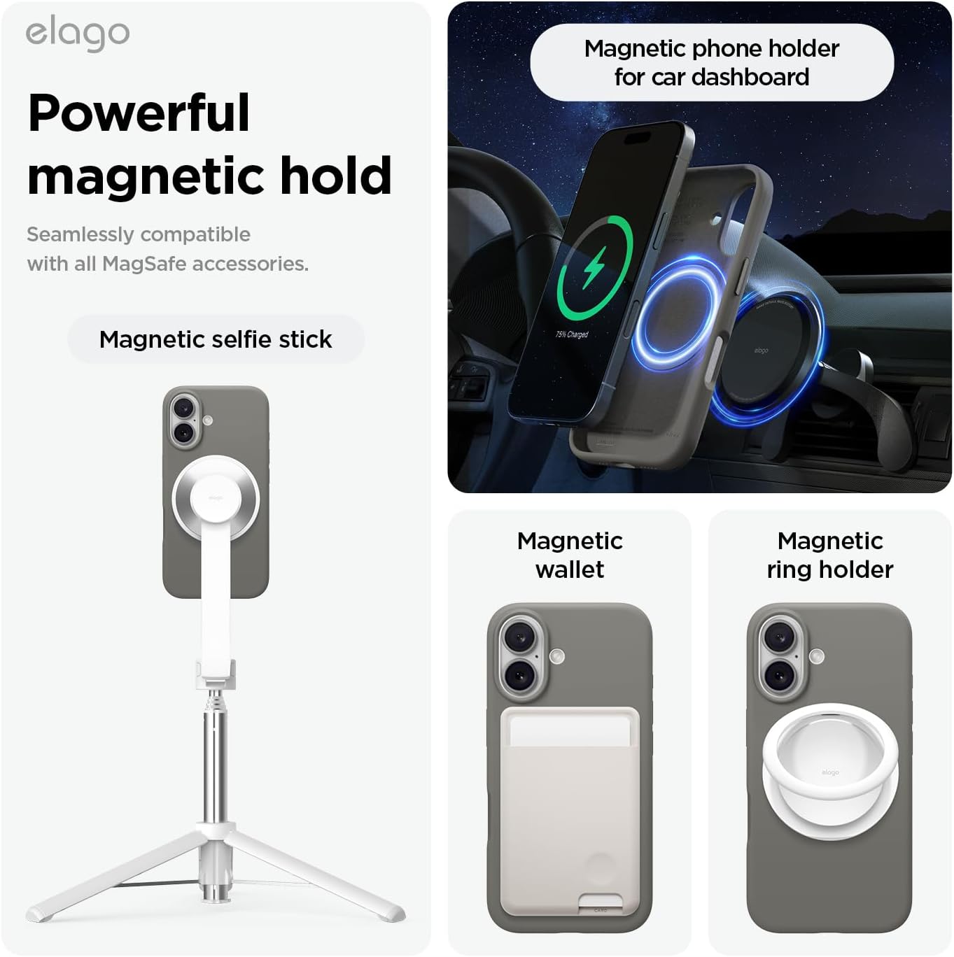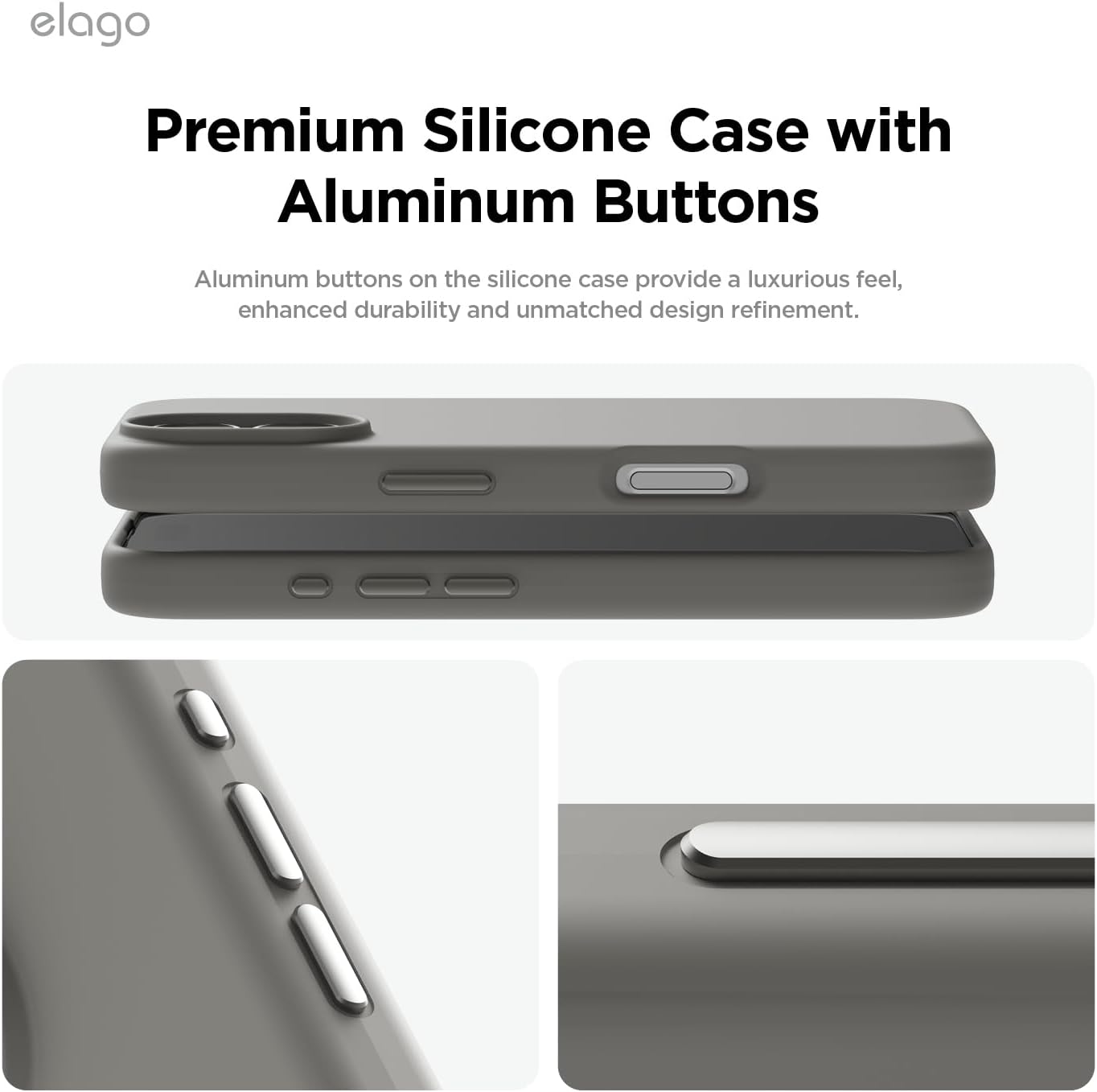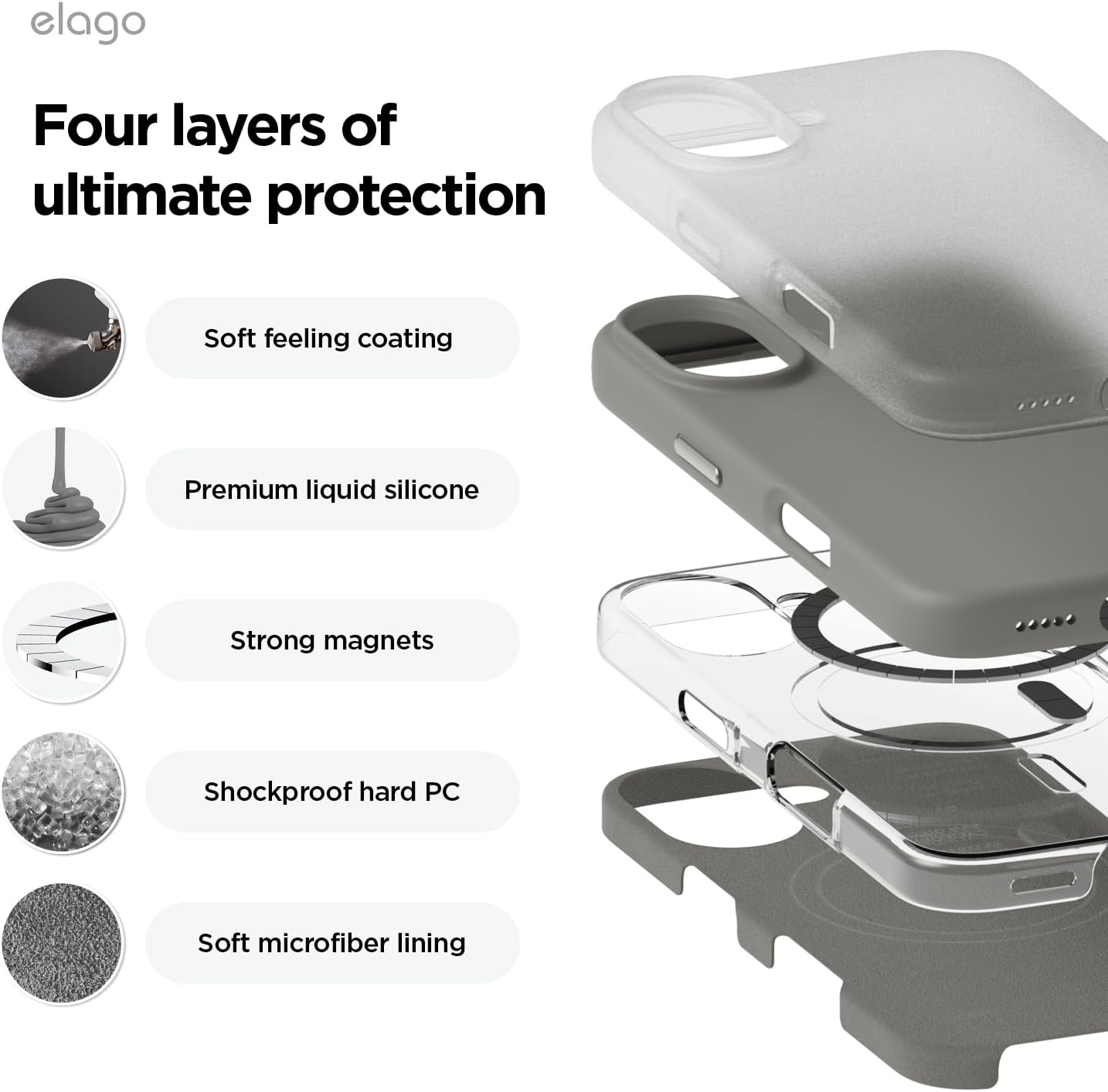 Силиконов калъф elago Magnetic, съвместим с iPhone 16 6.1 инча, съвместим с всички аксесоари MagSafe - вградени магнити, мек силиконов захват, удароустойчив (средно сив)