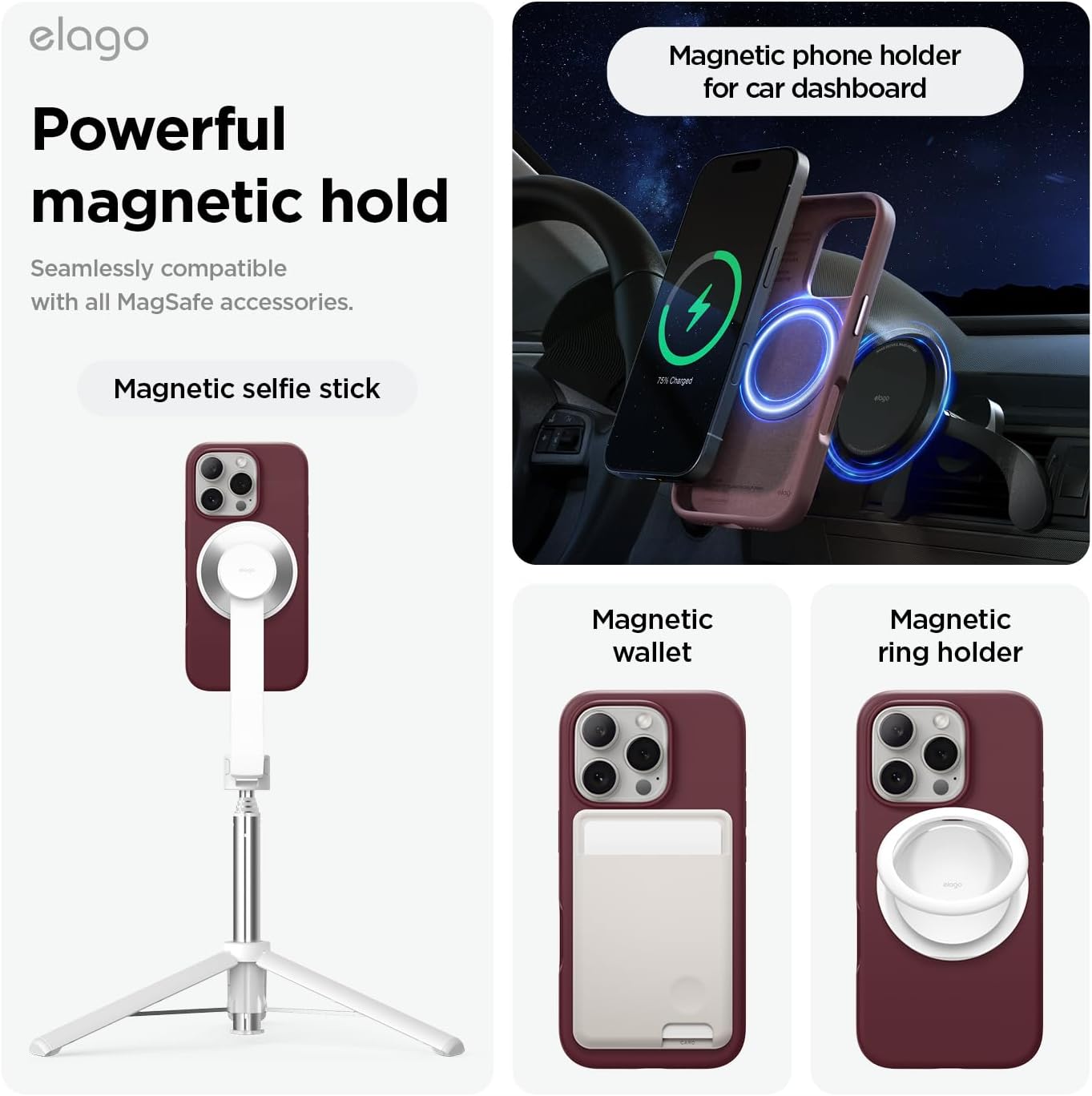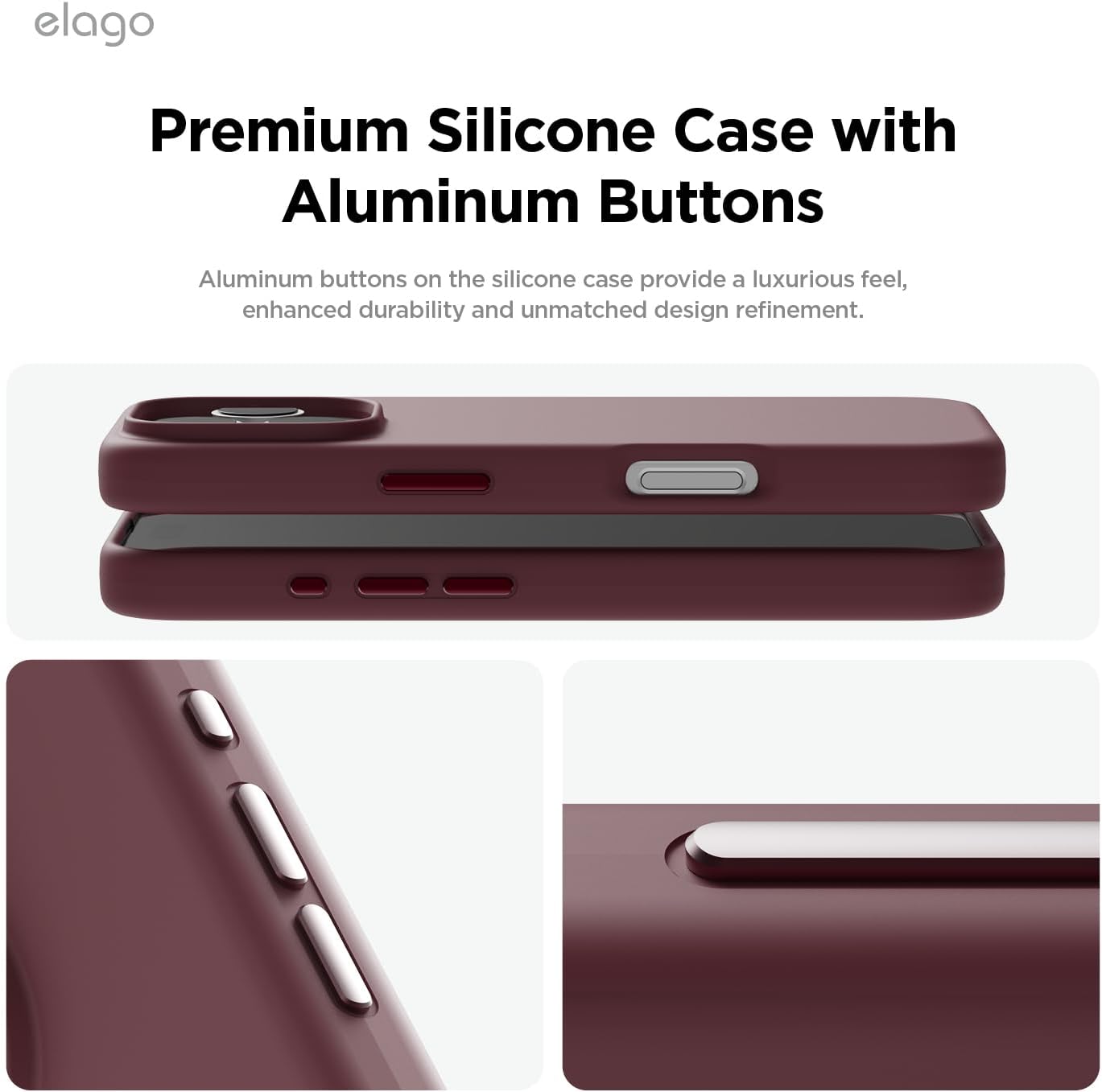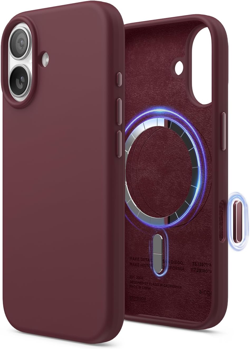 Силиконов калъф elago Magnetic, съвместим с iPhone 16 Pro 6.3 инча, съвместим с всички аксесоари MagSafe - вградени магнити, мек силиконов захват, удароустойчив (бордо)