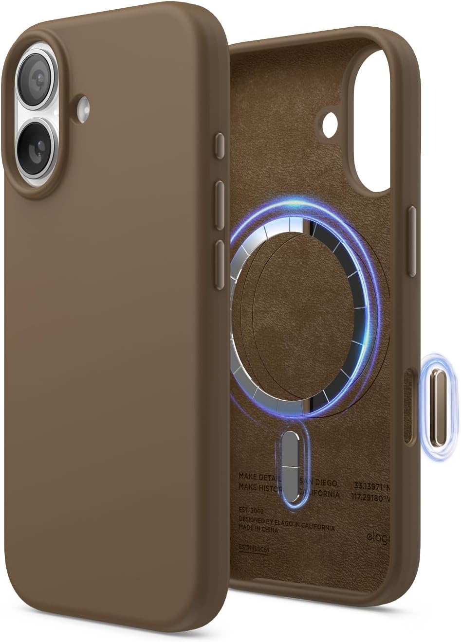 Силиконов калъф elago Magnetic, съвместим с iPhone 16 Pro 6.3 инча, съвместим с всички аксесоари MagSafe - вградени магнити, мек силиконов захват, удароустойчив (кафяв)