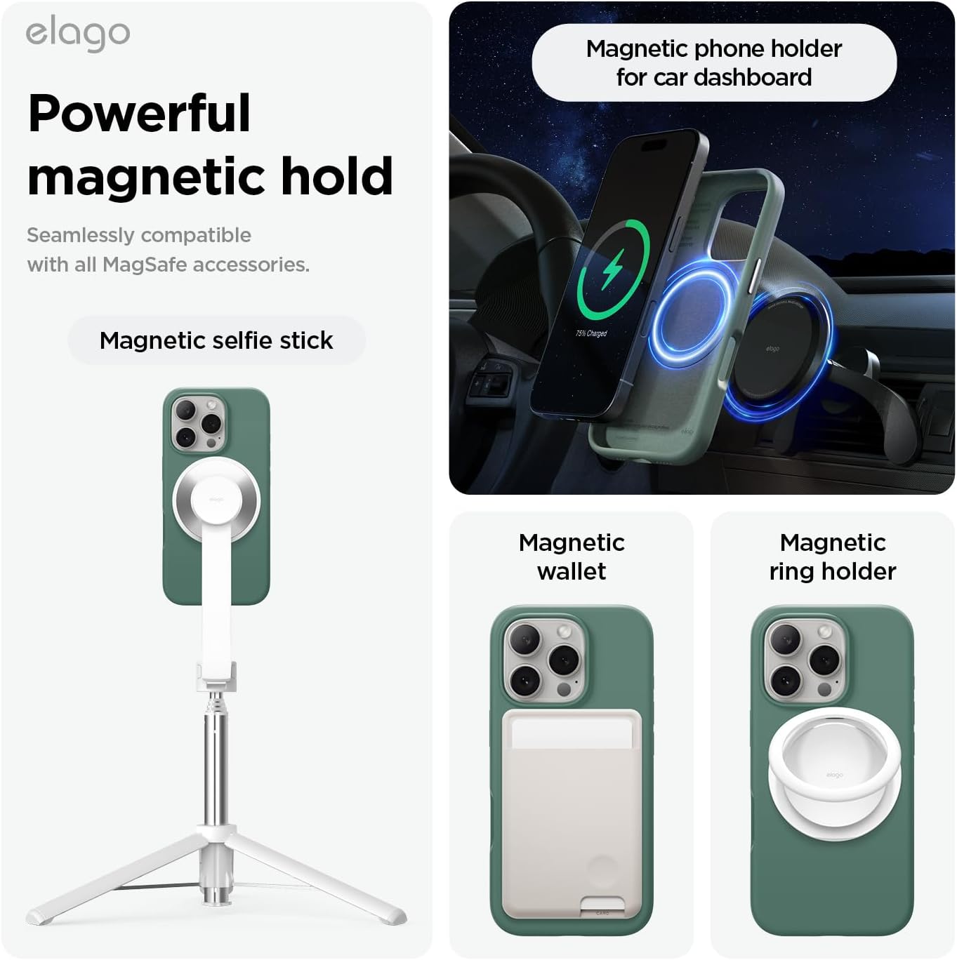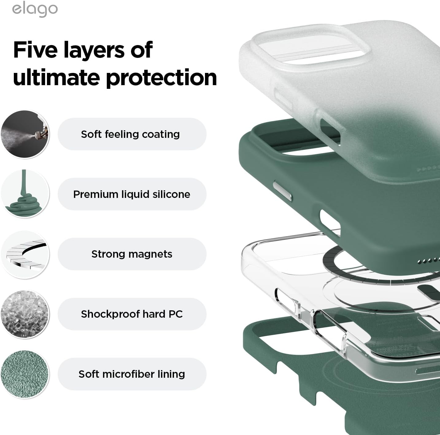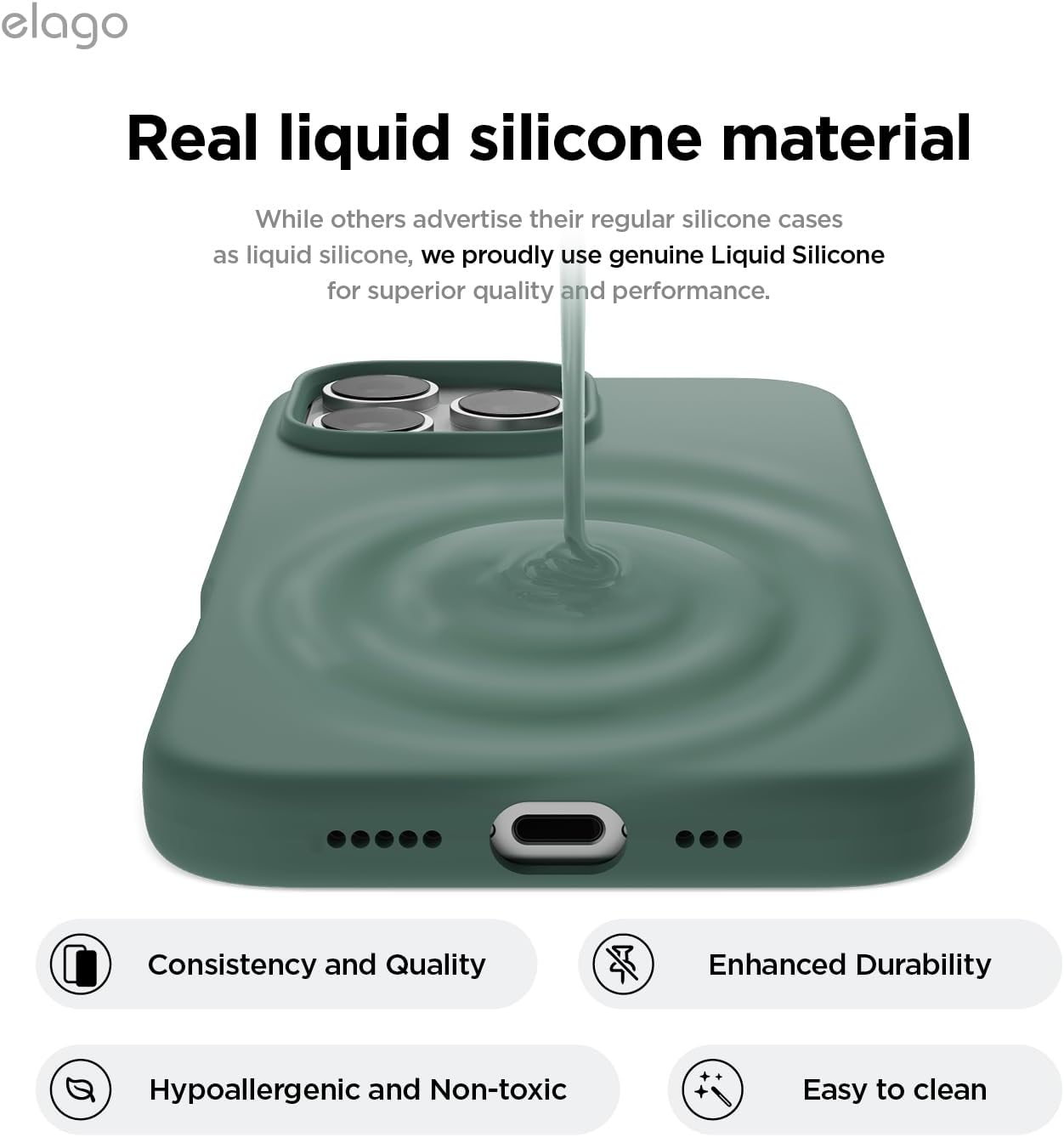 Силиконов калъф elago Magnetic, съвместим с iPhone 16 Pro 6.3 инча, съвместим с всички аксесоари MagSafe - вградени магнити, мек силиконов захват, удароустойчив (полунощно зелено)