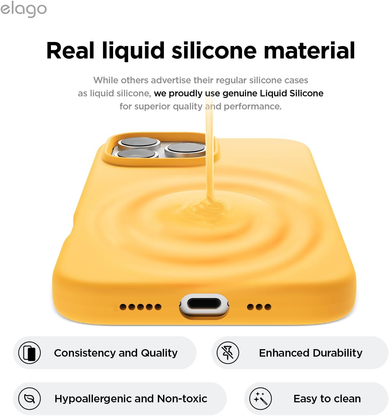 Силиконов калъф elago Magnetic, съвместим с iPhone 16 Pro 6.3 инча, съвместим с всички аксесоари MagSafe - вградени магнити, мек силиконов захват, удароустойчив (слънчева светлина)