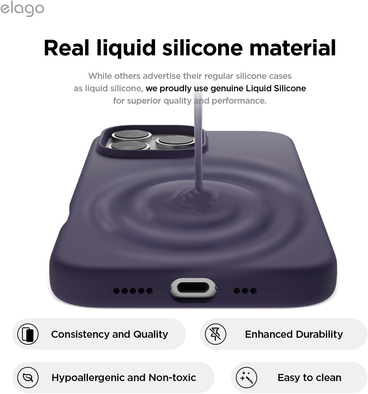 Силиконов калъф elago Magnetic, съвместим с iPhone 16 Pro 6.3 инча, съвместим с всички аксесоари MagSafe - вградени магнити, мек силиконов захват, удароустойчив (тъмно лилав)