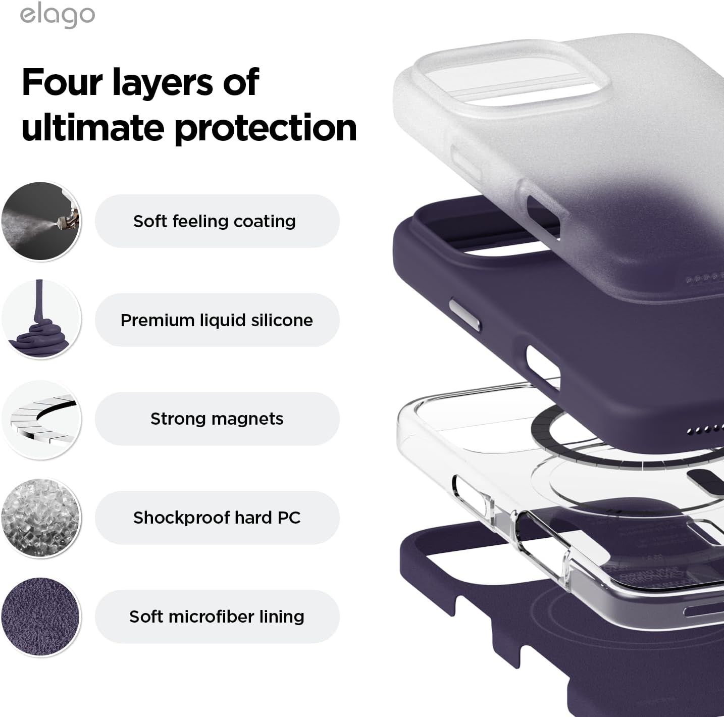 • Вътрешен дизайн за iPhone 17 Pro: това не е стандартен калъф. Дизайнерският екип на elagos проектира, тества и оптимизира всяка извивка за персонализирано прилягане, стилен външен вид и ежедневна защита от падане – всичко от един източник.