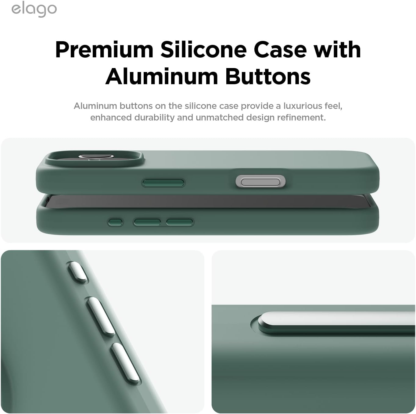 Силиконов калъф elago Magnetic, съвместим с iPhone 16 Pro Max 6.9 инча, съвместим с всички аксесоари MagSafe - вградени магнити, мек силиконов захват, удароустойчив (полунощно зелено)