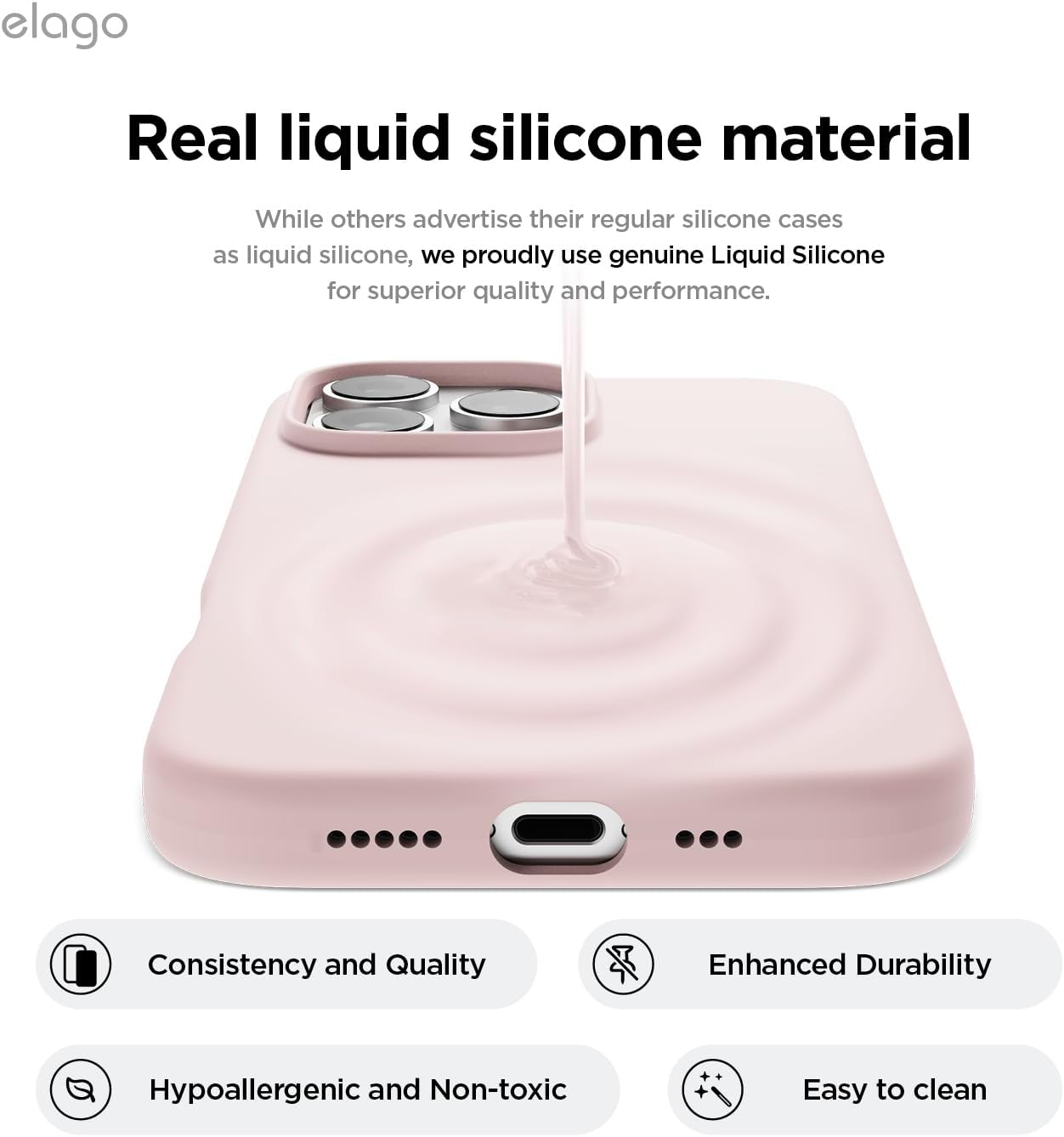 Силиконов калъф elago Magnetic, съвместим с iPhone 16 Pro Max 6.9 инча, съвместим с всички аксесоари MagSafe - вградени магнити, мек силиконов захват, удароустойчив (прекрасен розов)