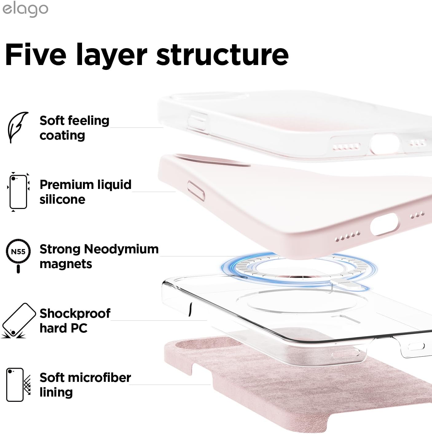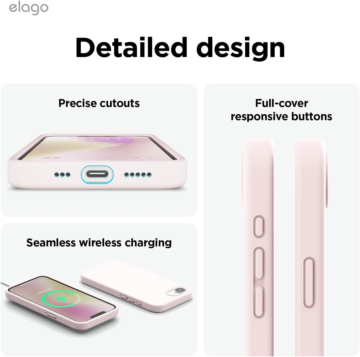 Силиконов калъф elago Magnetic, съвместим с iPhone 16e, съвместим с всички аксесоари MagSafe - вградени магнити, мек силиконов захват, удароустойчив (прекрасен розов)