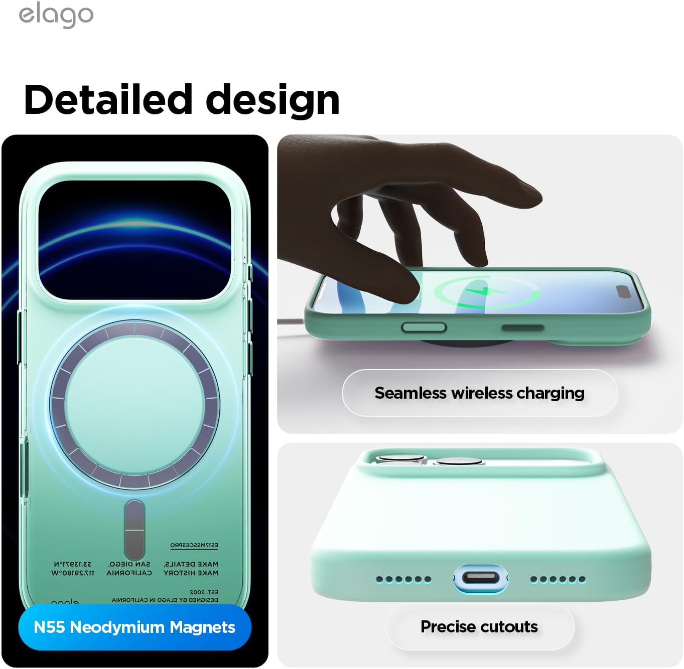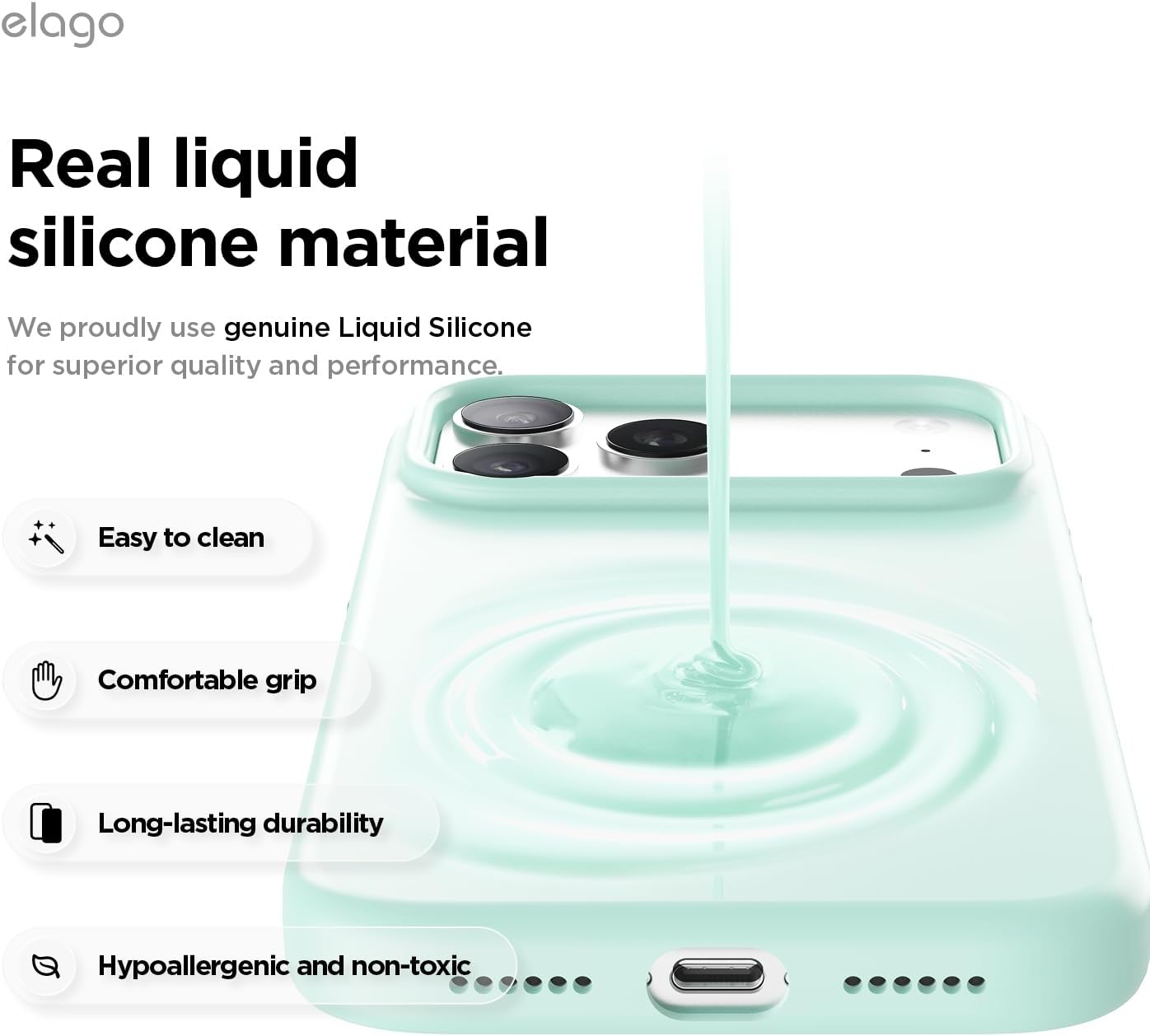 Силиконов калъф elago Magnetic за iPhone 17 Pro Max - съвместим с MagSafe, първокласен течен силикон, удароустойчив, тънък защитен калъф (аквамарин)