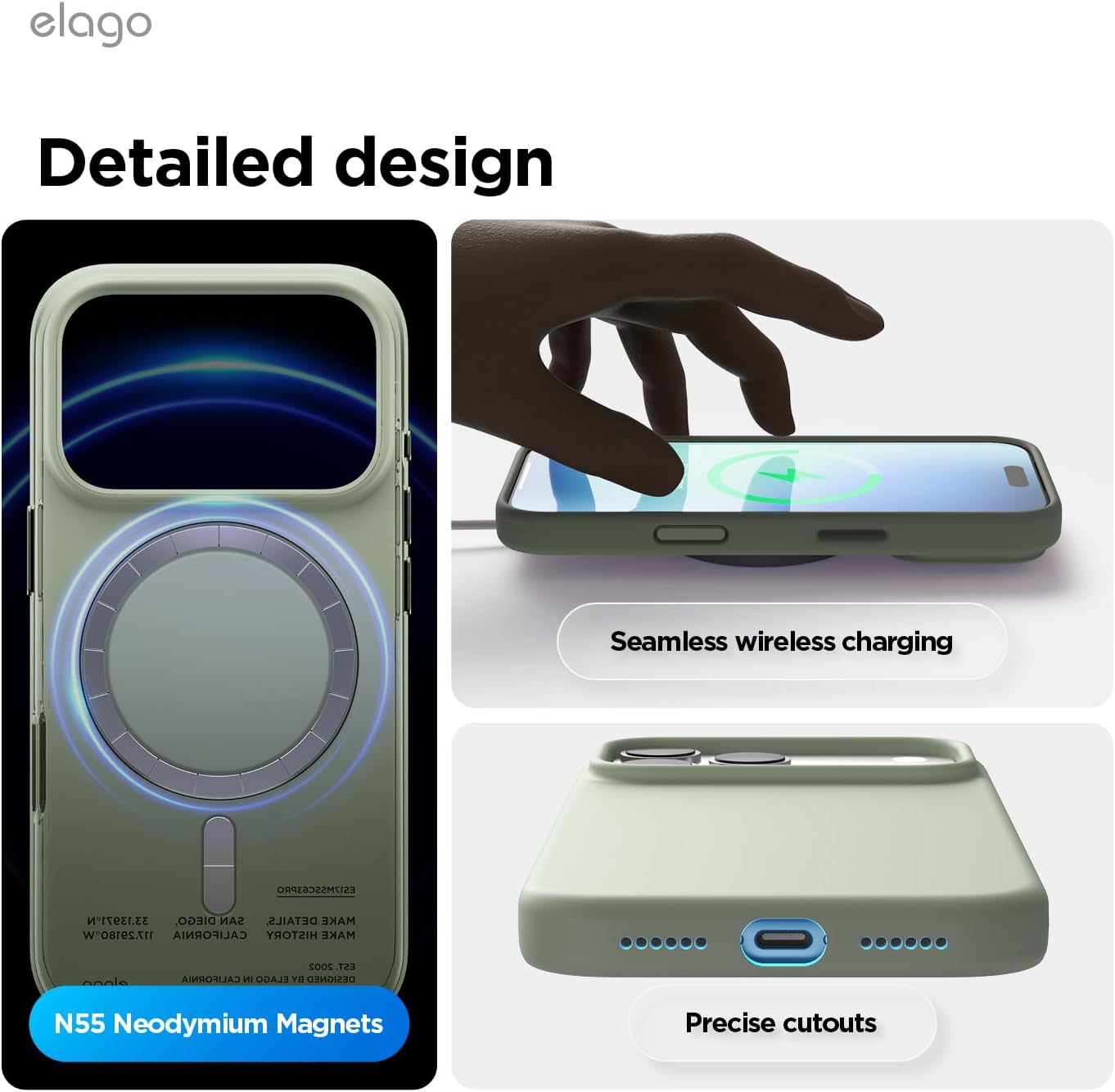 Силиконов калъф elago Magnetic за iPhone 17 Pro Max - съвместим с MagSafe, първокласен течен силикон, удароустойчив, тънък защитен калъф (каки зелен)