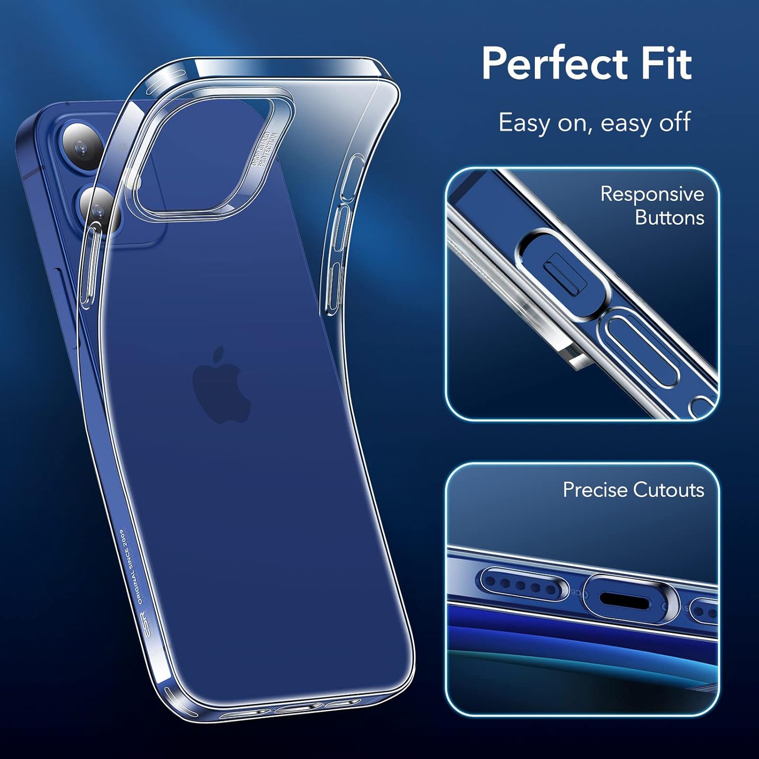 Силиконов калъф ESR Clear за iPhone 12/12 Pro, прозрачен полимерен калъф, тънък, мек, гъвкав, тънък калъф за мобилен телефон, прозрачен