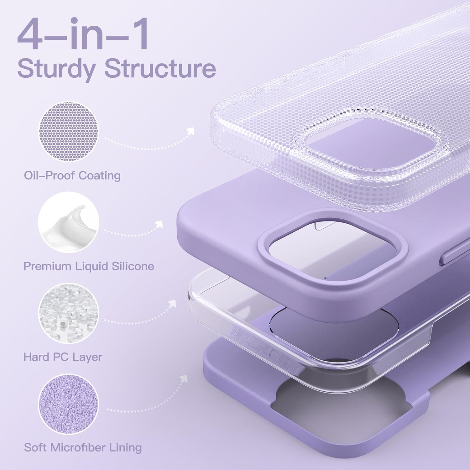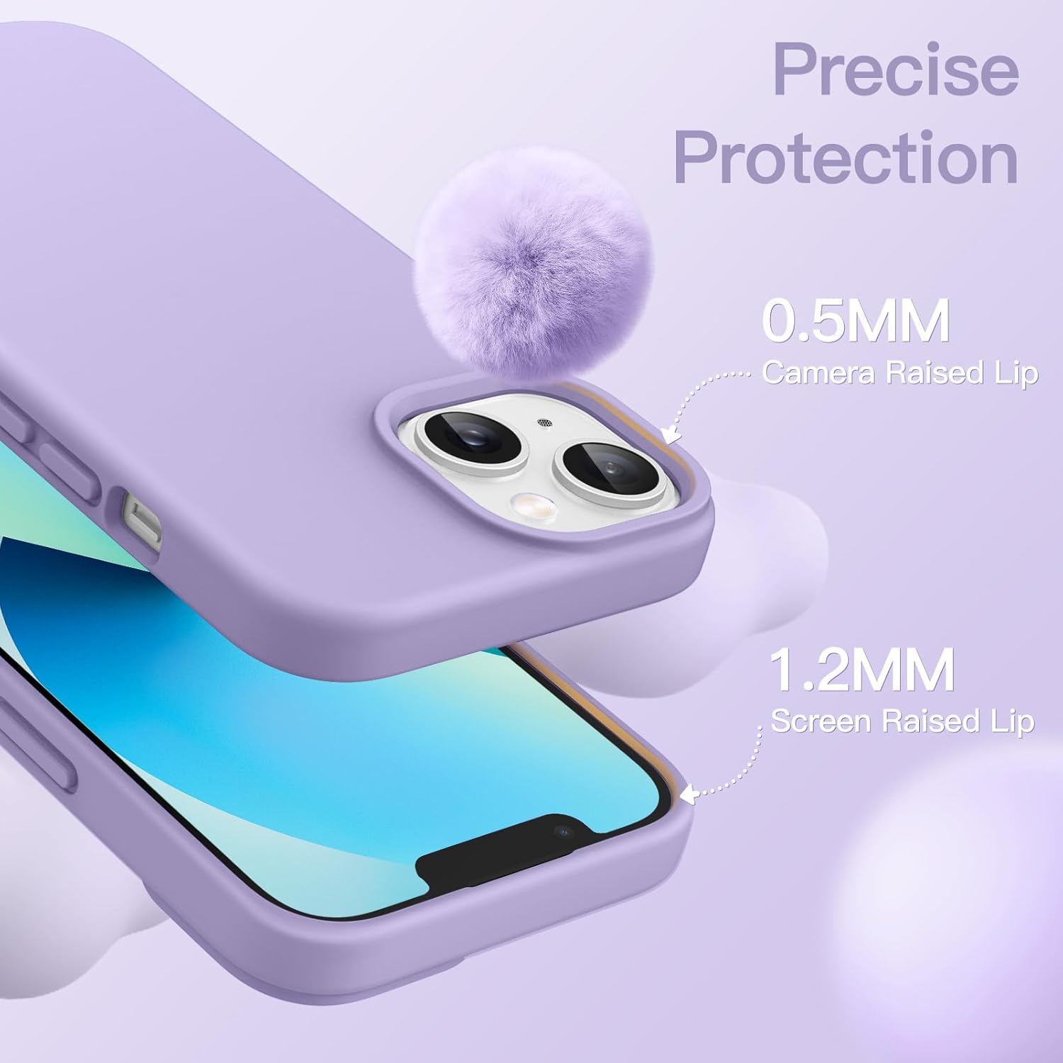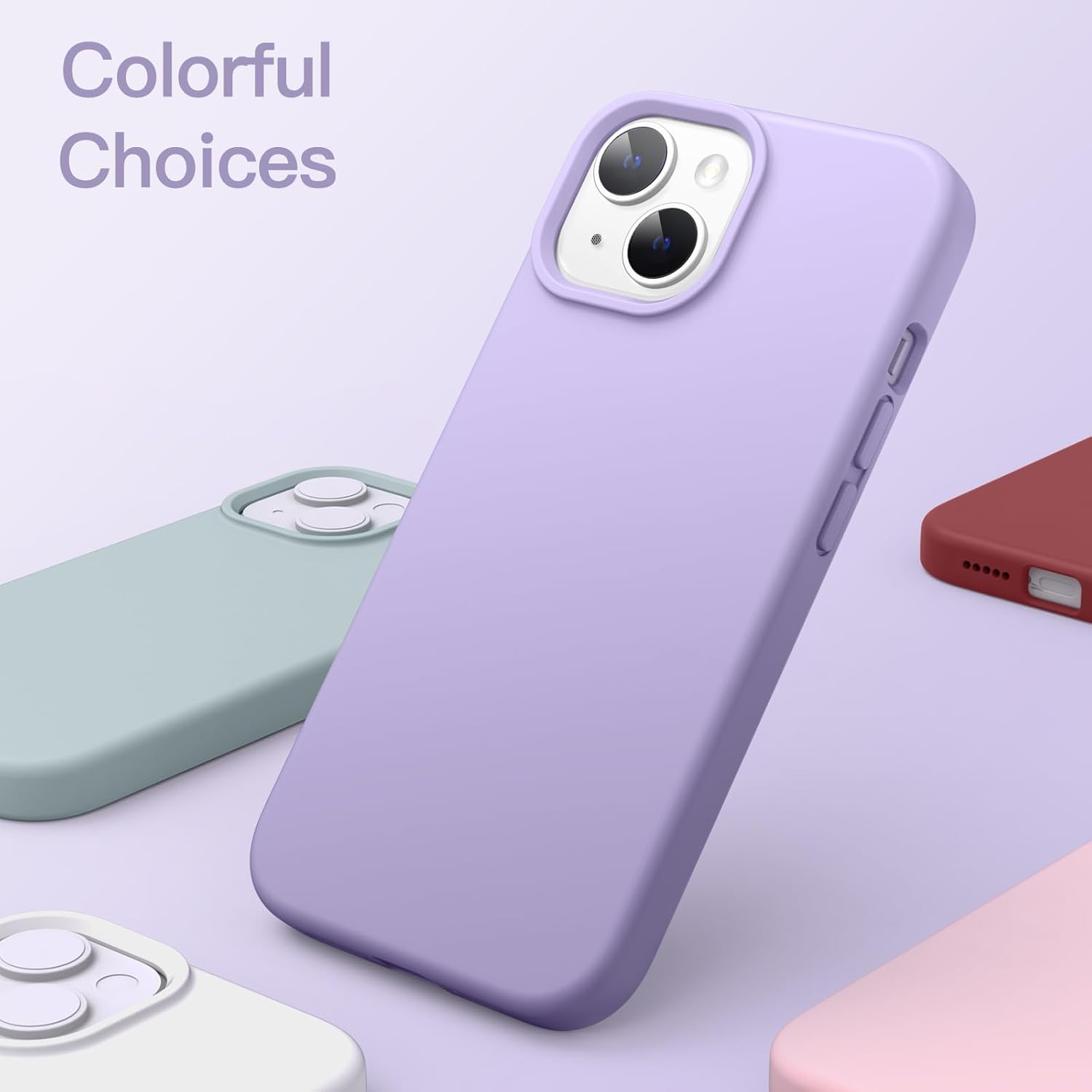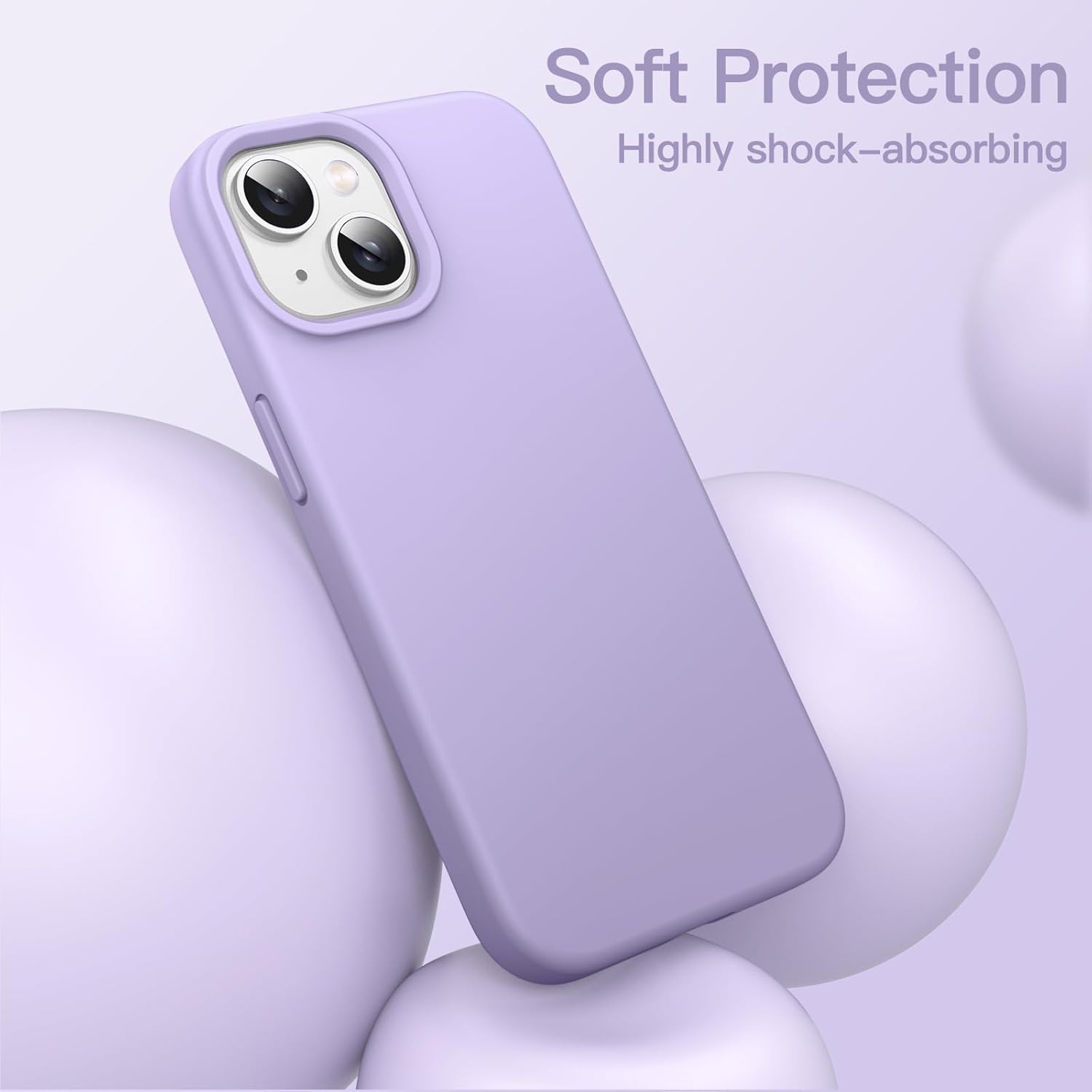 Силиконов калъф JETech, съвместим с iPhone 13 (6.1 инча), калъф за мобилен телефон с пълна защита и копринено меко усещане, удароустойчив калъф с микрофибърна подплата (светло лилав)