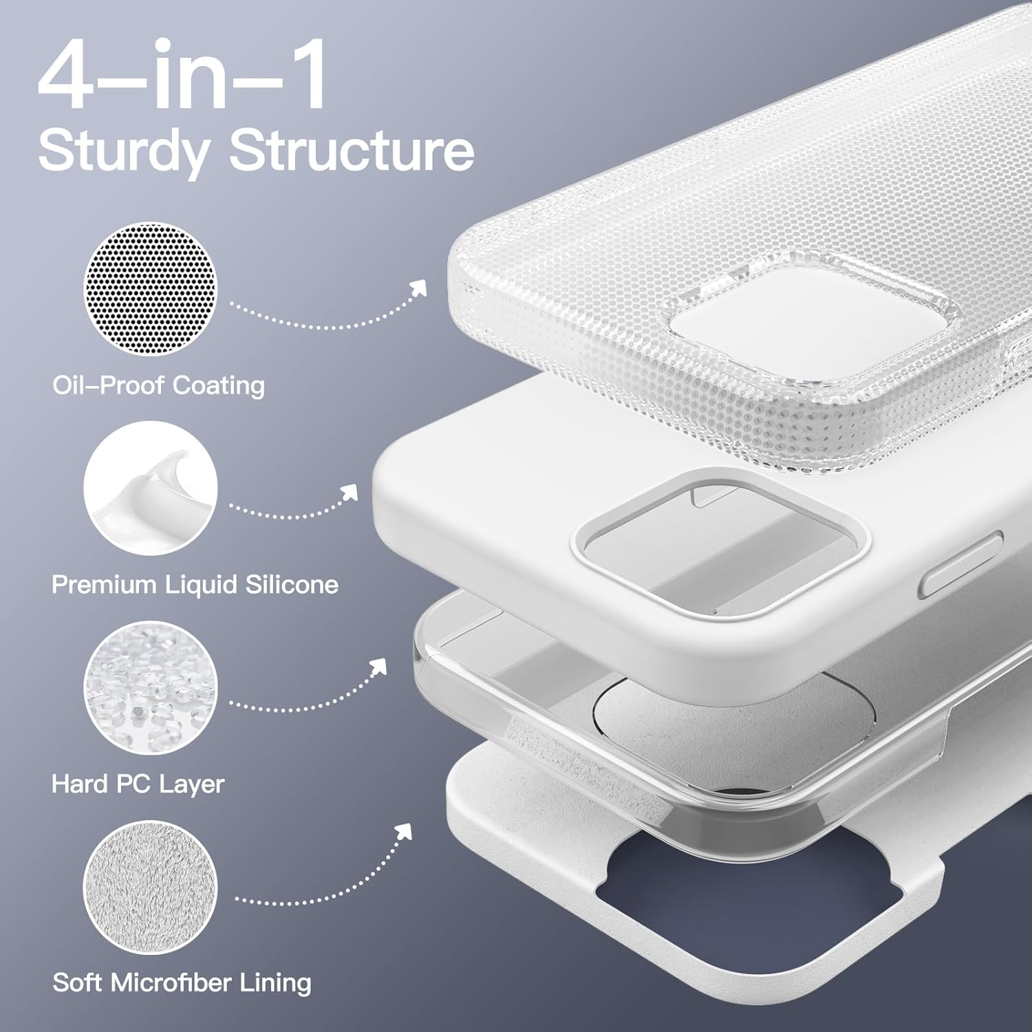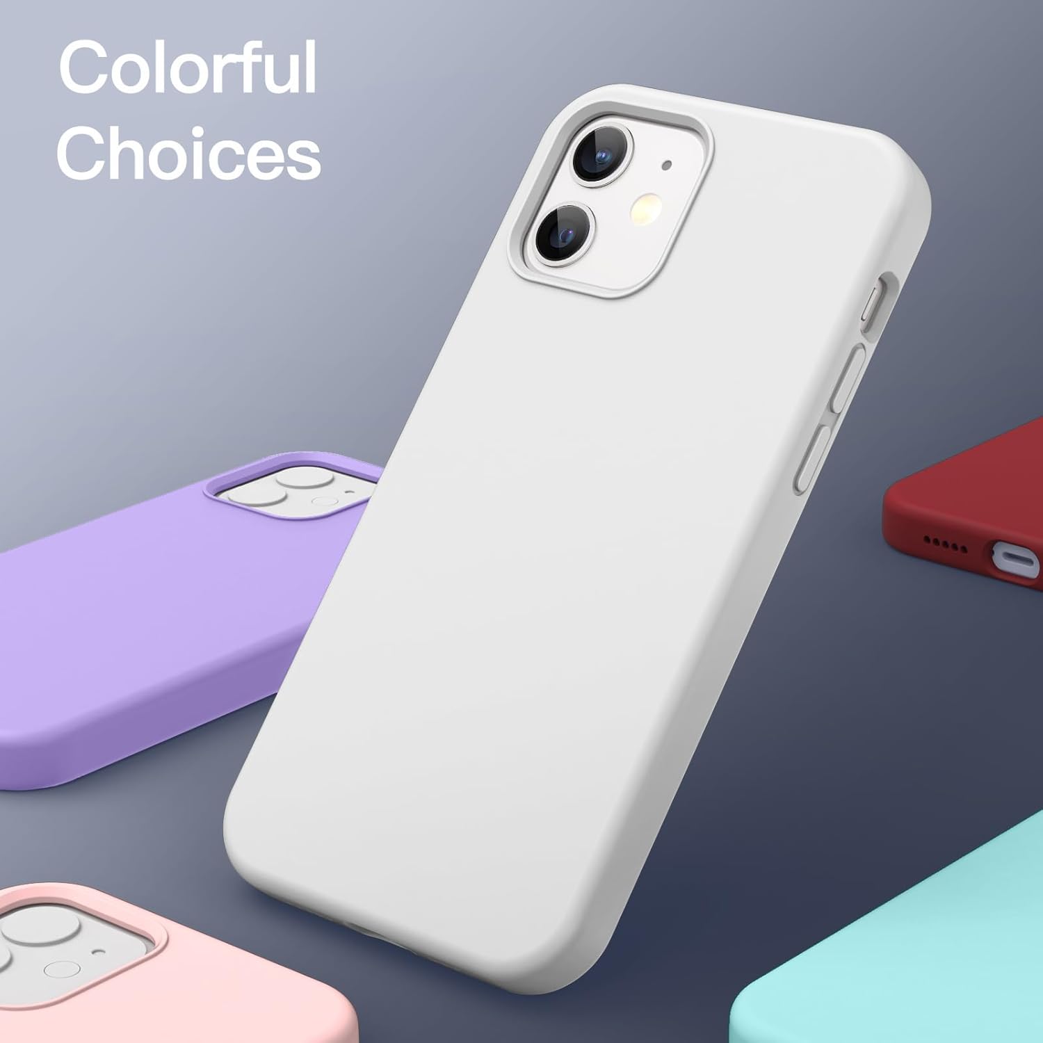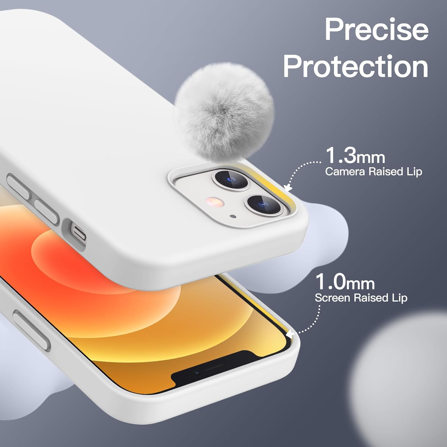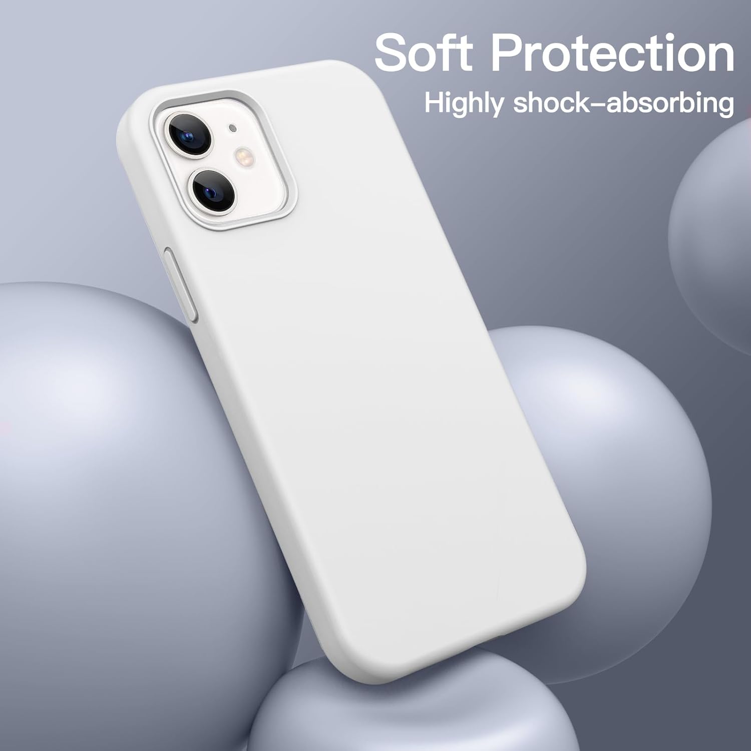 Силиконов калъф JETech за iPhone 12/12 Pro 6.1 инча, калъф за мобилен телефон с копринено меко покритие, удароустойчив защитен калъф с микрофибърна подплата (бял)