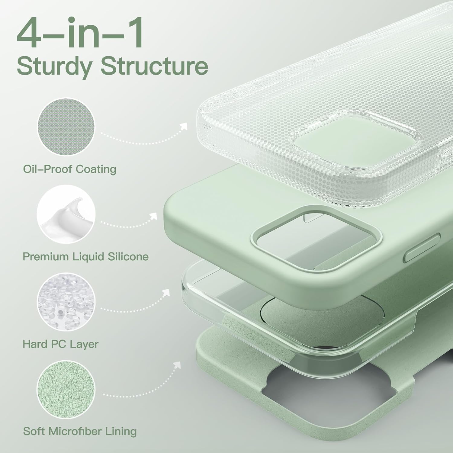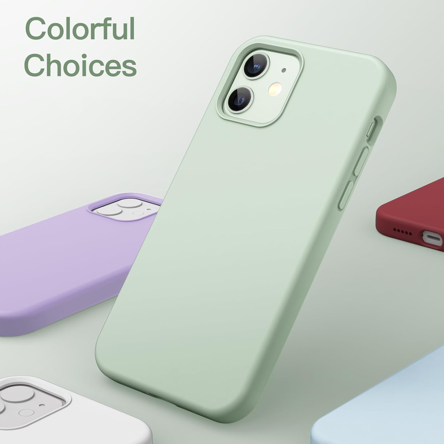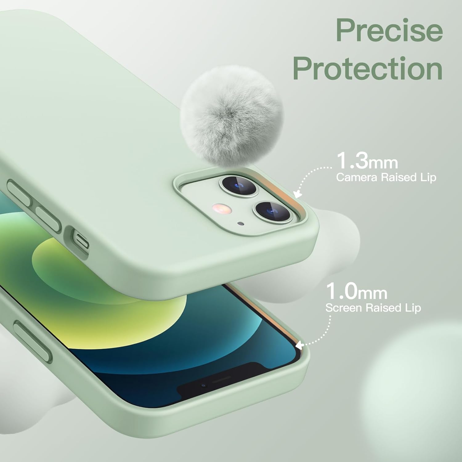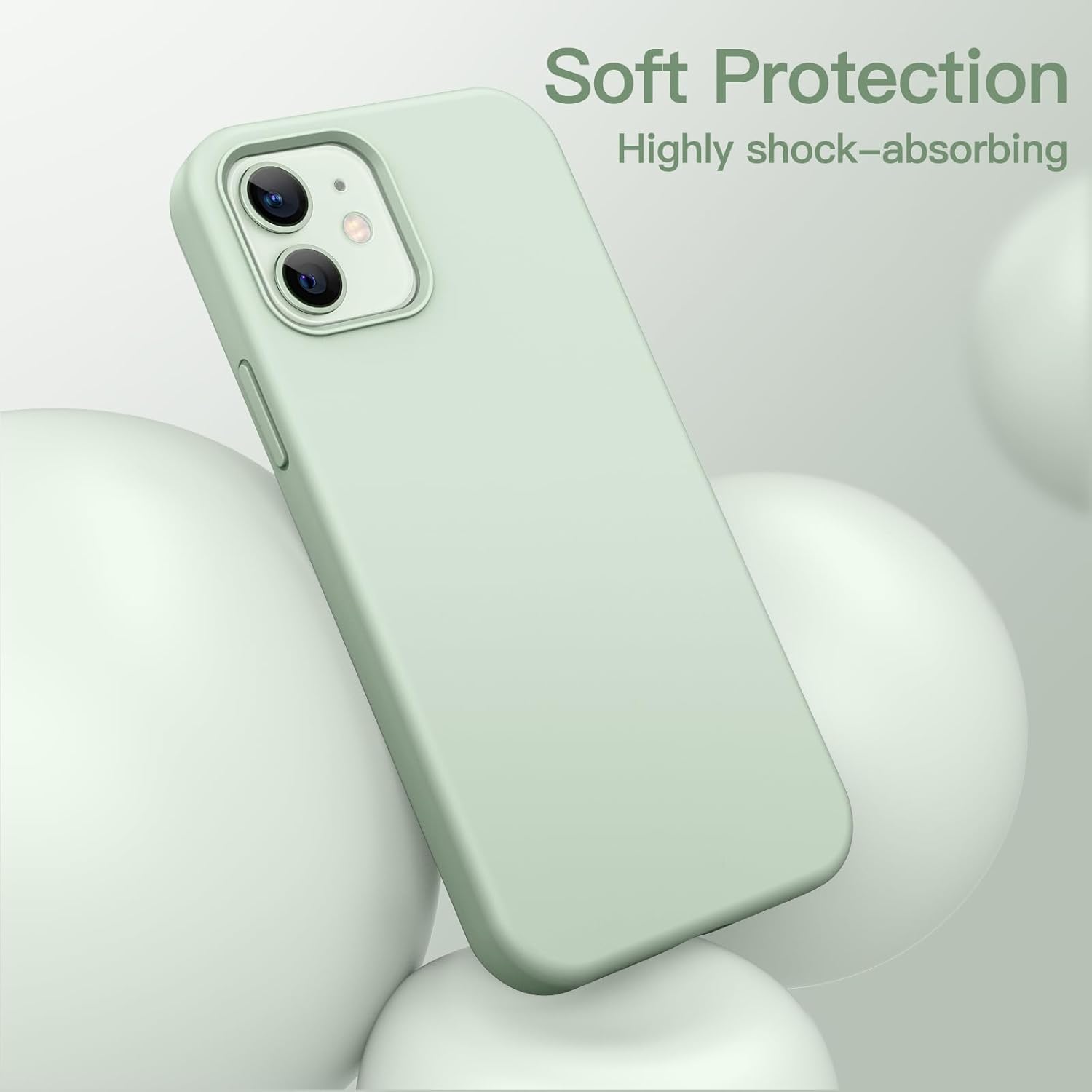 Силиконов калъф JETech за iPhone 12/12 Pro 6.1 инча, калъф за мобилен телефон с копринено меко покритие, удароустойчив защитен калъф с микрофибърна подплата (светлозелен)