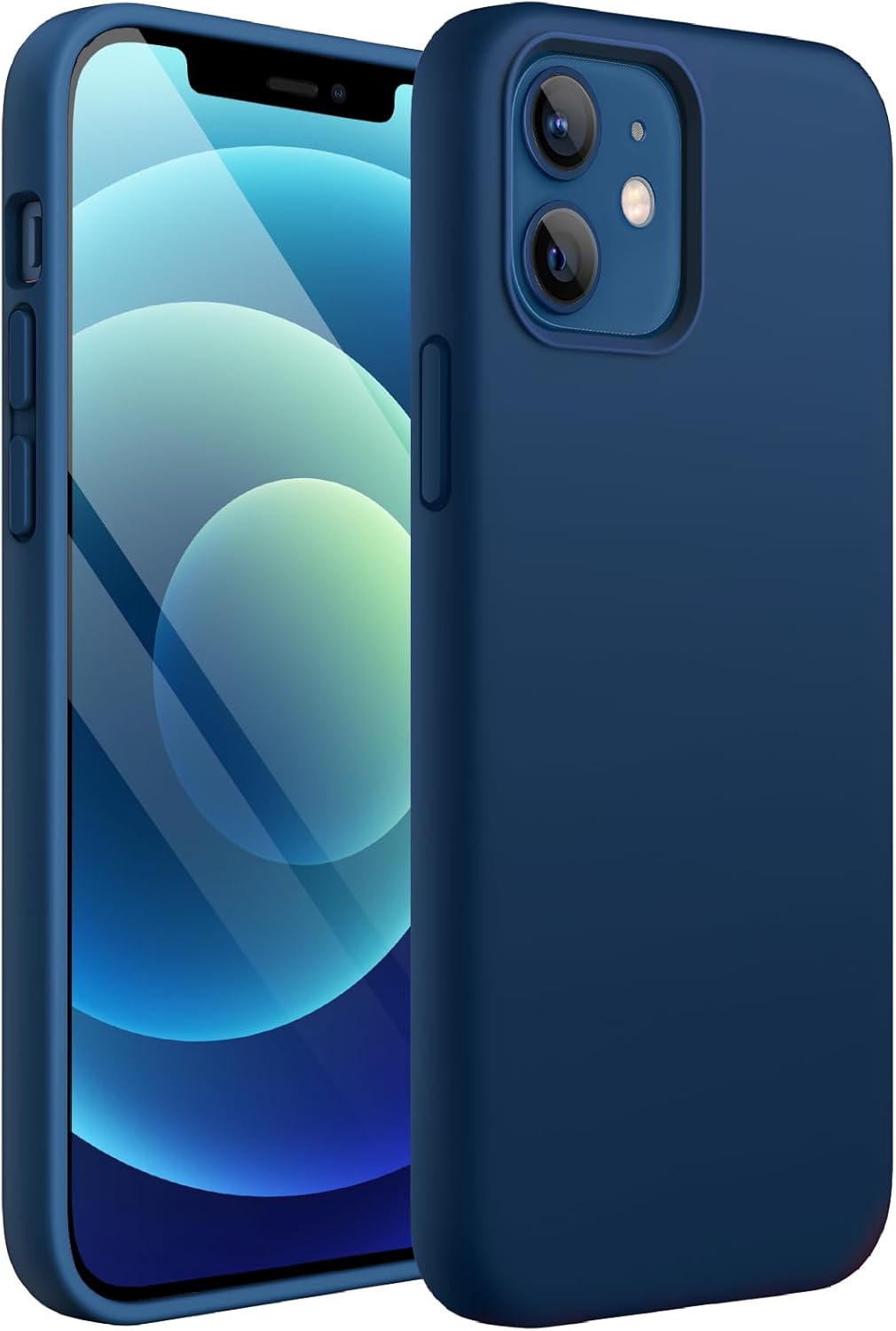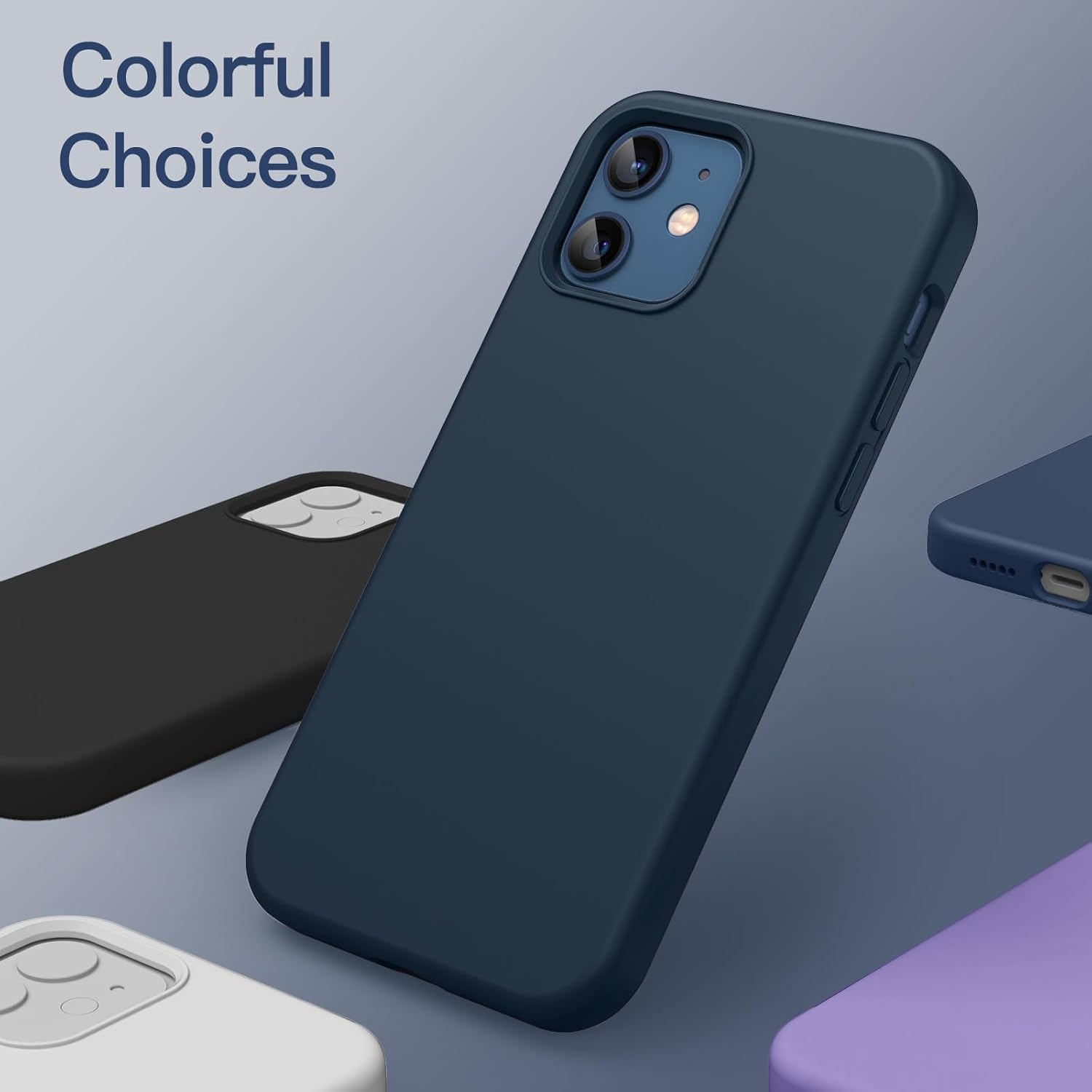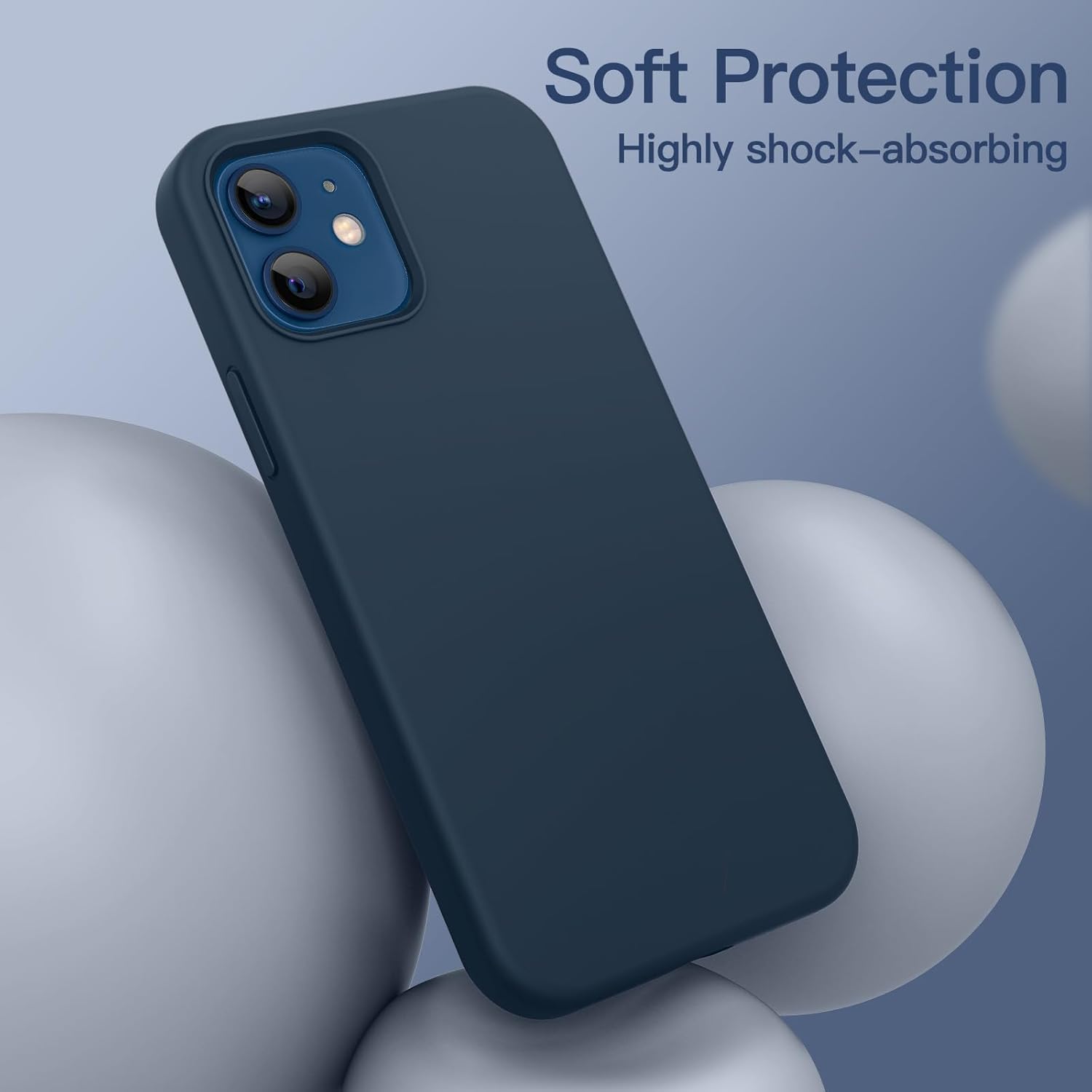 Силиконов калъф JETech за iPhone 12/12 Pro 6.1 инча, калъф за мобилен телефон с копринено меко покритие, удароустойчив защитен калъф с микрофибърна подплата (тъмносин)