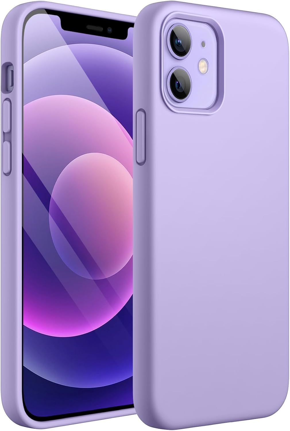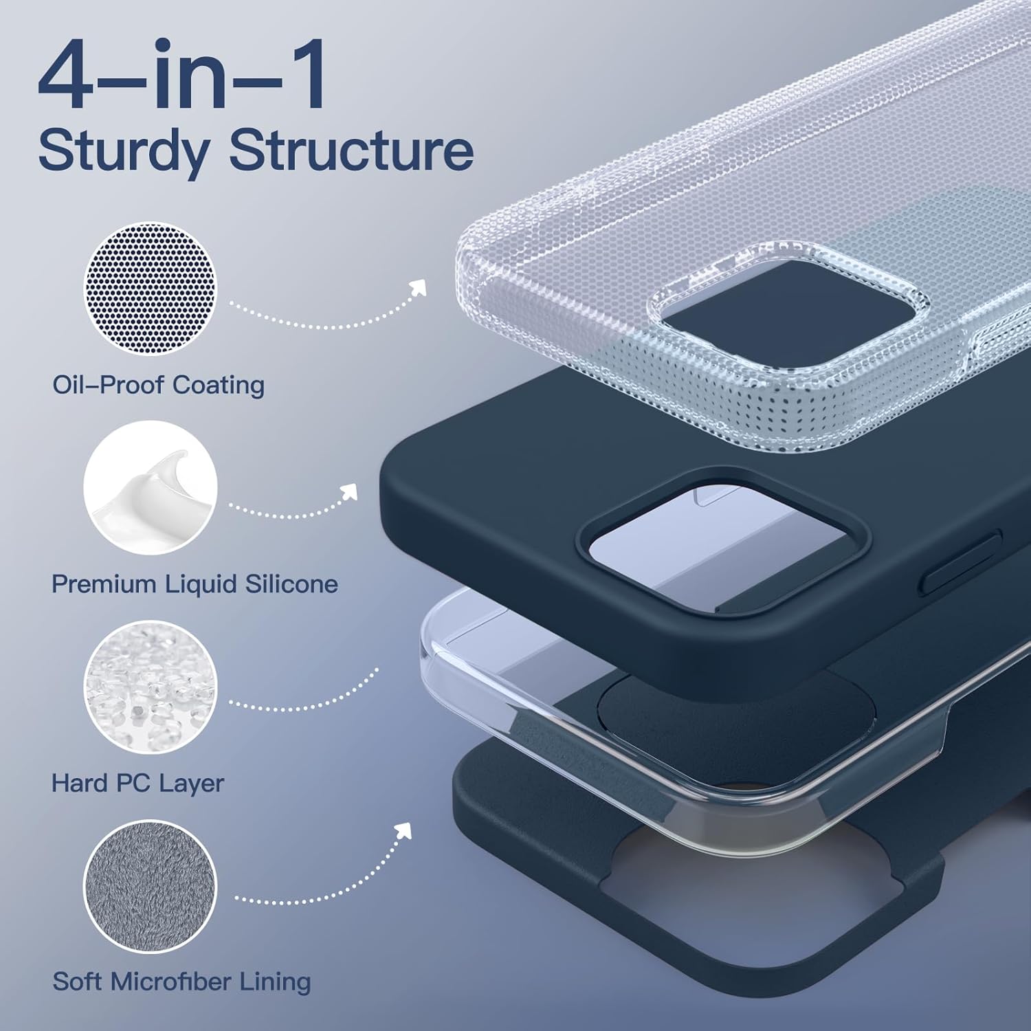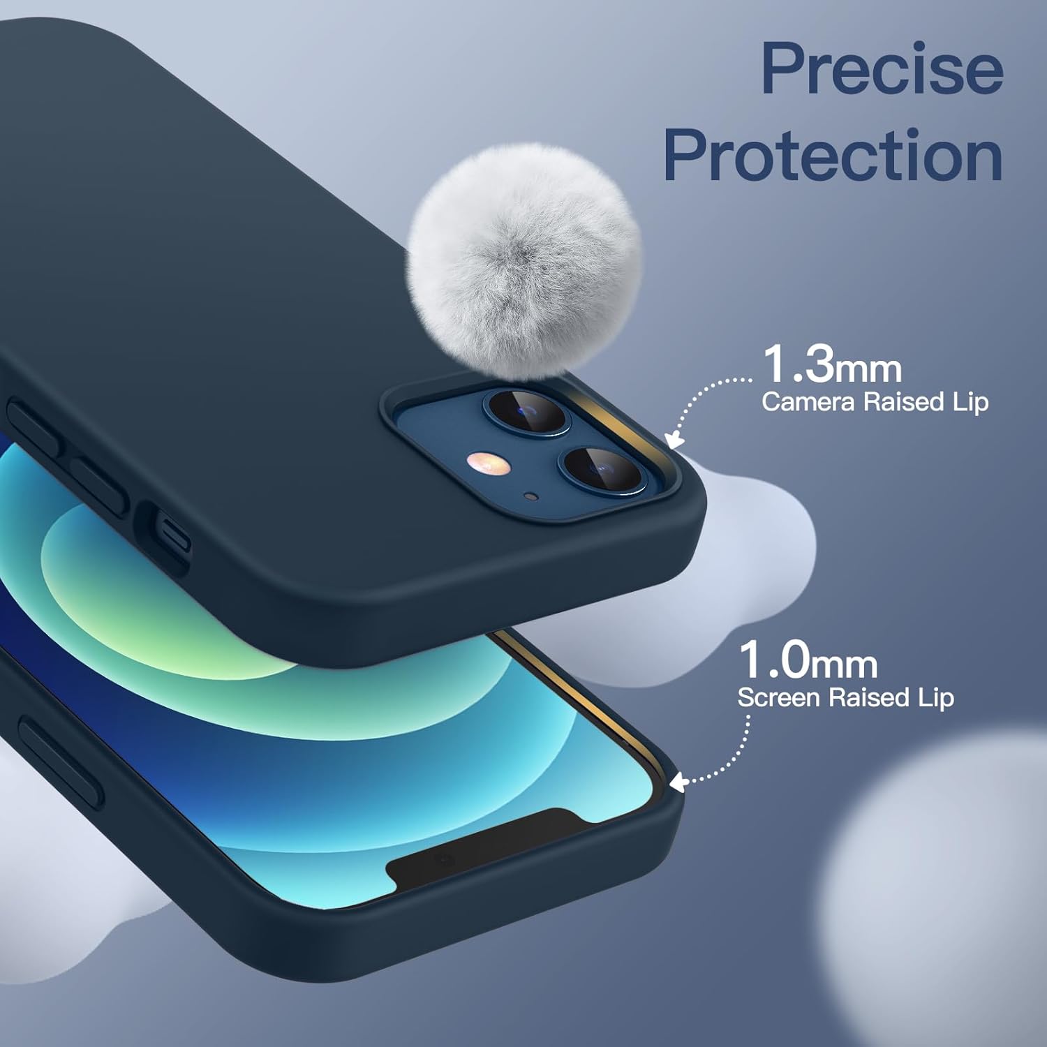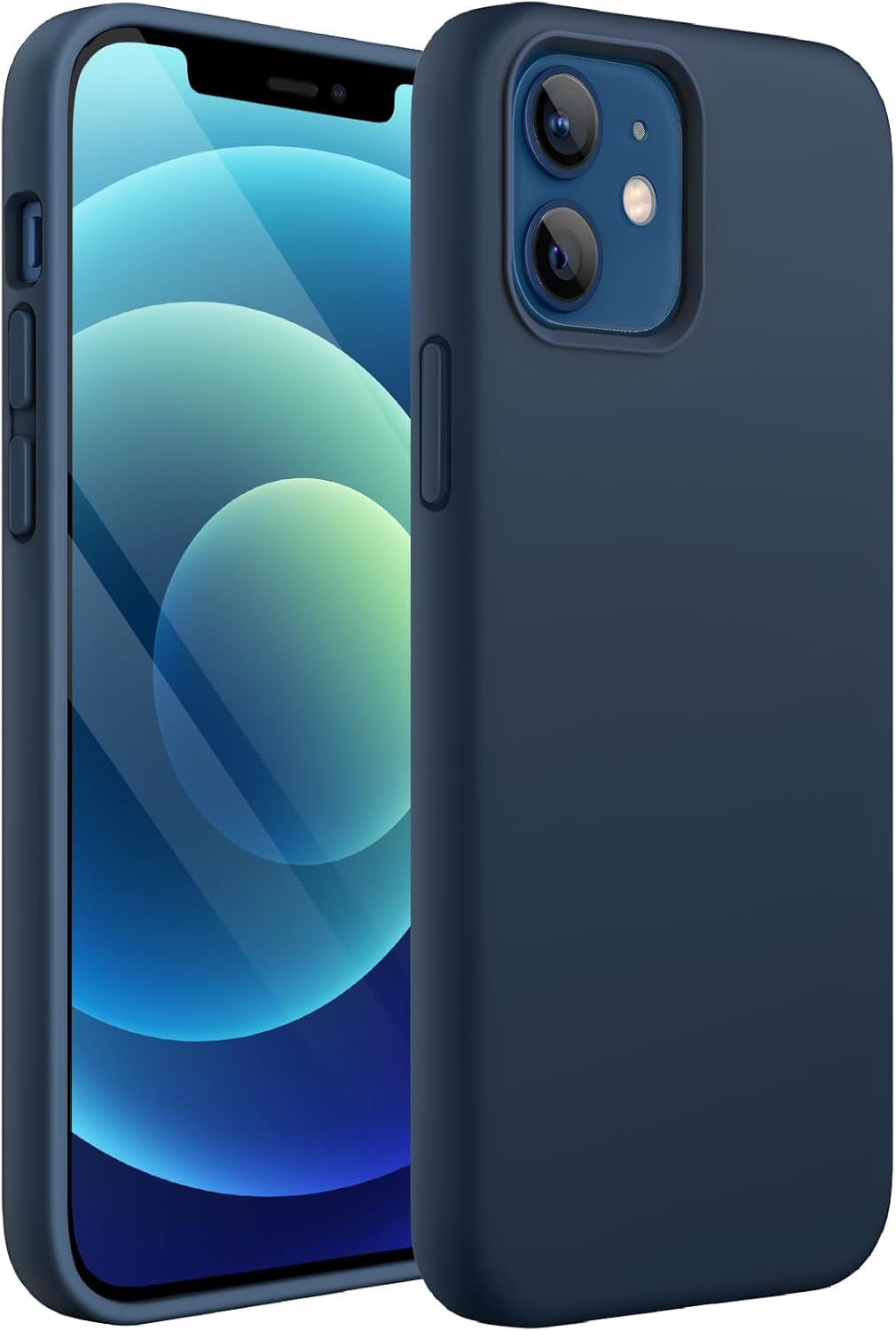Силиконов калъф JETech за iPhone 12/12 Pro 6.1 инча, калъф за мобилен телефон с копринено меко покритие, удароустойчив защитен калъф с микрофибърна подплата (тъмносин)