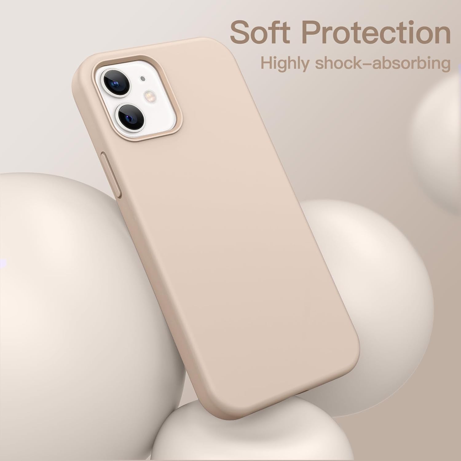 Силиконов калъф JETech за iPhone 12/12 Pro 6.1 инча, калъф за мобилен телефон с копринено меко покритие, удароустойчив защитен калъф с микрофибърна подплата (златист)