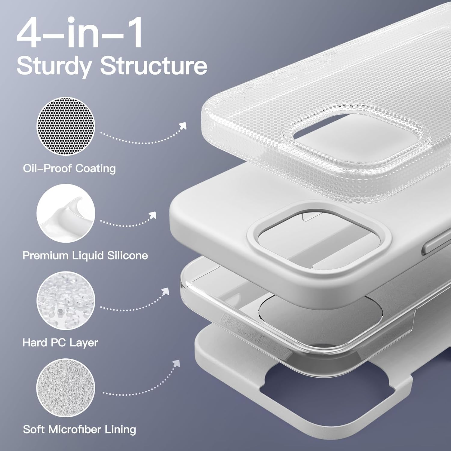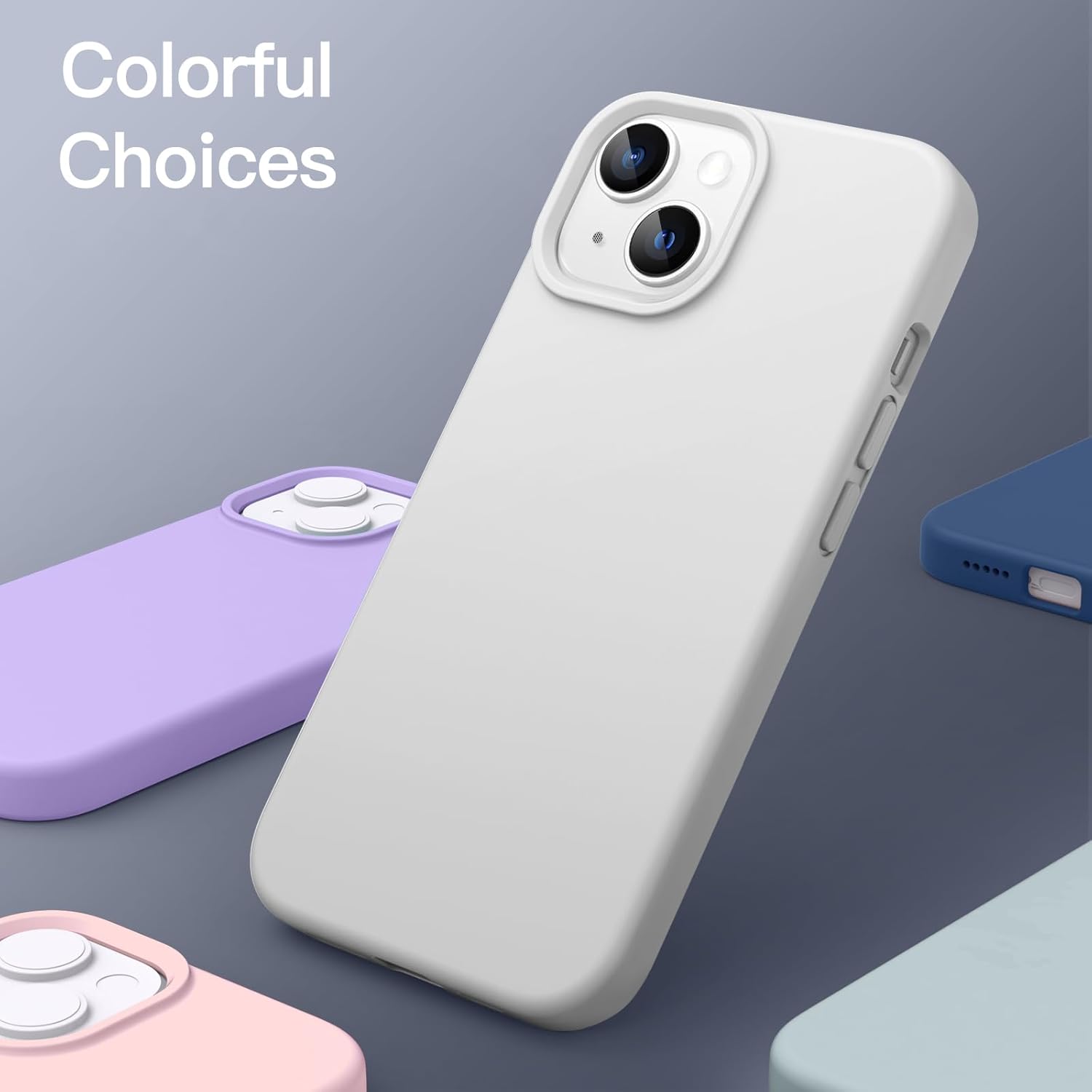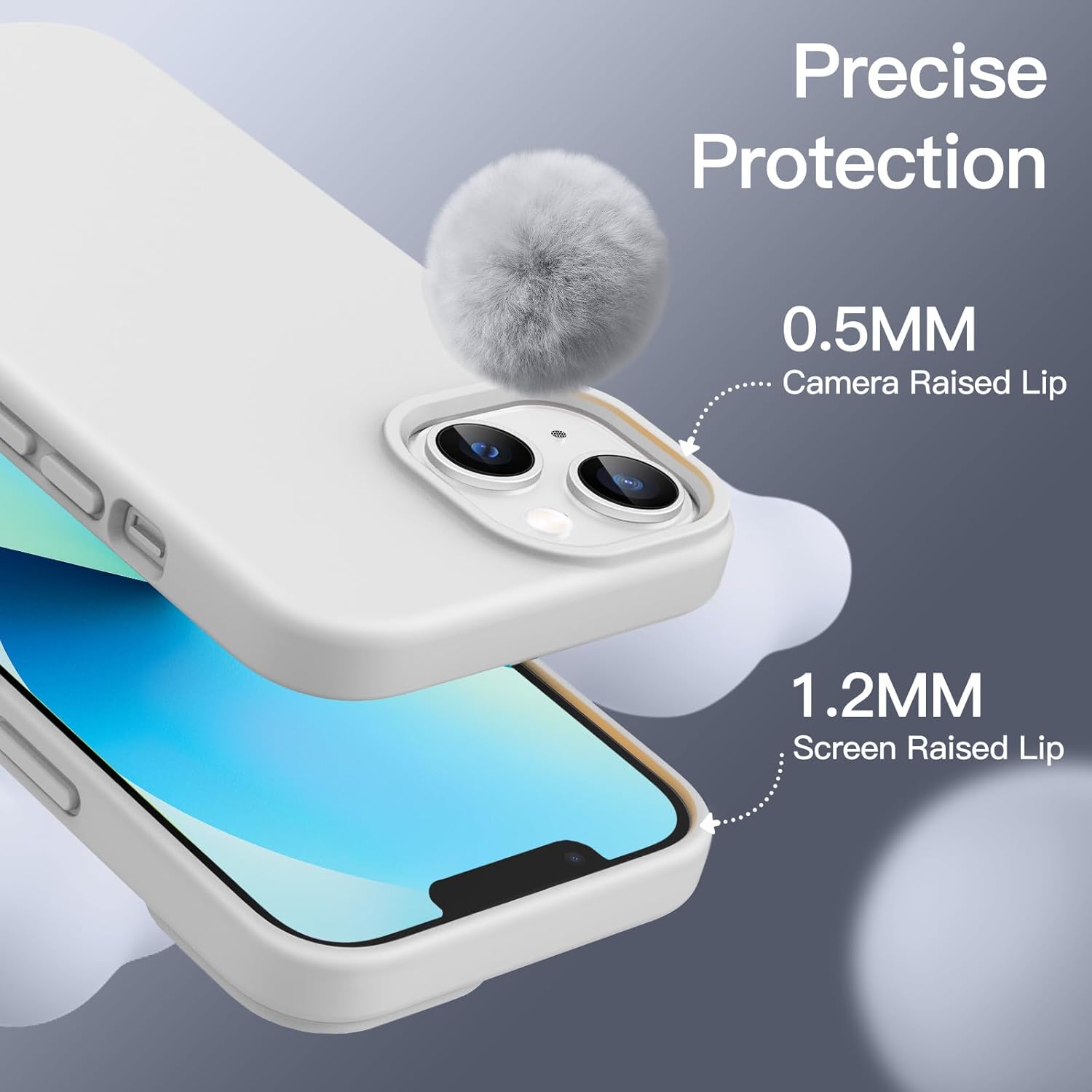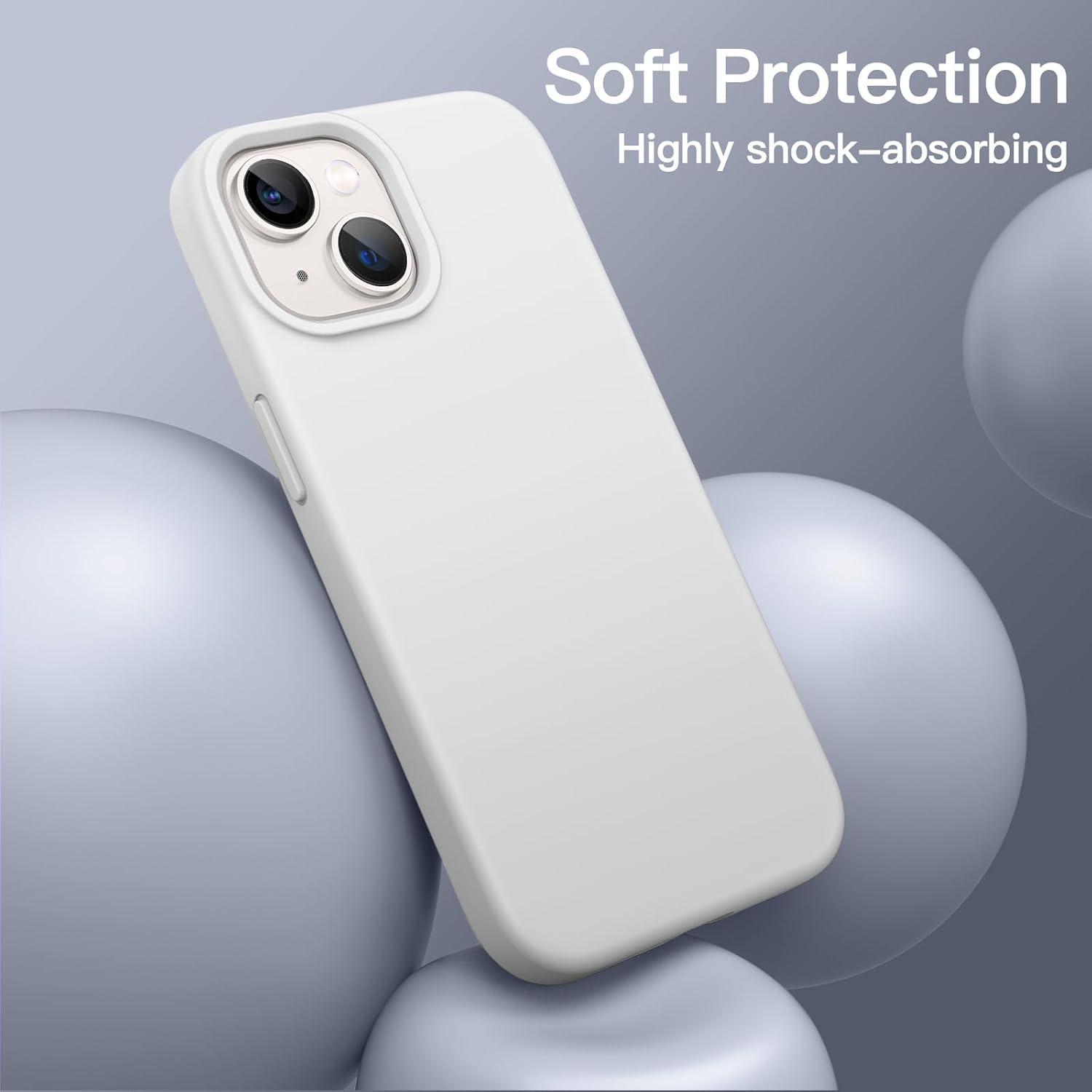 Силиконов калъф JETech за iPhone 13 (6.1 инча), всестранна защита, калъф за мобилен телефон с копринено меко усещане, удароустойчив калъф с микрофибърна подплата, бял (Polar Star)