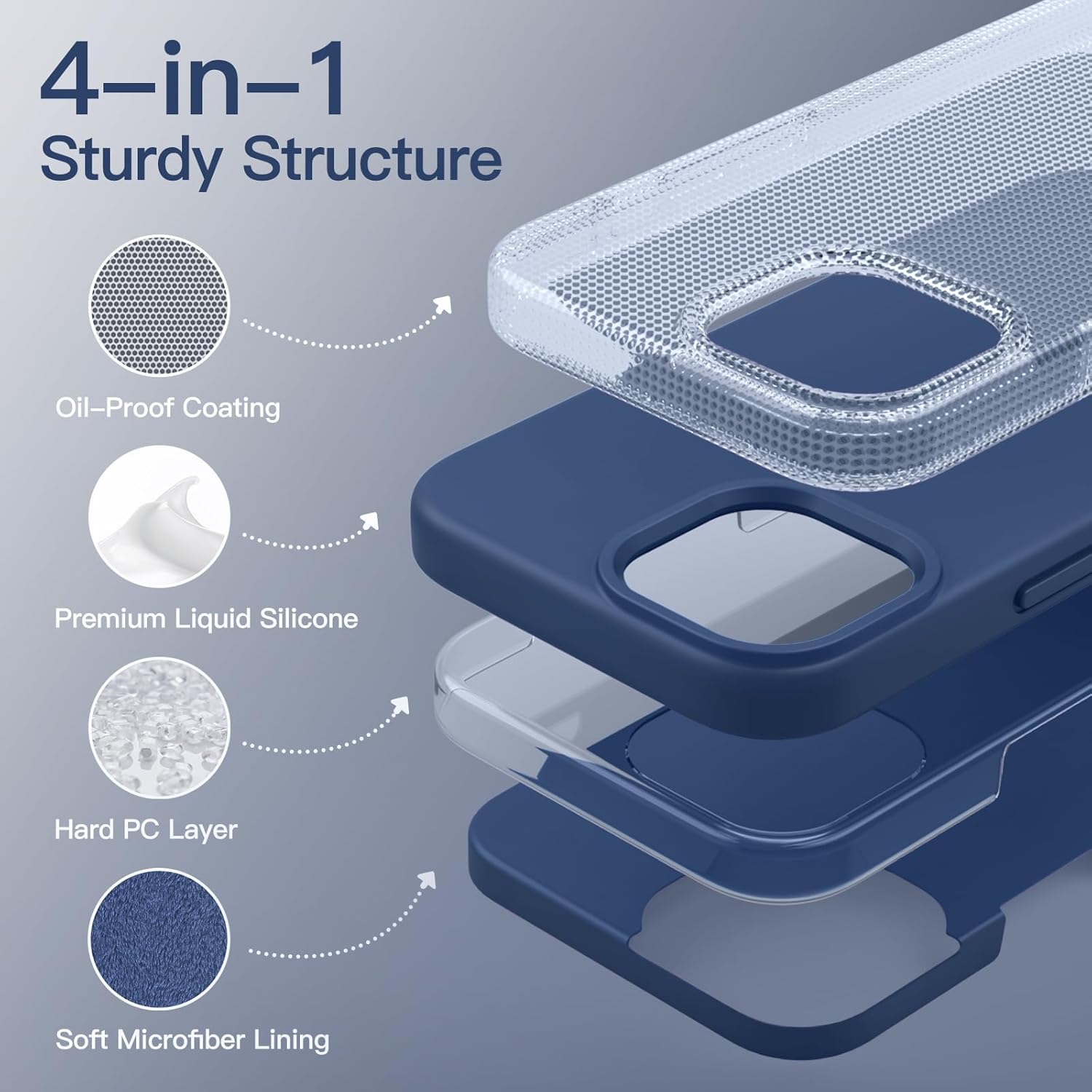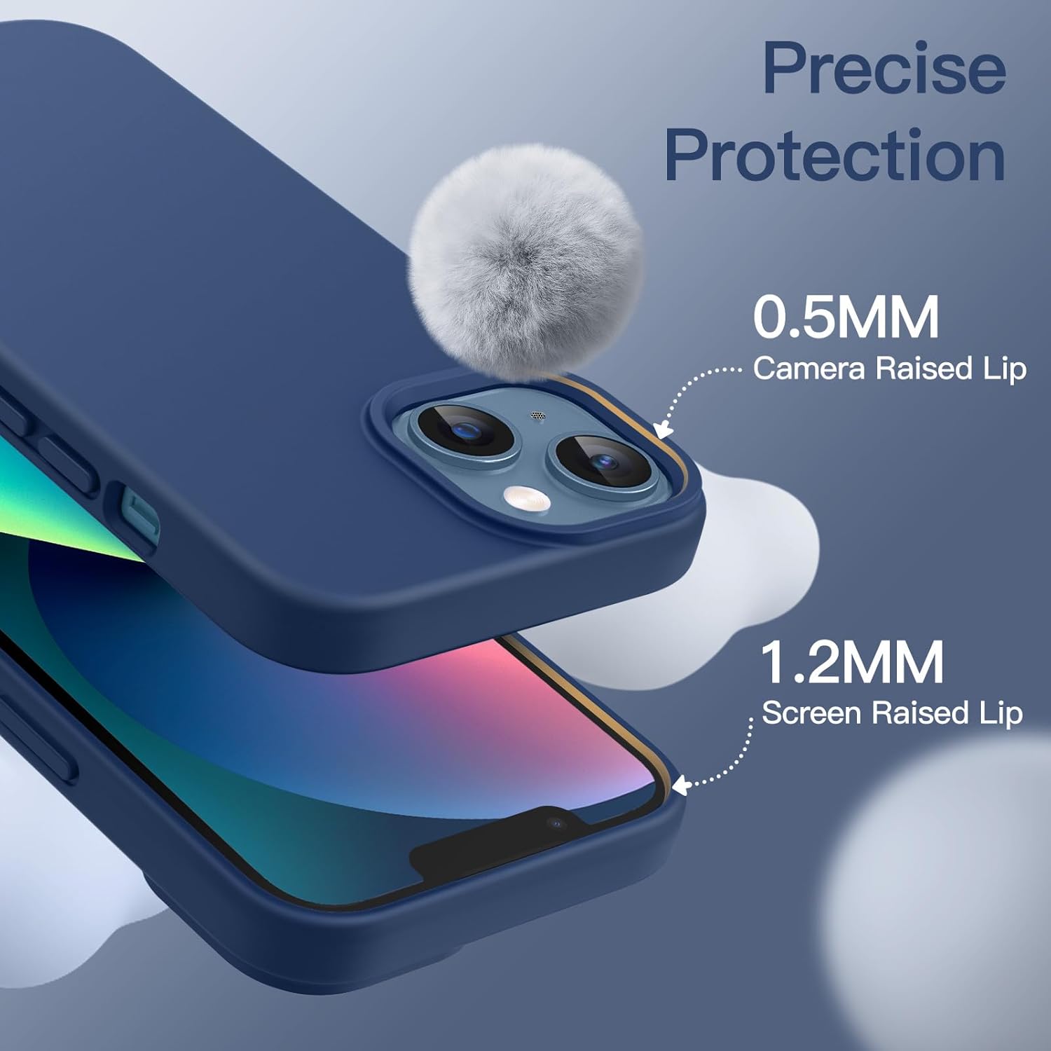 Силиконов калъф JETech за iPhone 13 (6.1 инча), всестранна защита, калъф за мобилен телефон с копринено меко усещане, удароустойчив калъф с микрофибърна подплата (кобалтово синьо)