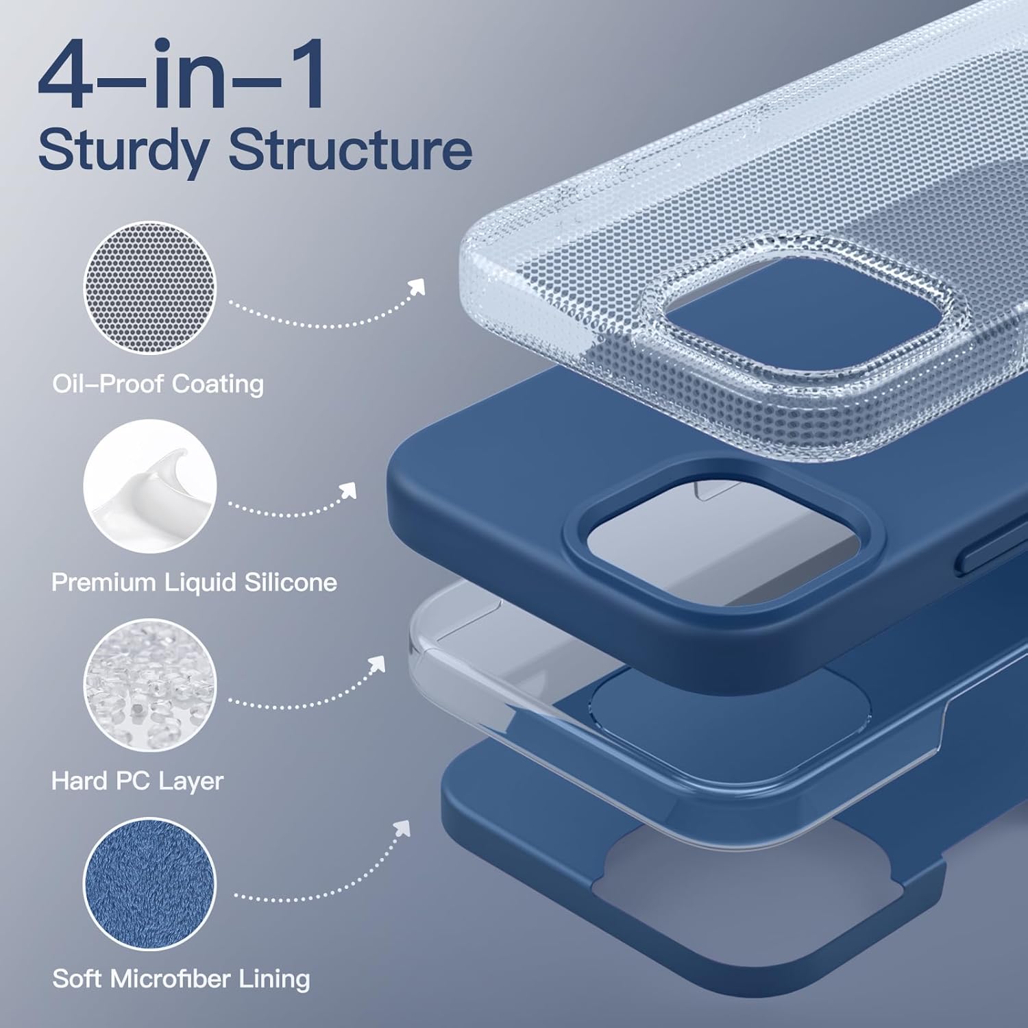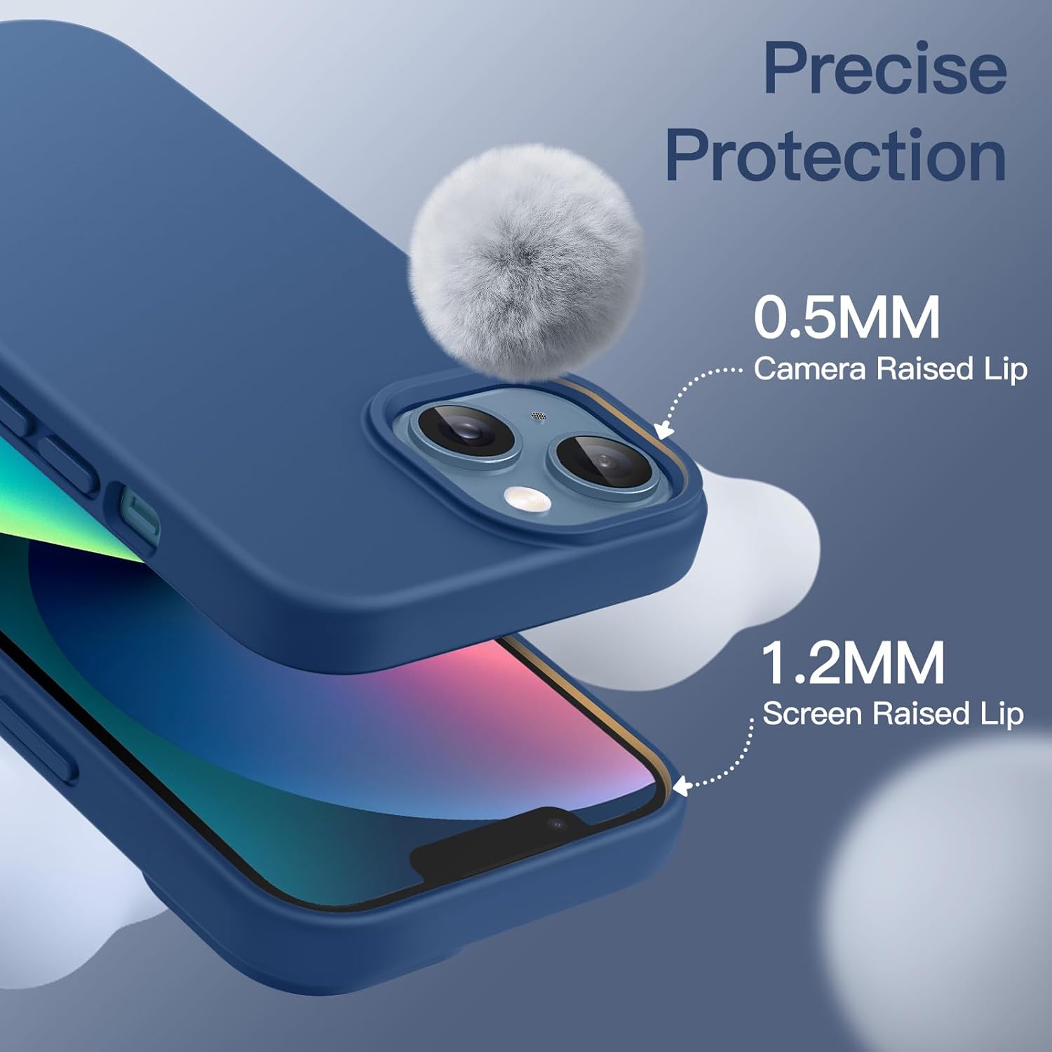 Силиконов калъф JETech за iPhone 13 (6.1 инча), всестранна защита, калъф за мобилен телефон с копринено меко усещане, удароустойчив калъф с микрофибърна подплата (ледено син)