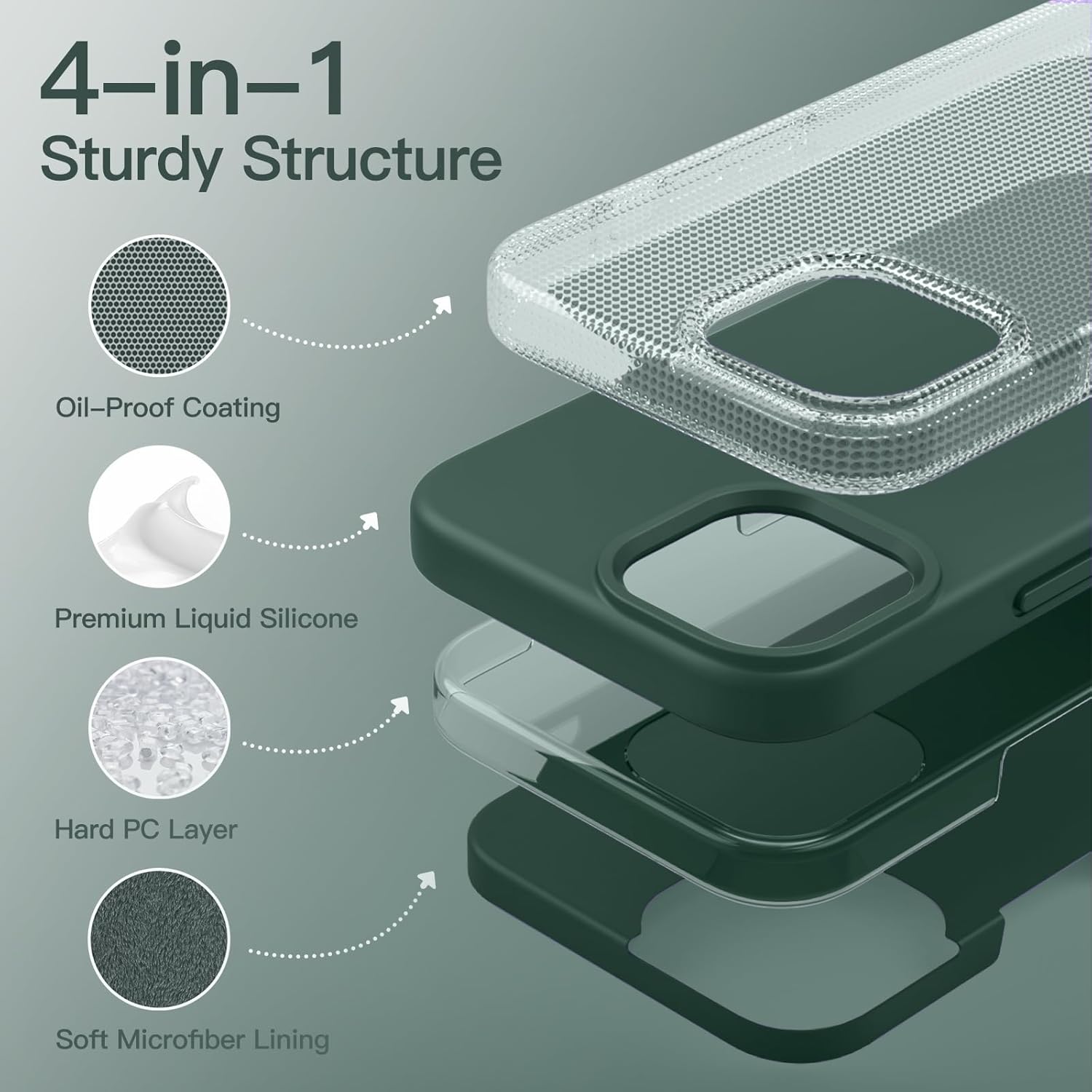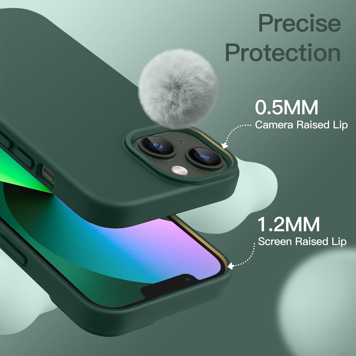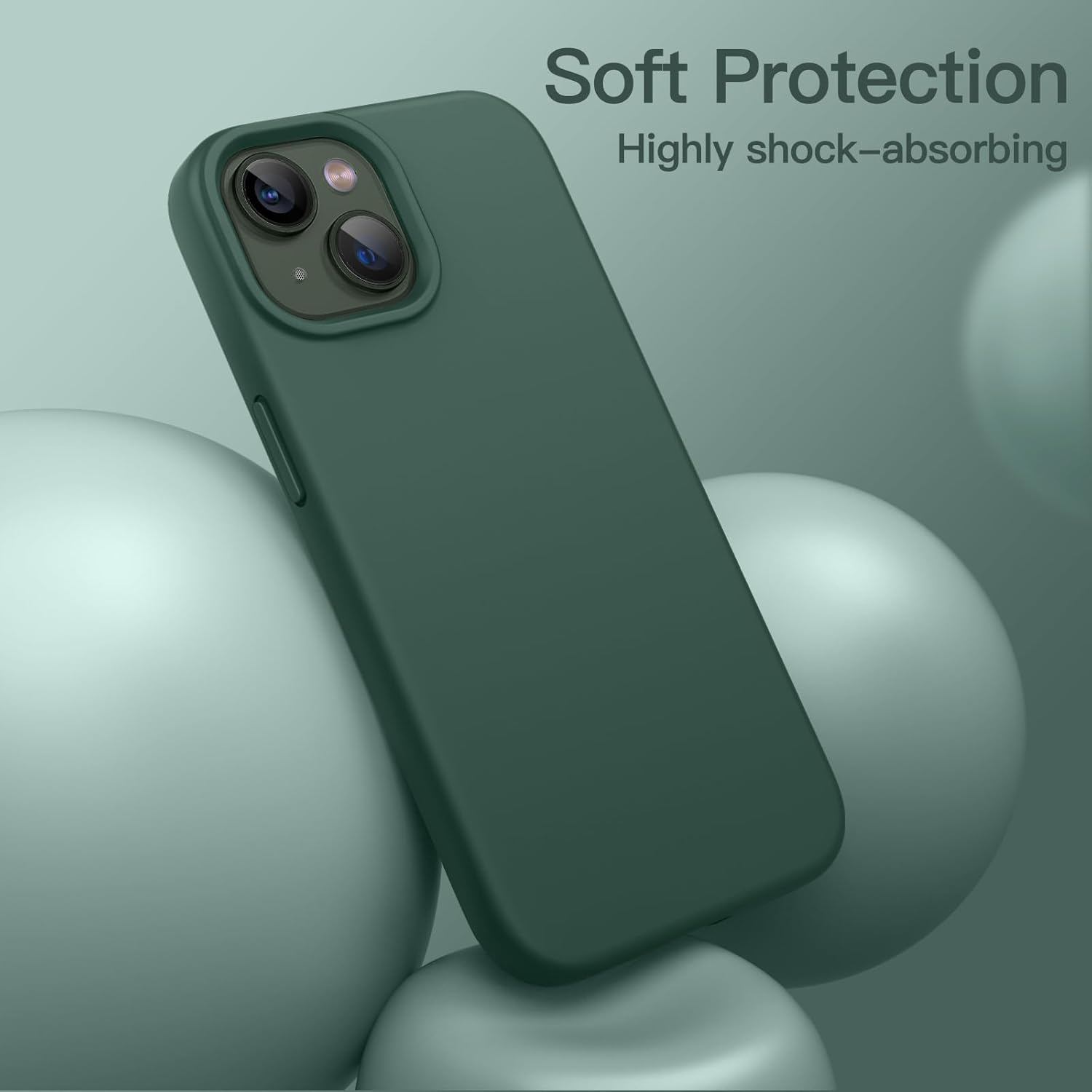 Силиконов калъф JETech за iPhone 13 (6.1 инча), всестранна защита, калъф за мобилен телефон с копринено меко усещане, удароустойчив калъф с микрофибърна подплата (нощно зелено)