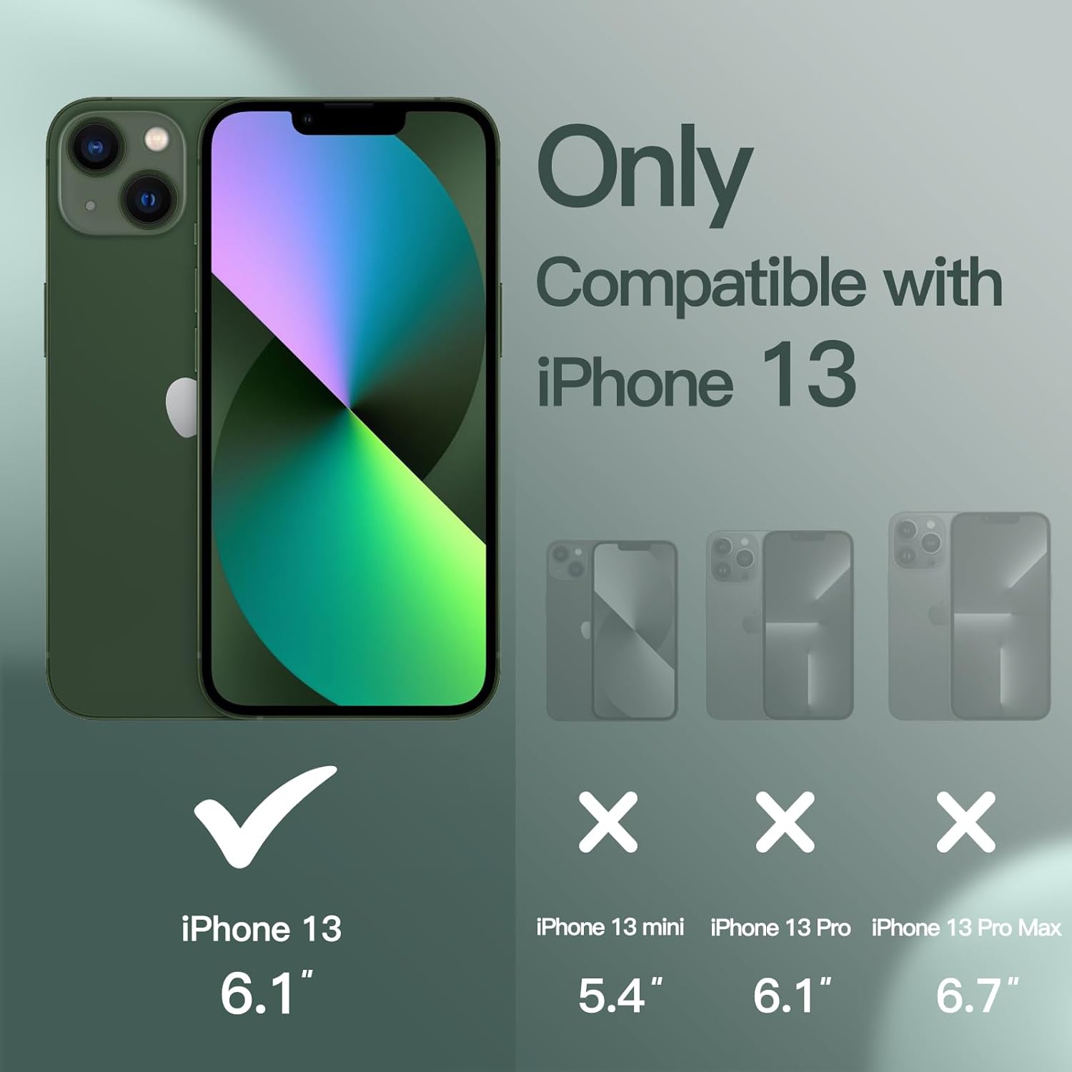 • Съвместимост: Специално проектиран за iPhone 13 (6.1 инча). Осигурява цялостна защита за вашето устройство. Поддържа безжично зареждане.