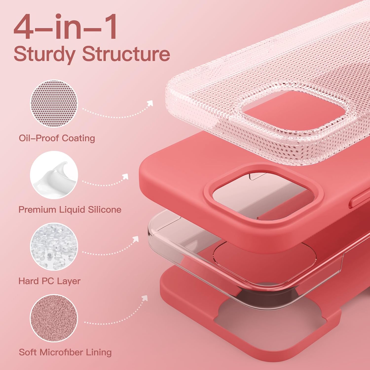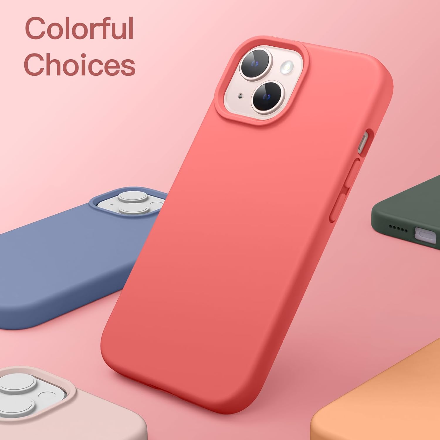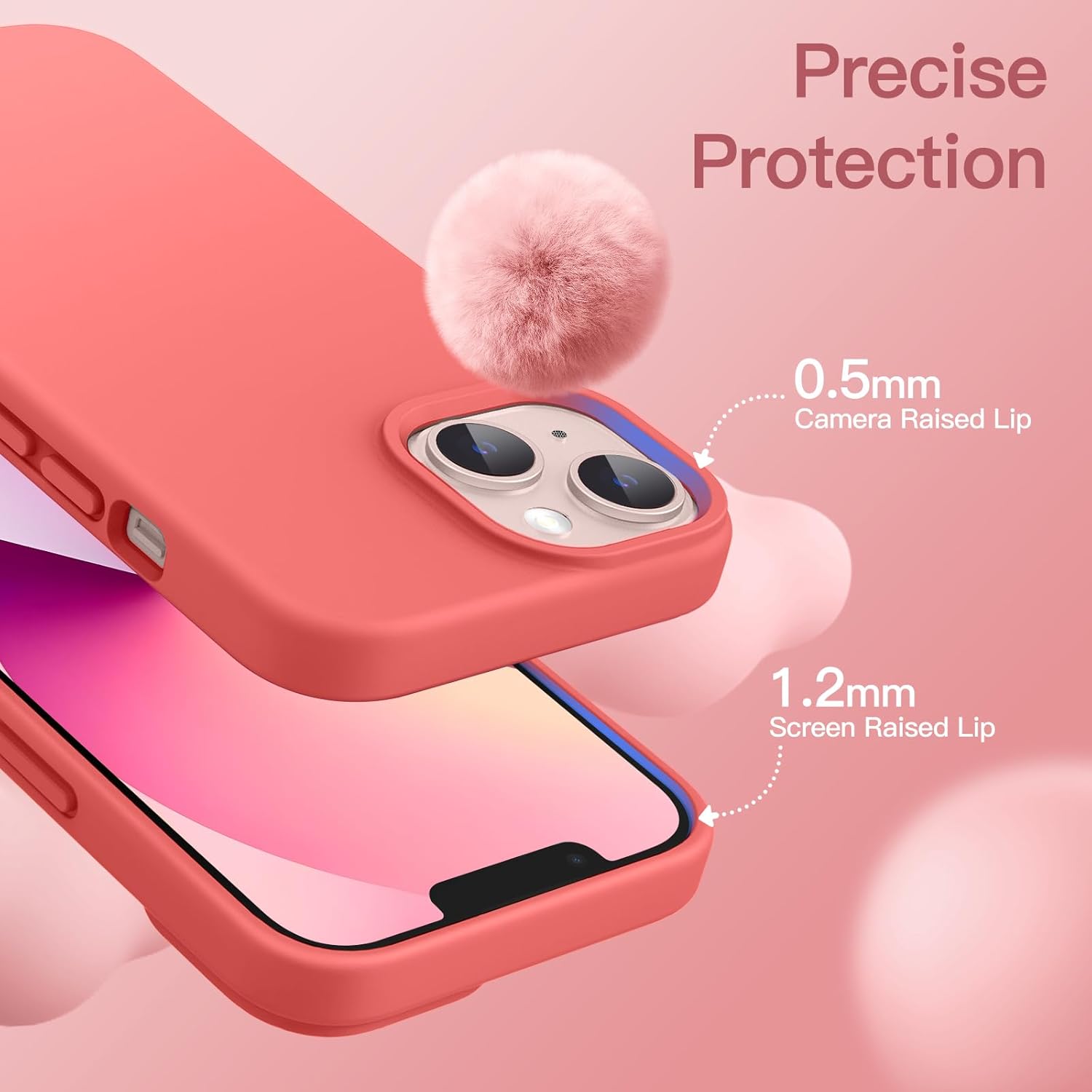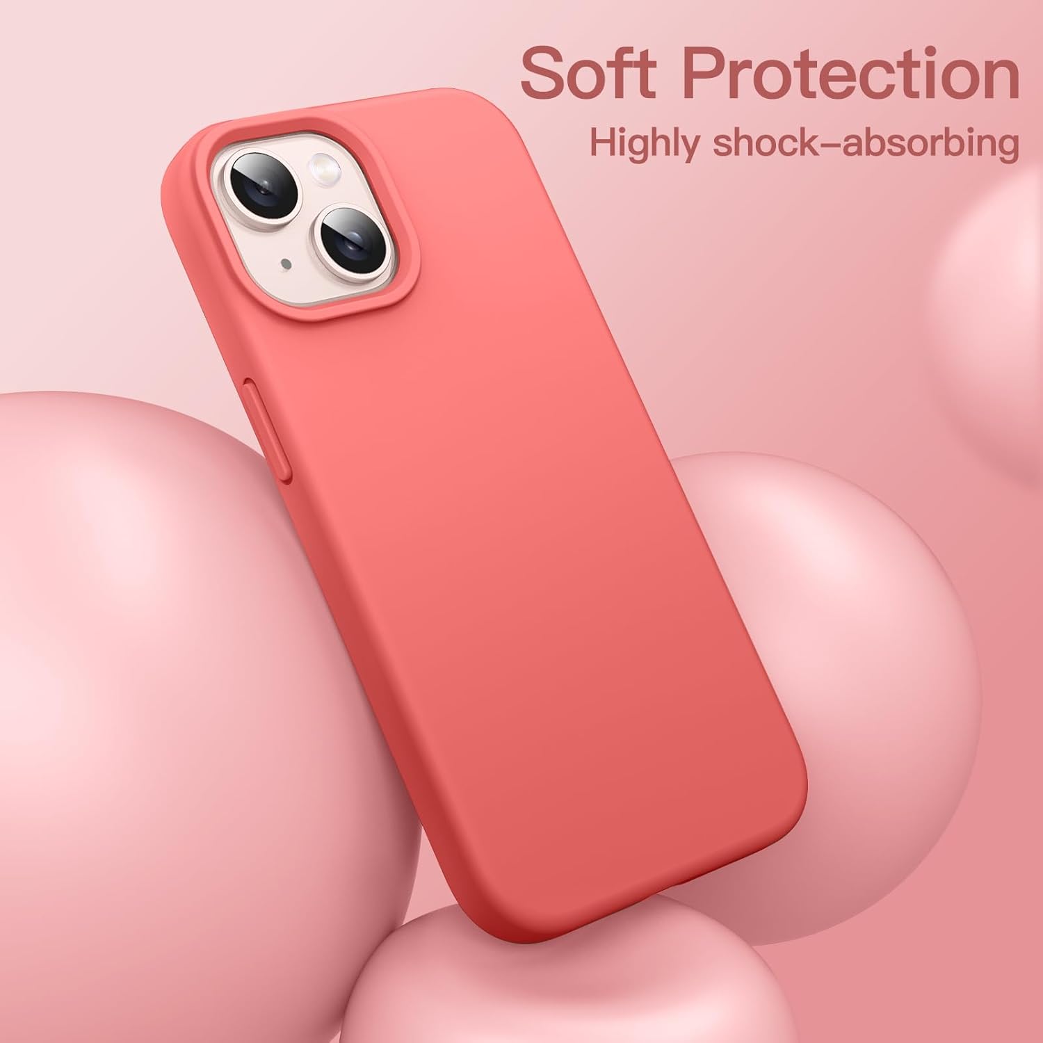 Силиконов калъф JETech за iPhone 13 (6.1 инча), всестранна защита, калъф за мобилен телефон с копринено меко усещане, удароустойчив калъф с микрофибърна подплата (розов помело)