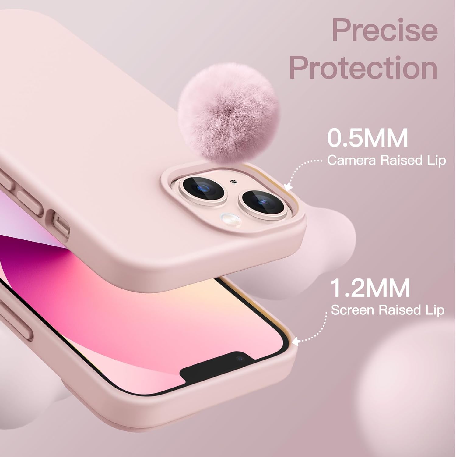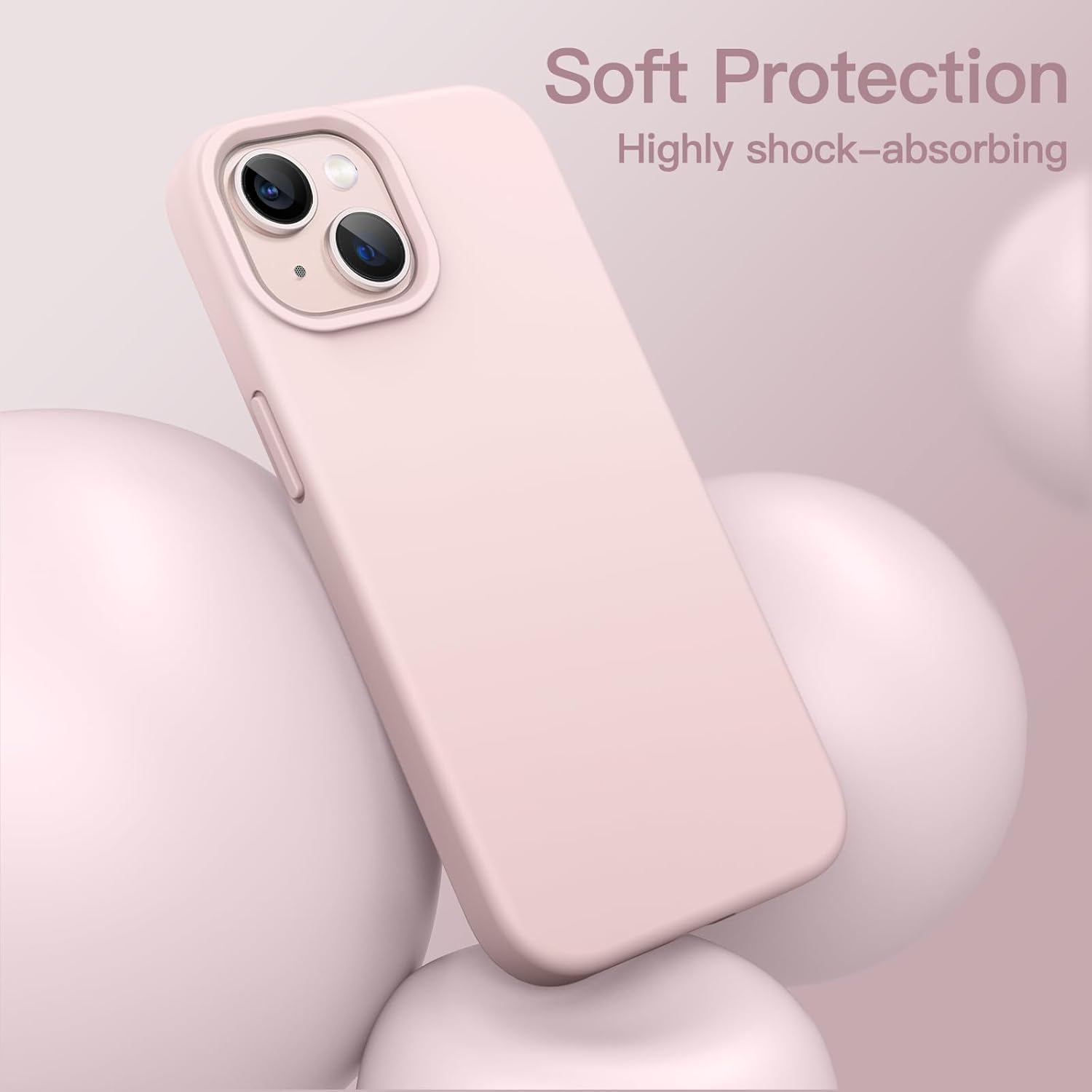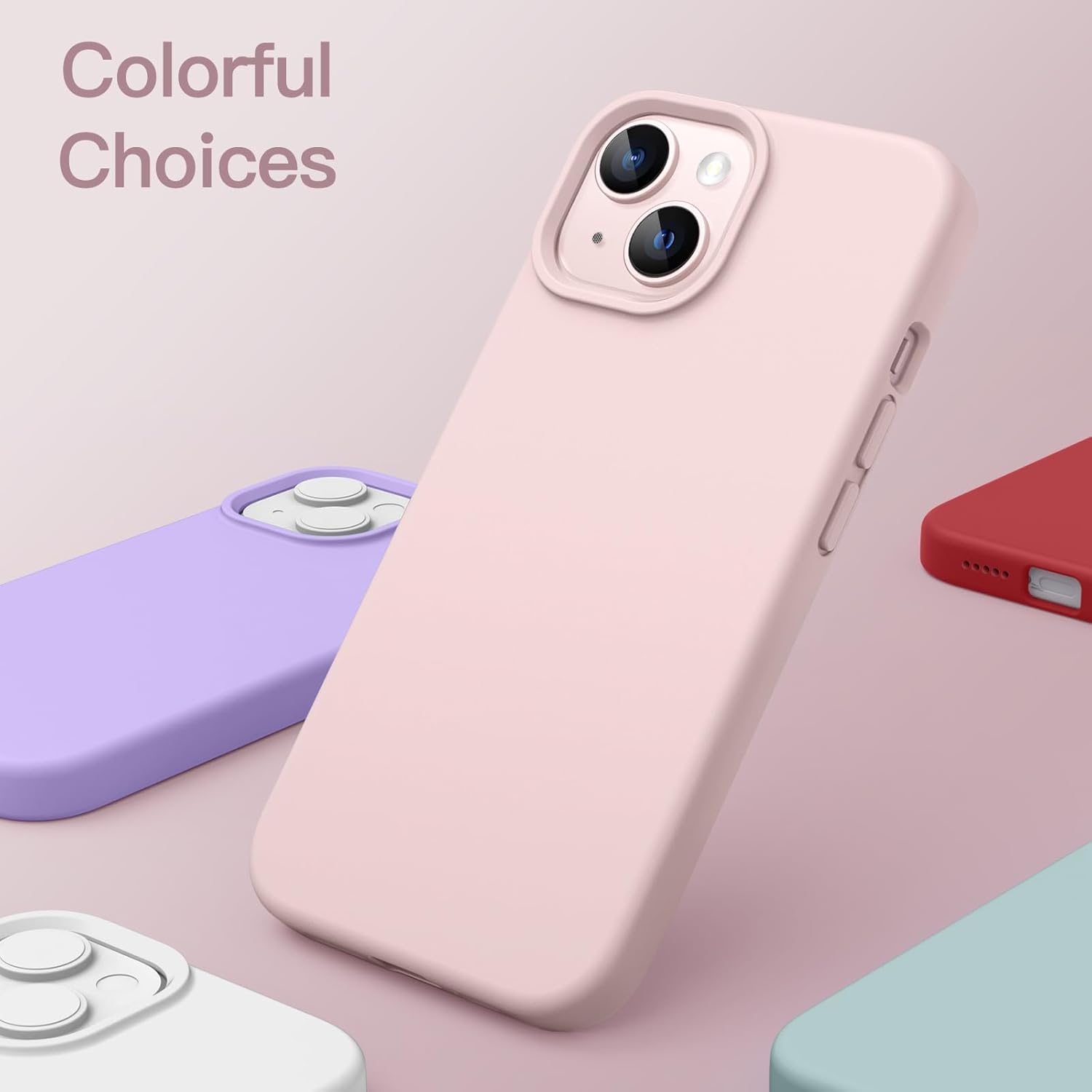 Силиконов калъф JETech за iPhone 13 (6.1 инча), всестранна защита, калъф за мобилен телефон с копринено меко усещане, удароустойчив калъф с микрофибърна подплата (розов)