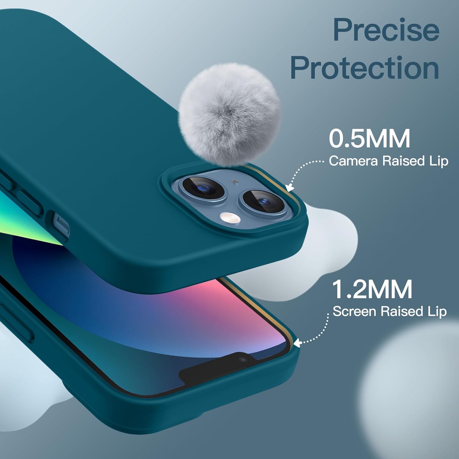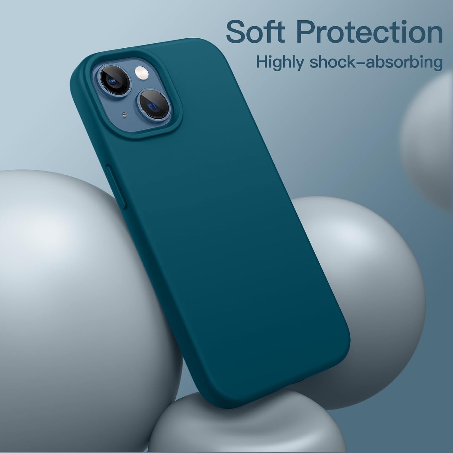 Силиконов калъф JETech за iPhone 13 (6.1 инча), всестранна защита, калъф за мобилен телефон с копринено меко усещане, удароустойчив калъф с микрофибърна подплата (синьозелен)