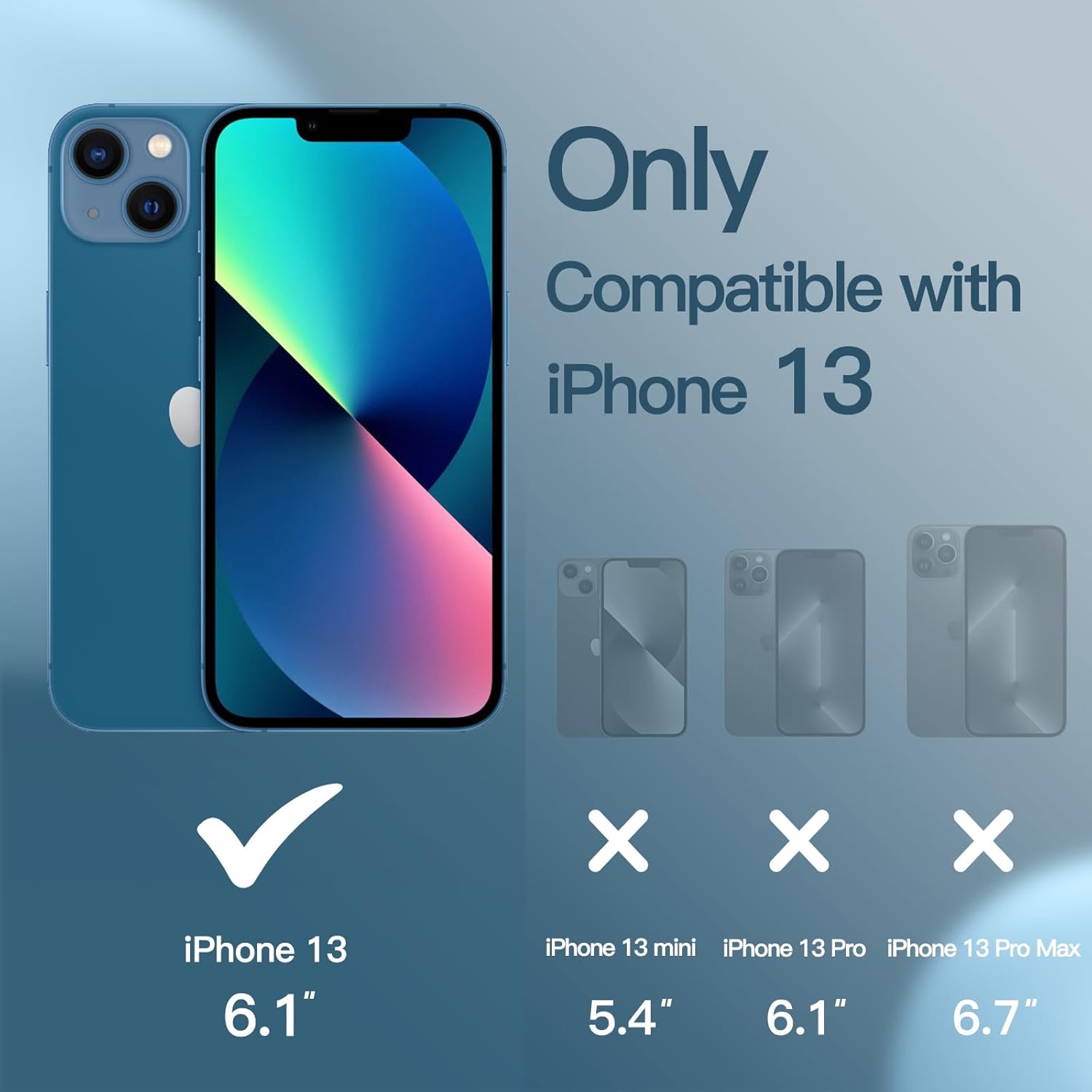 • Съвместимост: Специално проектиран за iPhone 13 (6.1 инча). Осигурява цялостна защита за вашето устройство. Поддържа безжично зареждане.