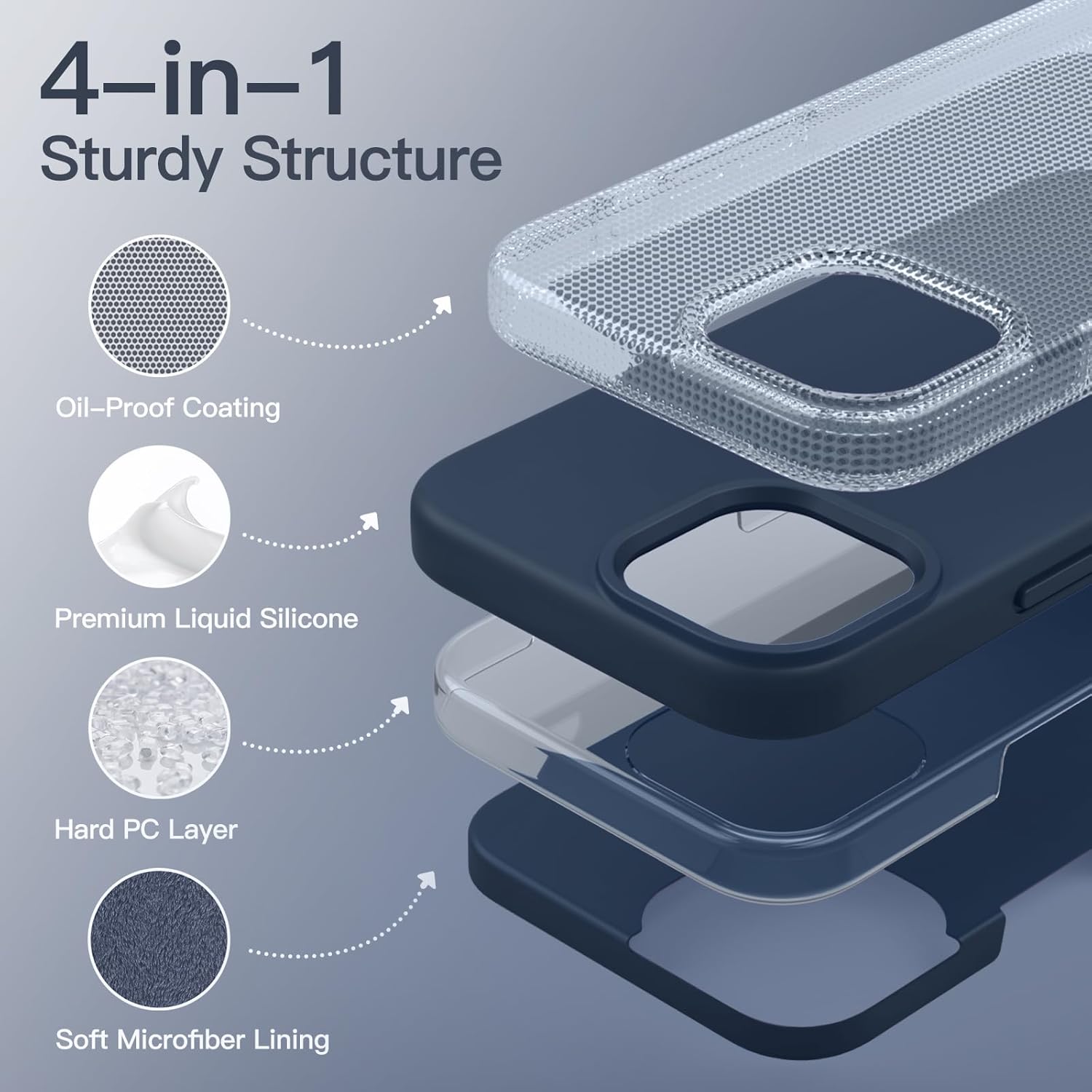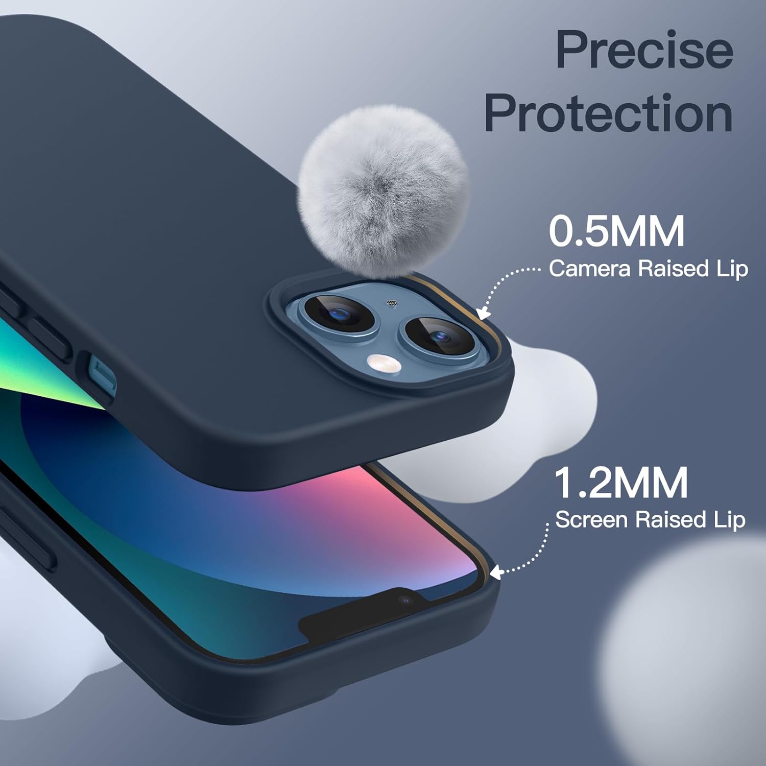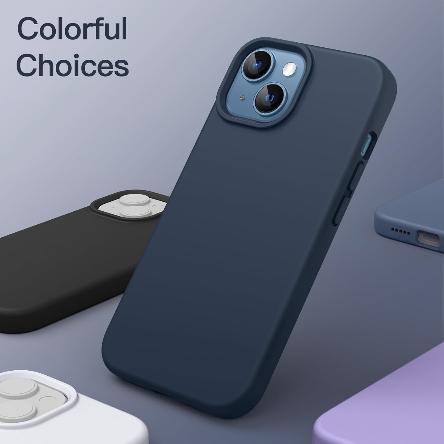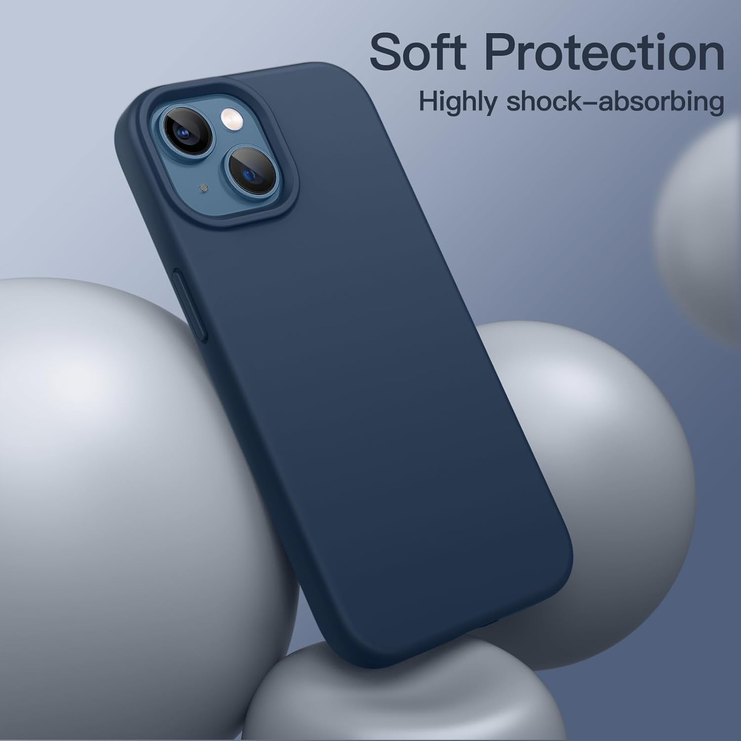 Силиконов калъф JETech за iPhone 13 (6.1 инча), всестранна защита, калъф за мобилен телефон с копринено меко усещане, удароустойчив калъф с микрофибърна подплата (тъмносин)